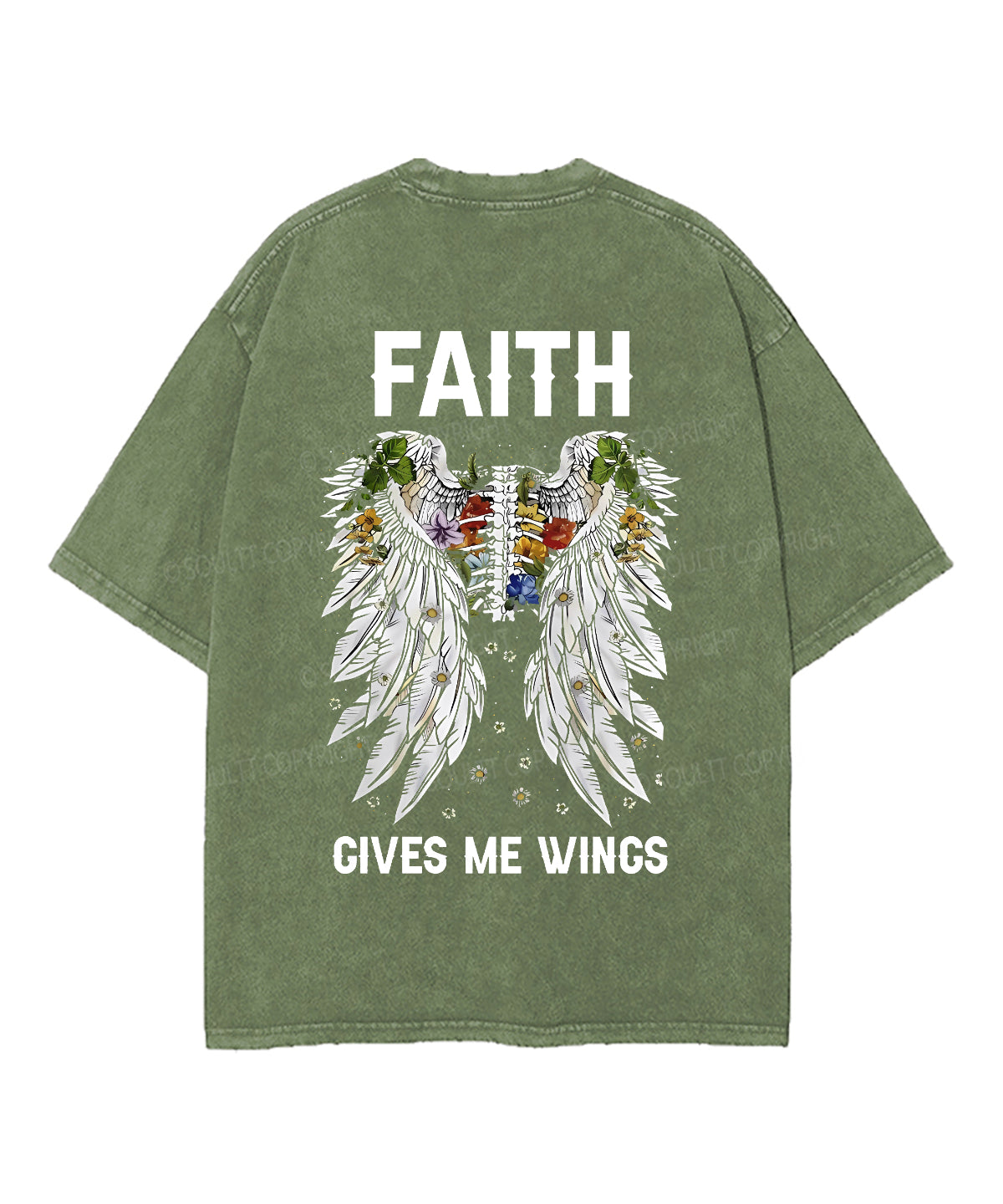 Faith Gives Me Wings Double Sided Unisex Washed Christian T-shirt