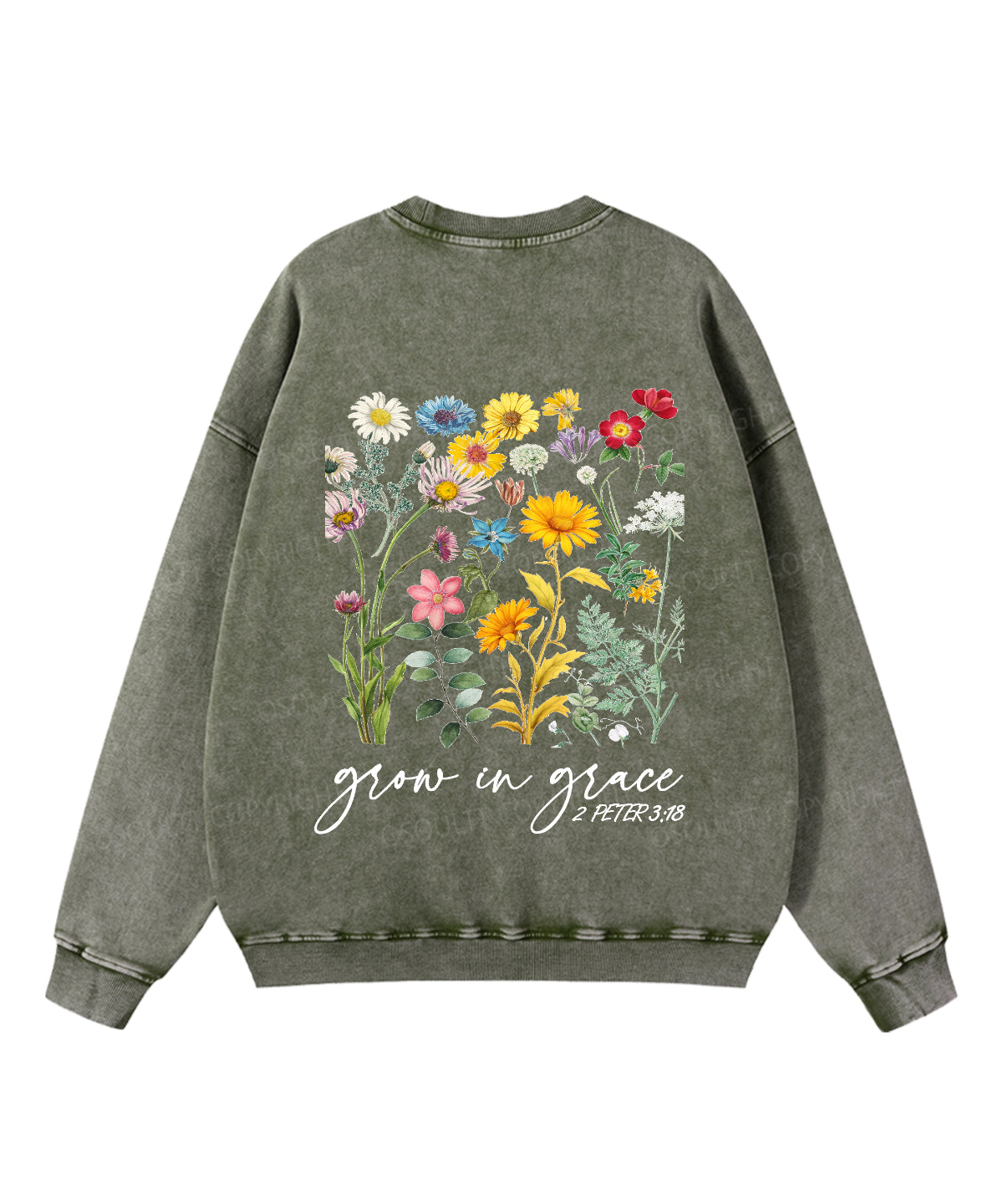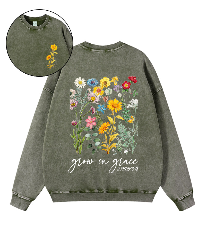 Grow In Grace Double Sided Washed Christian Sweatshirt