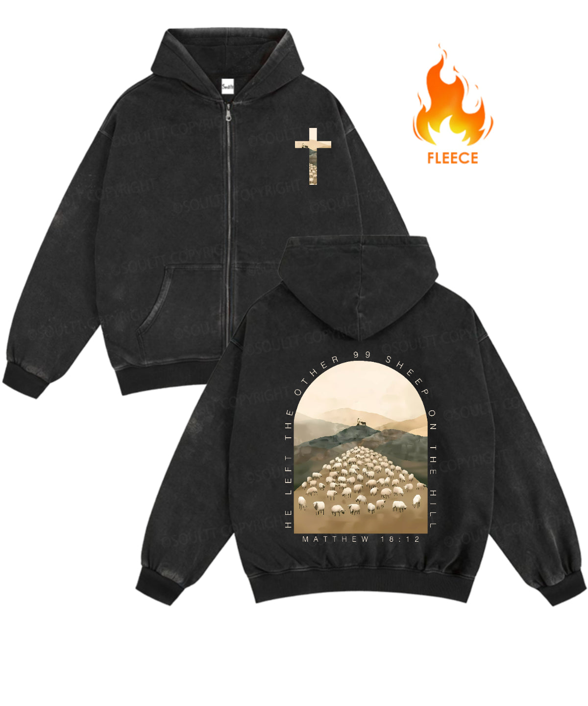 He Left The 99 Double Sided Washed Zip-Up Fleece Hoodie