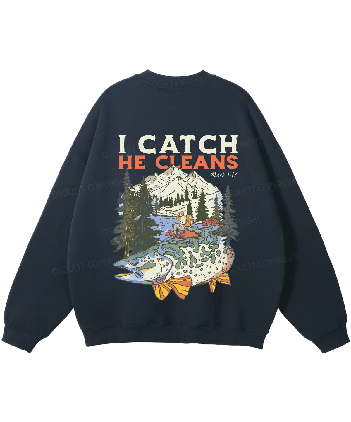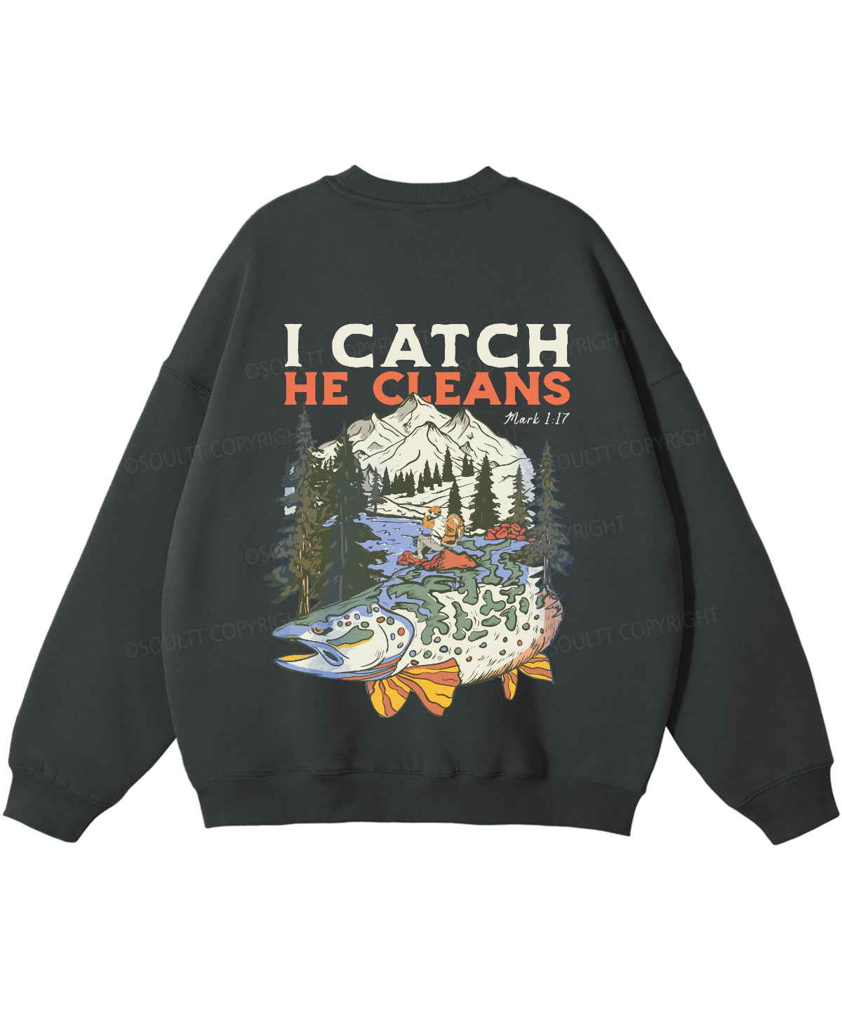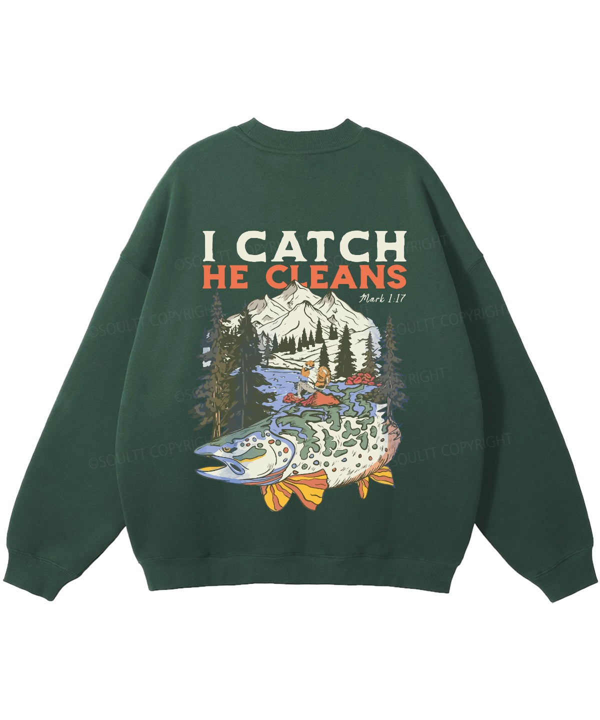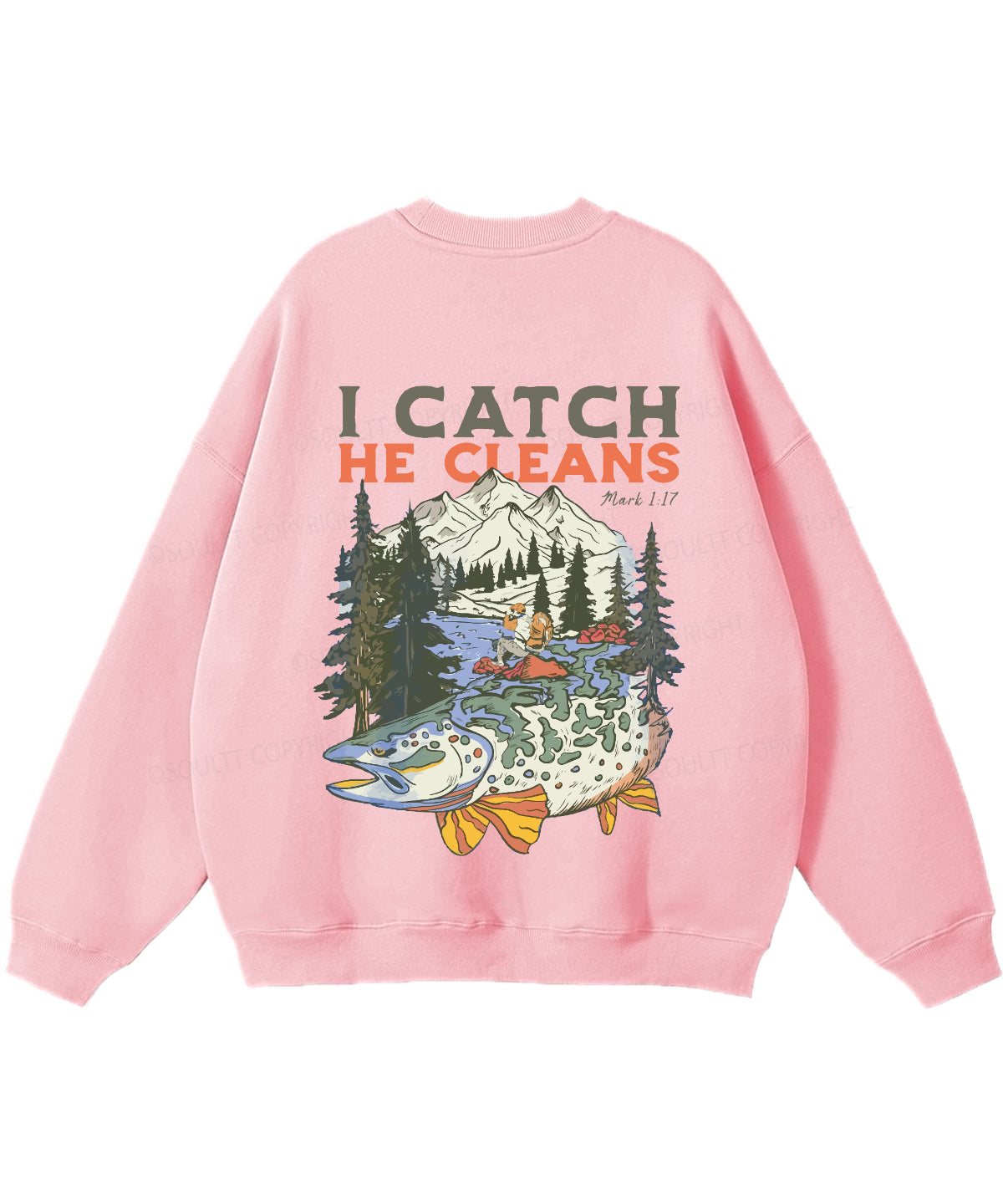 I Catch He Cleans Double Sided Christian Sweatshirt