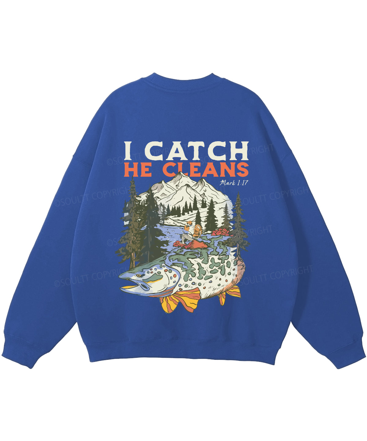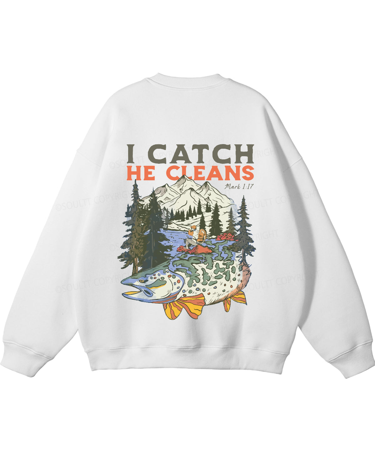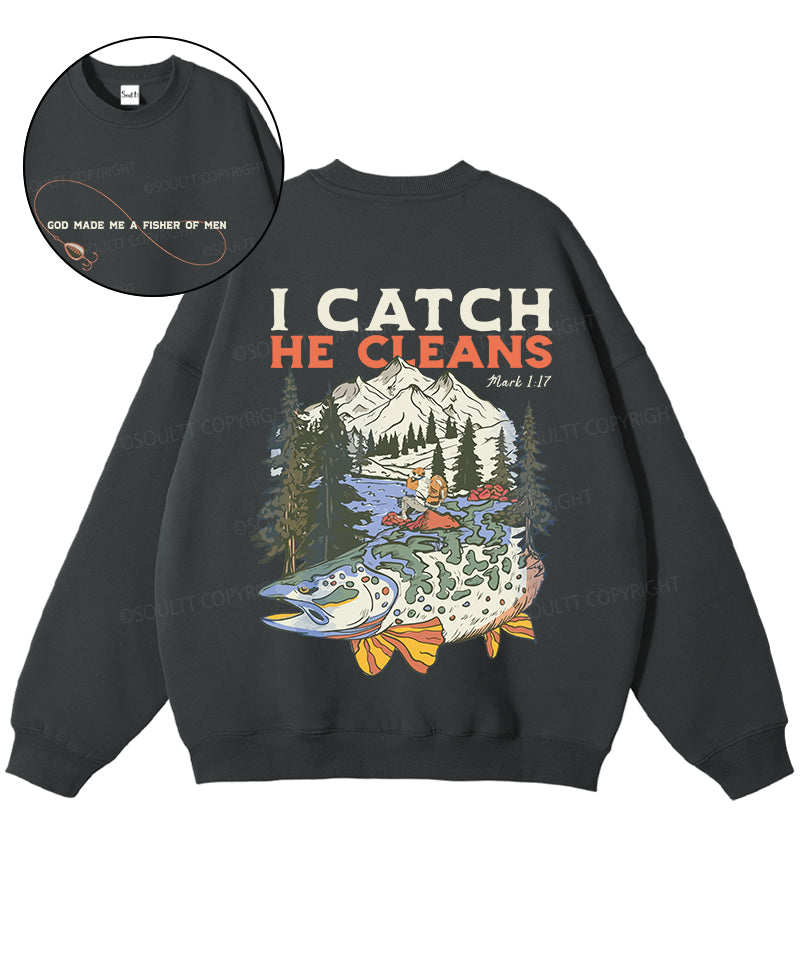 I Catch He Cleans Double Sided Christian Sweatshirt