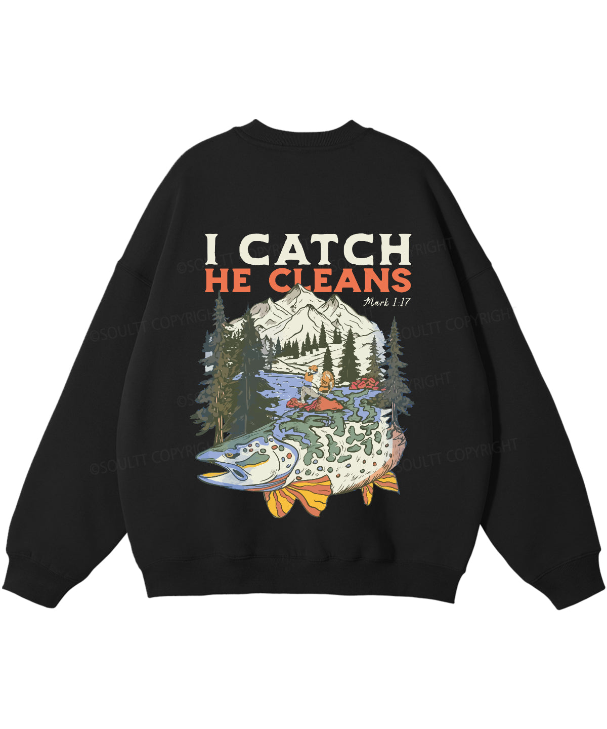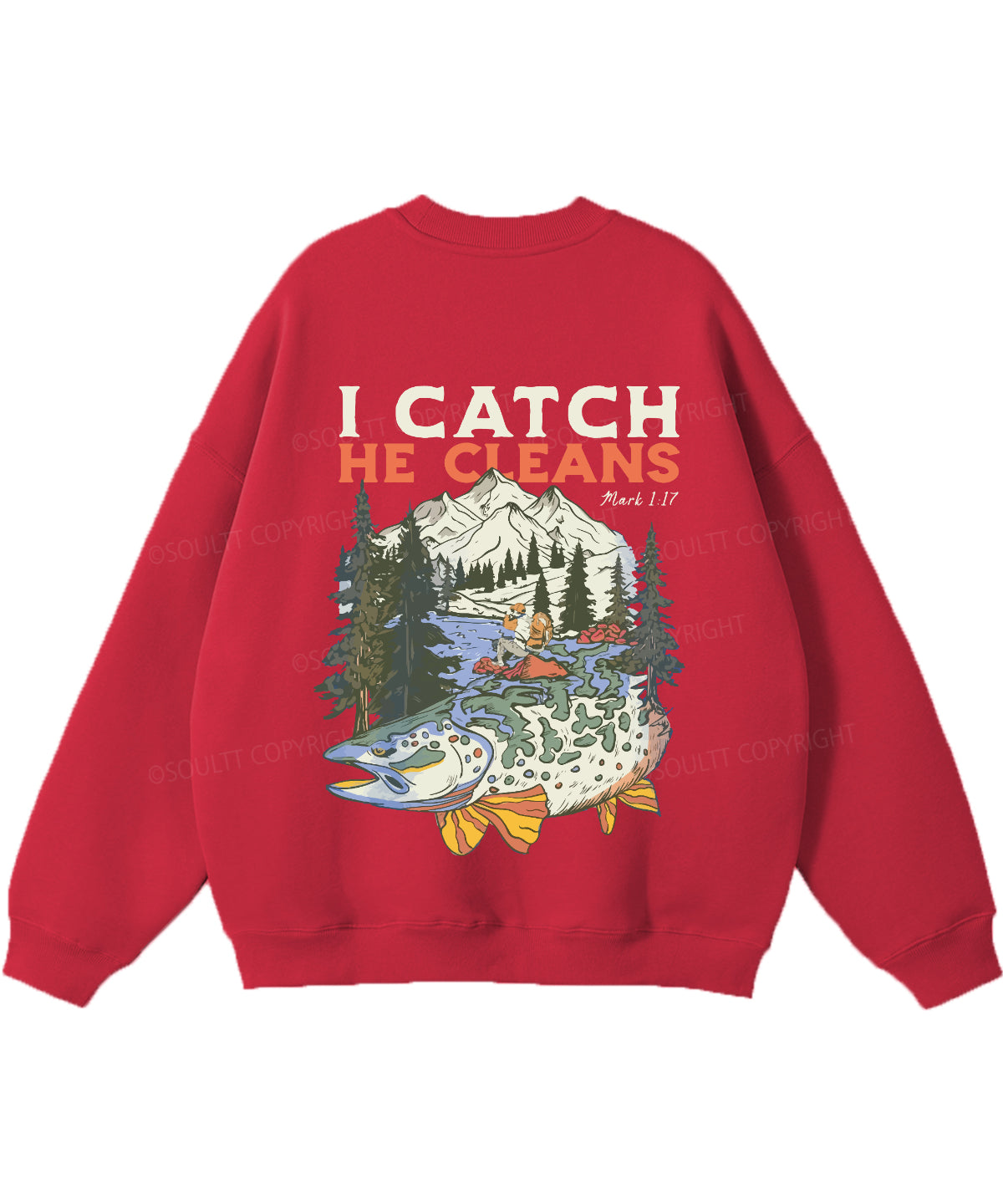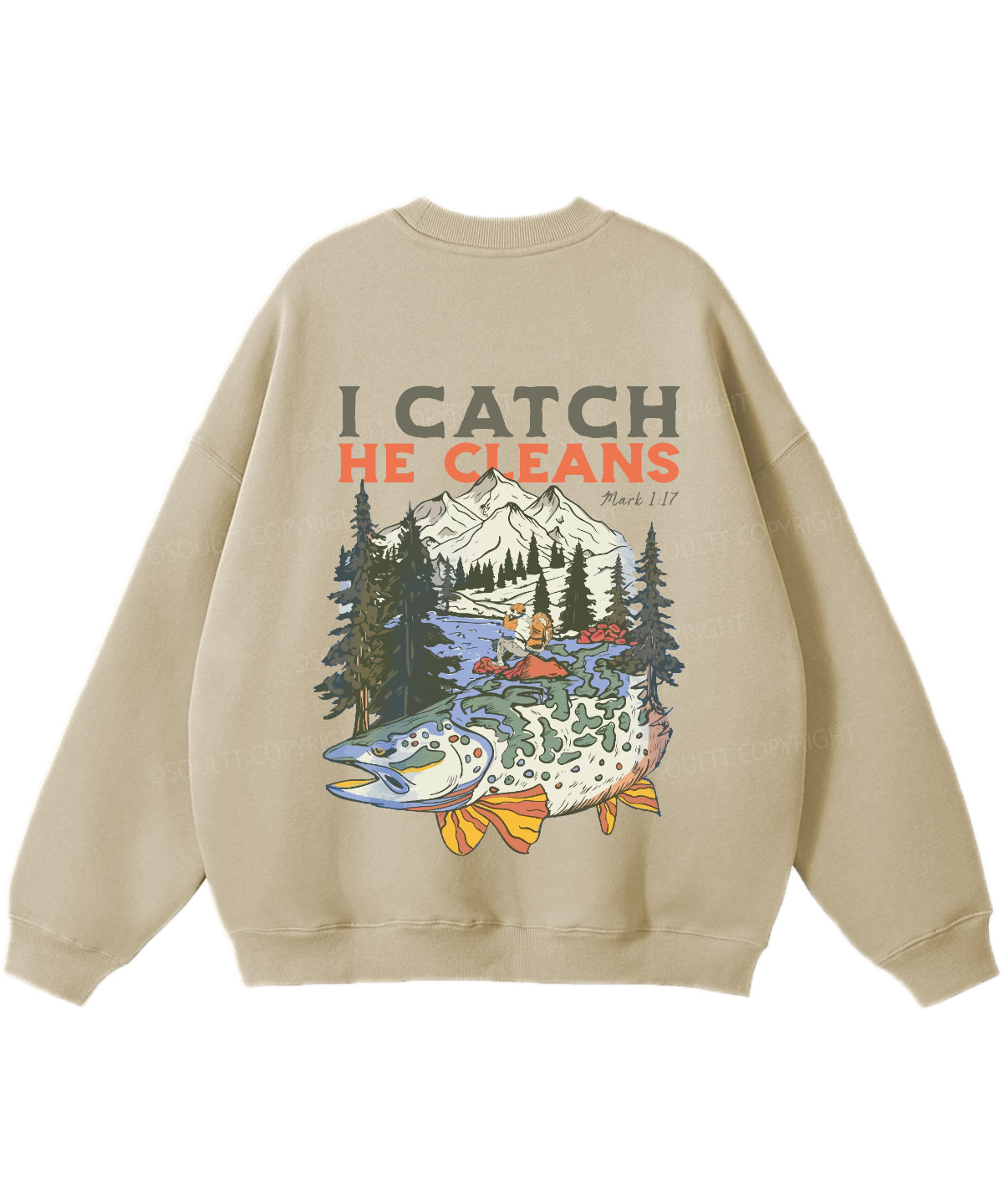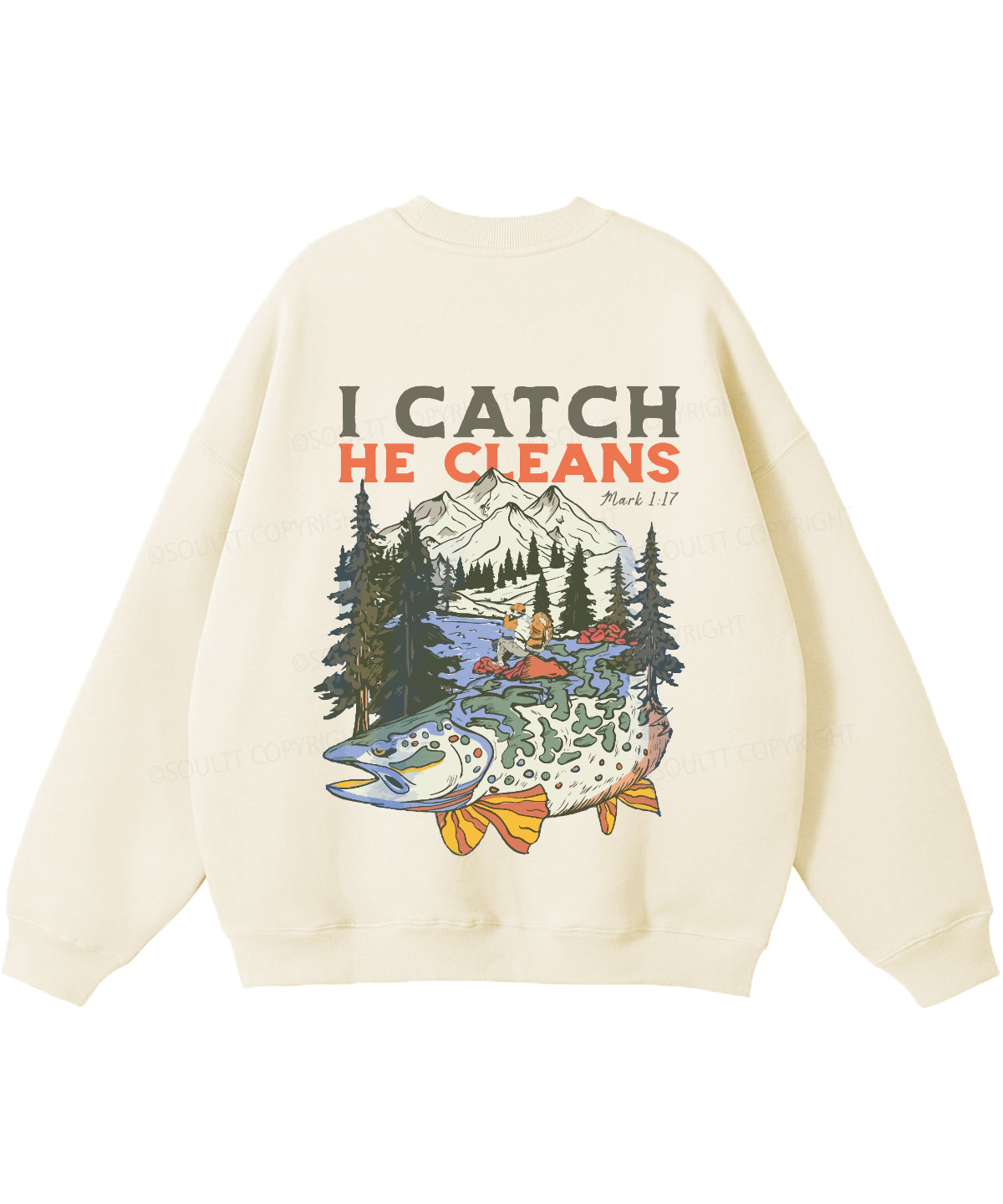 I Catch He Cleans Double Sided Christian Sweatshirt