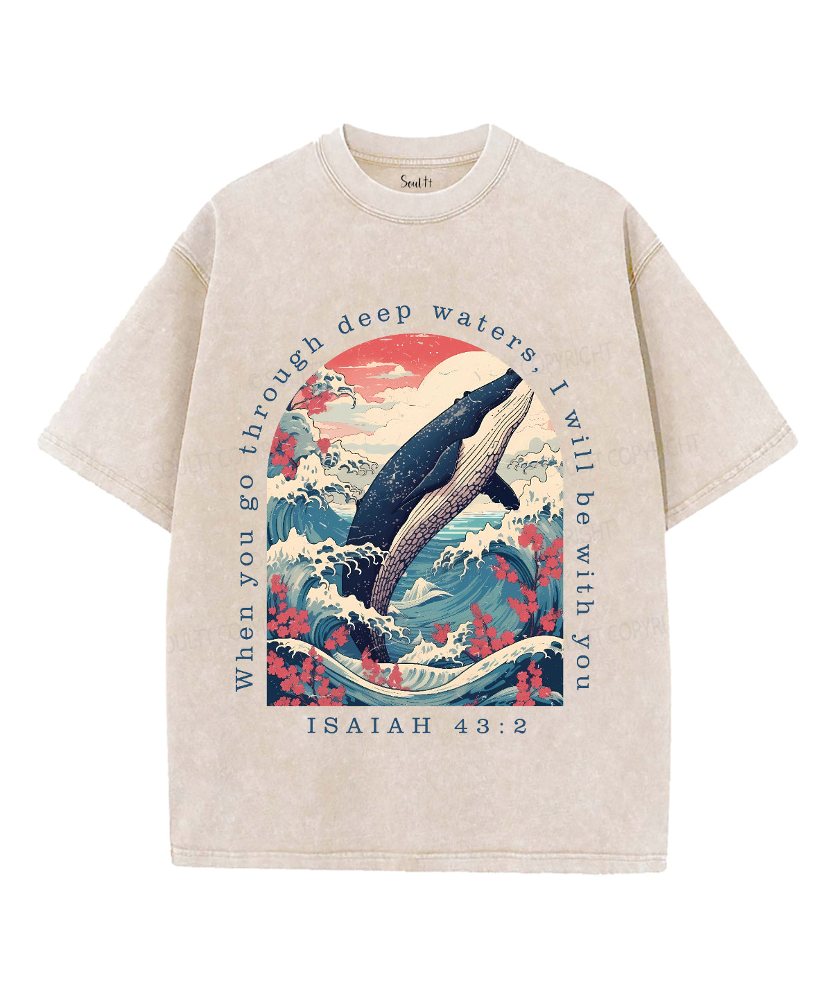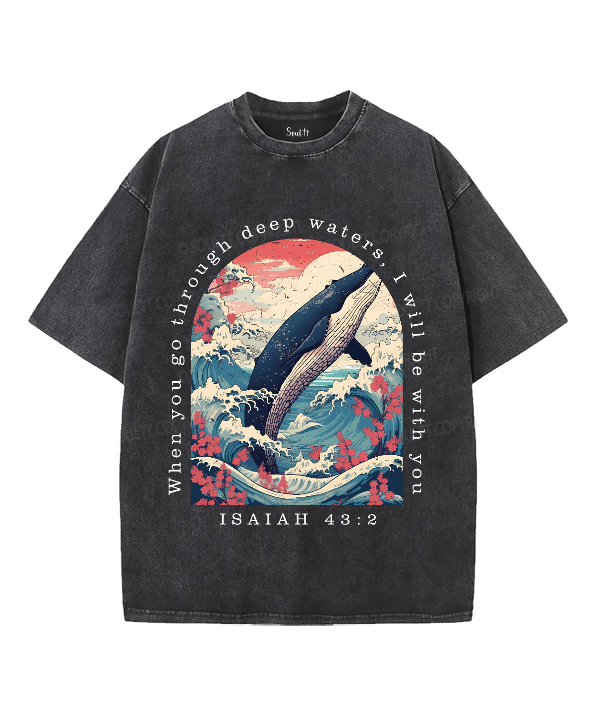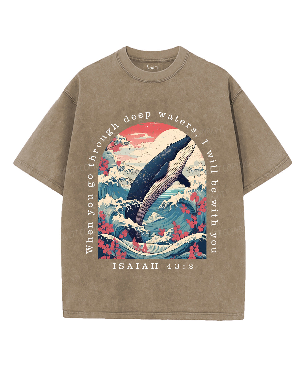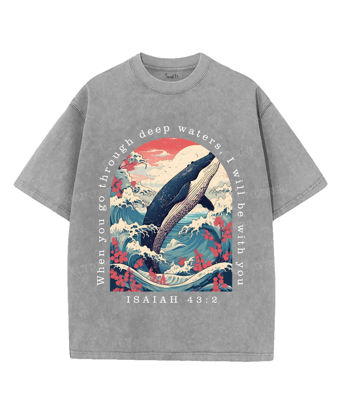 When You Go Through Deep Waters Unisex Washed Christian T-shirt