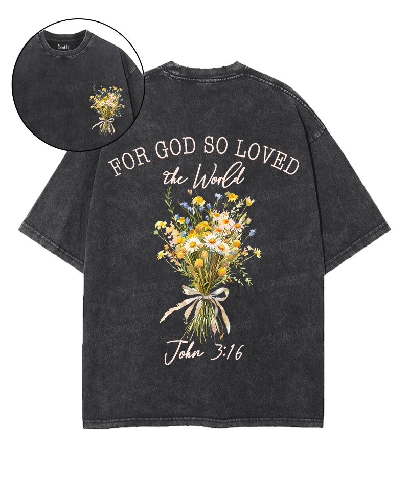 For God So Loved Double Sided Unisex Washed Christian T-shirt