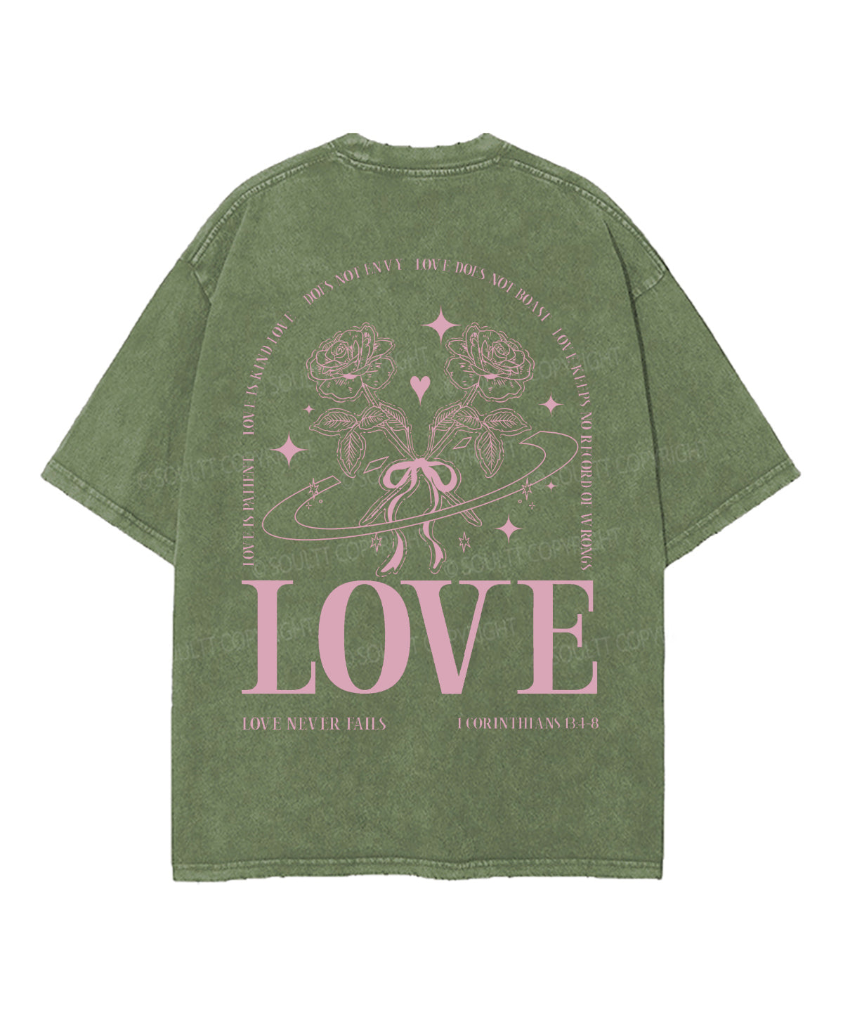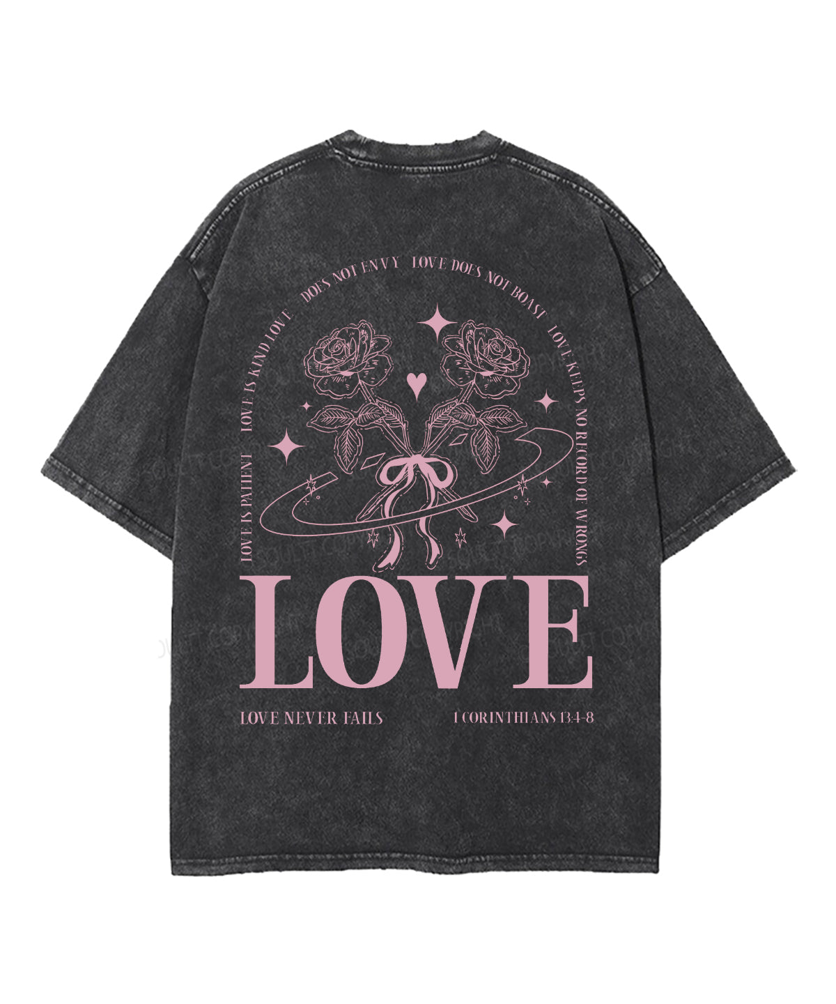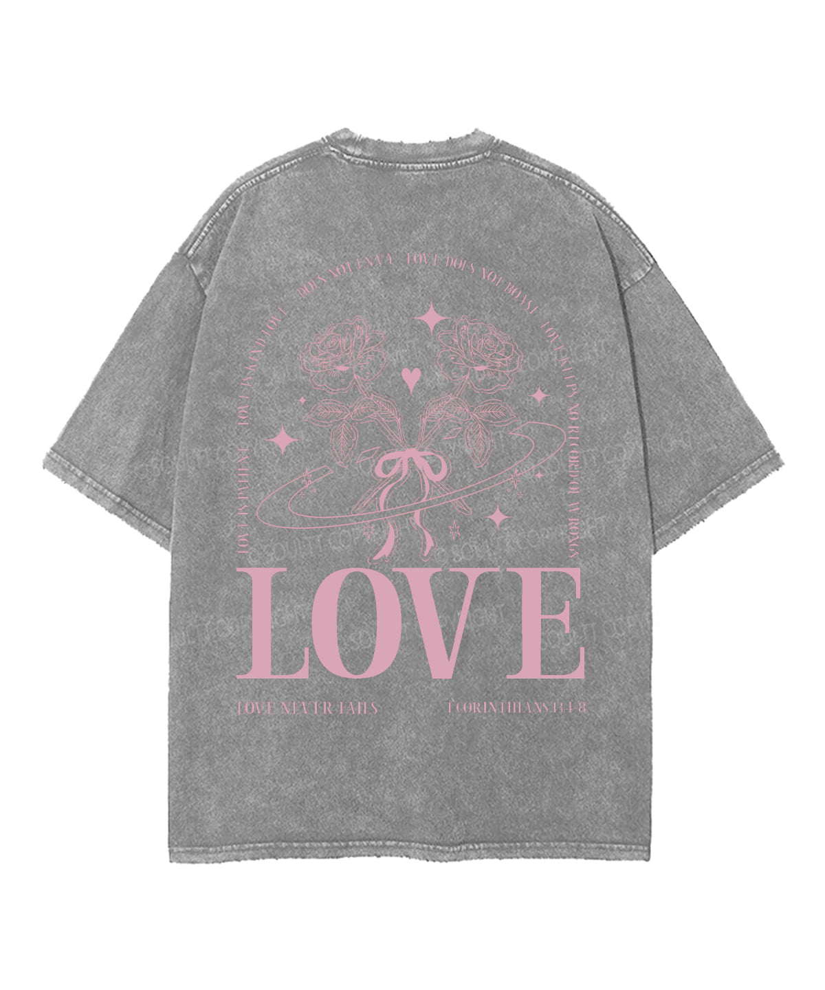 Love Never Fails Double Sided Unisex Washed Christian T-shirt