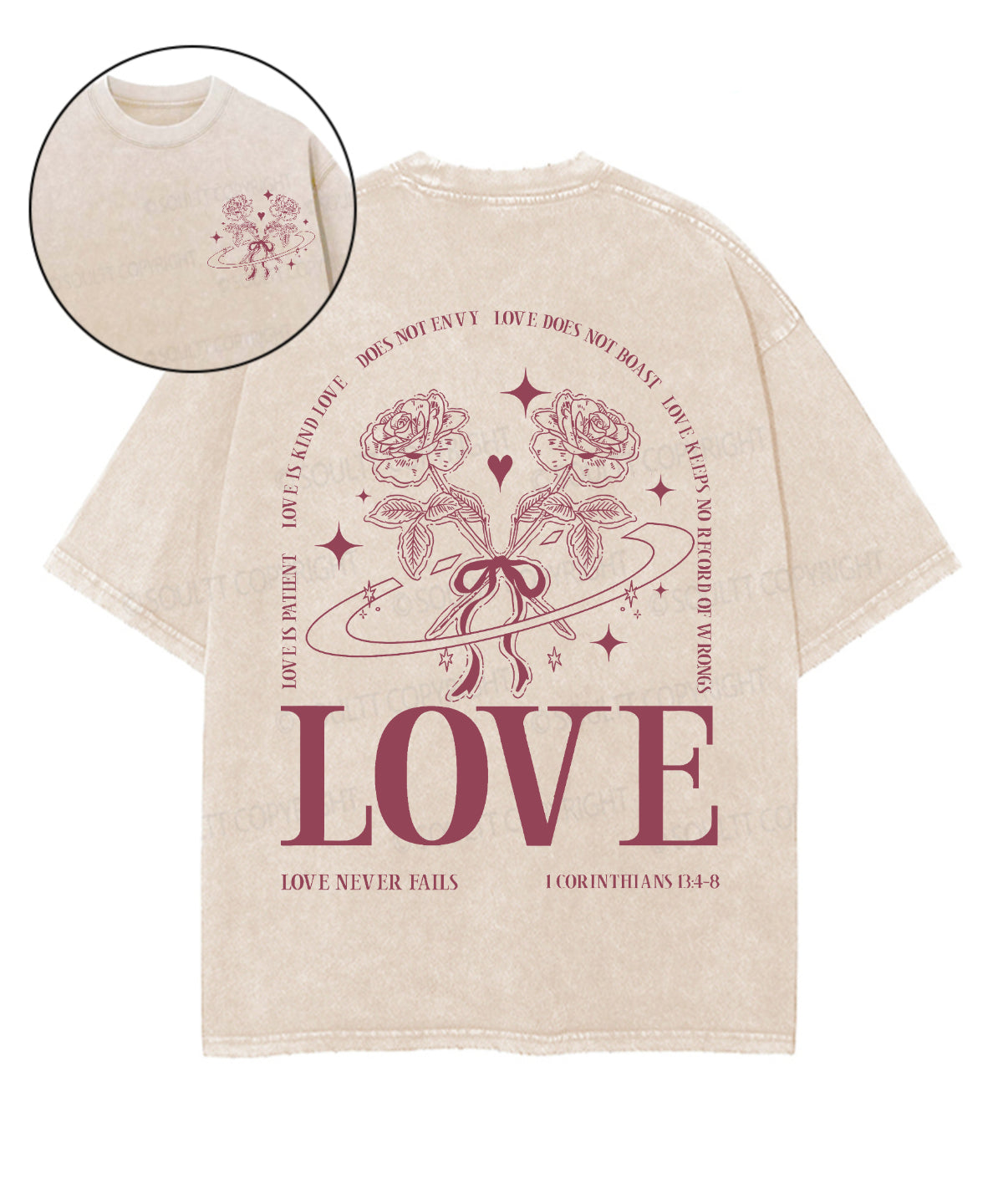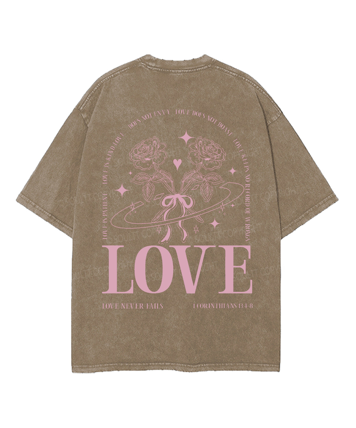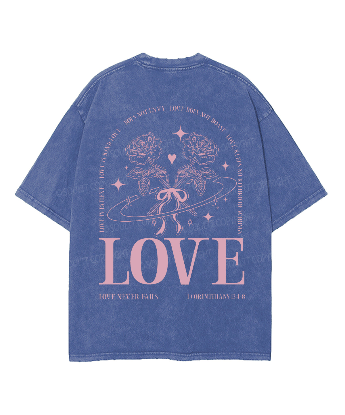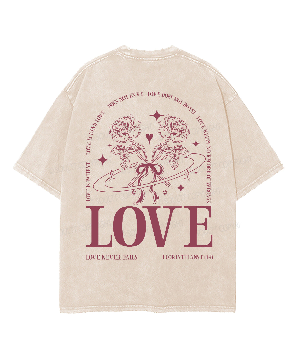 Love Never Fails Double Sided Unisex Washed Christian T-shirt