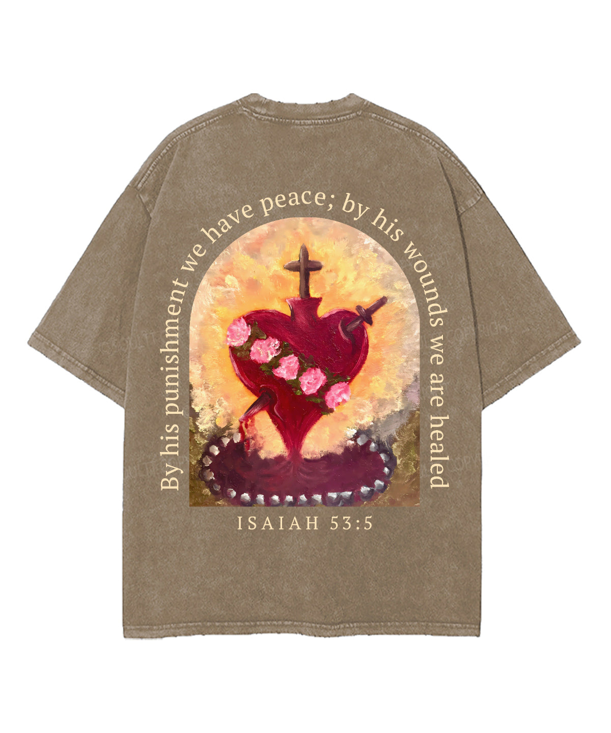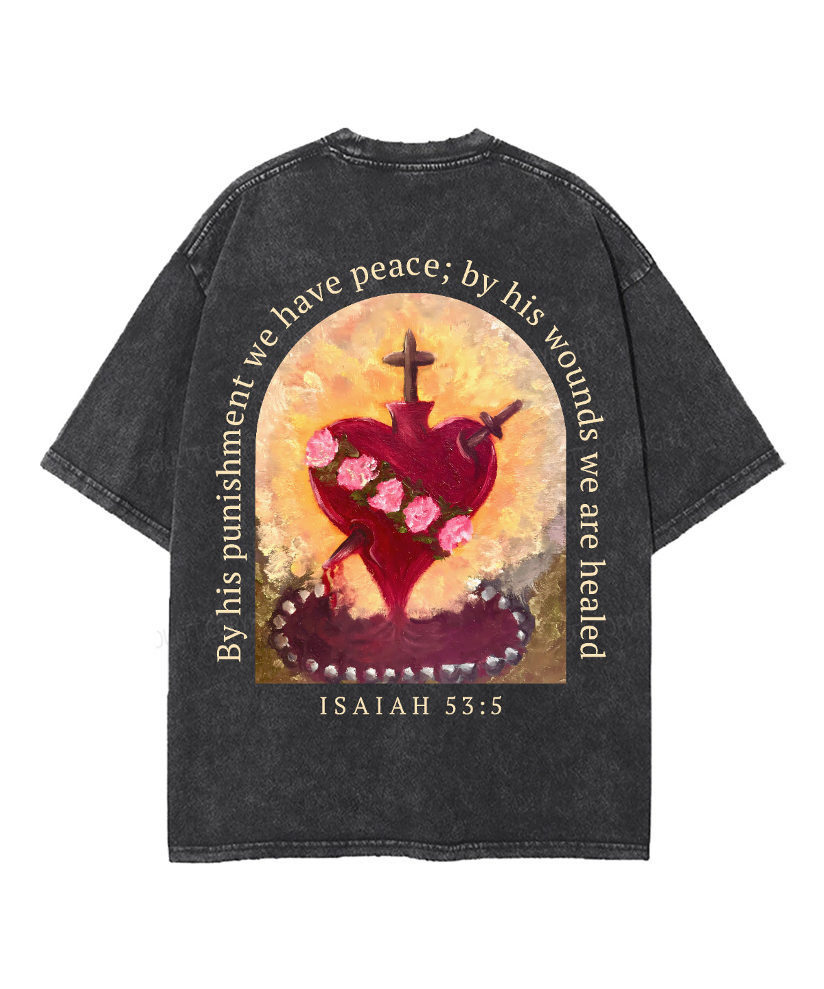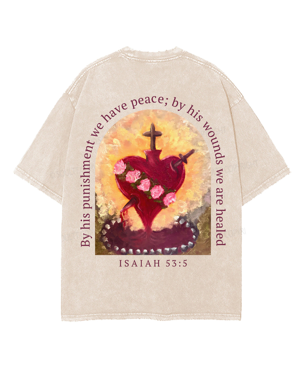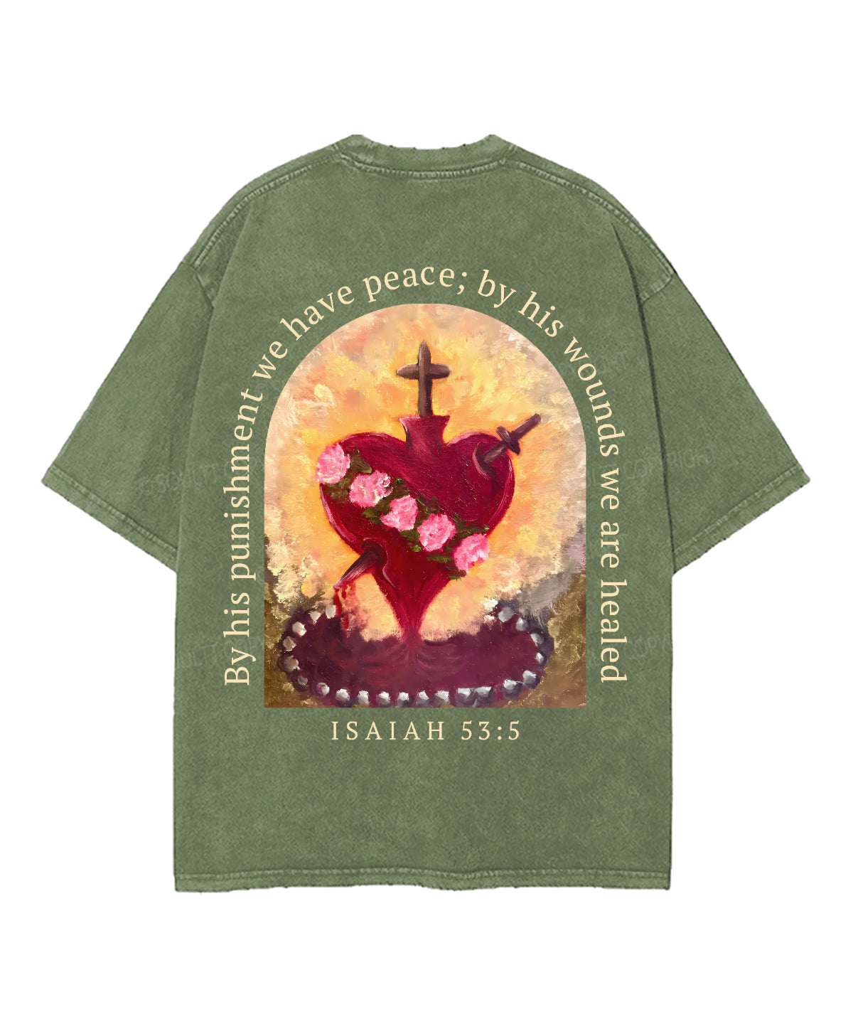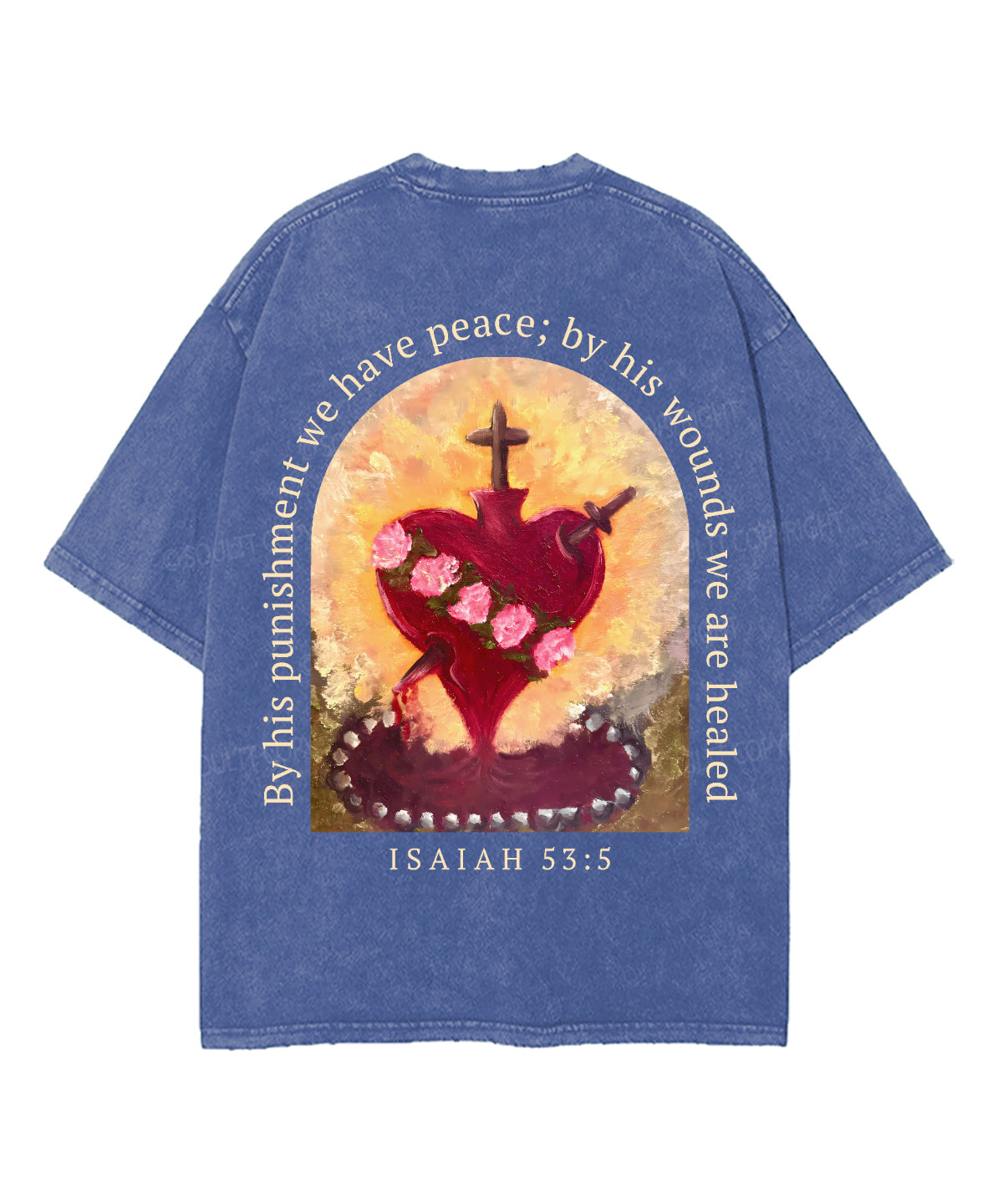 By His Wounds We Are Healed Double Sided Unisex Washed Christian T-shirt