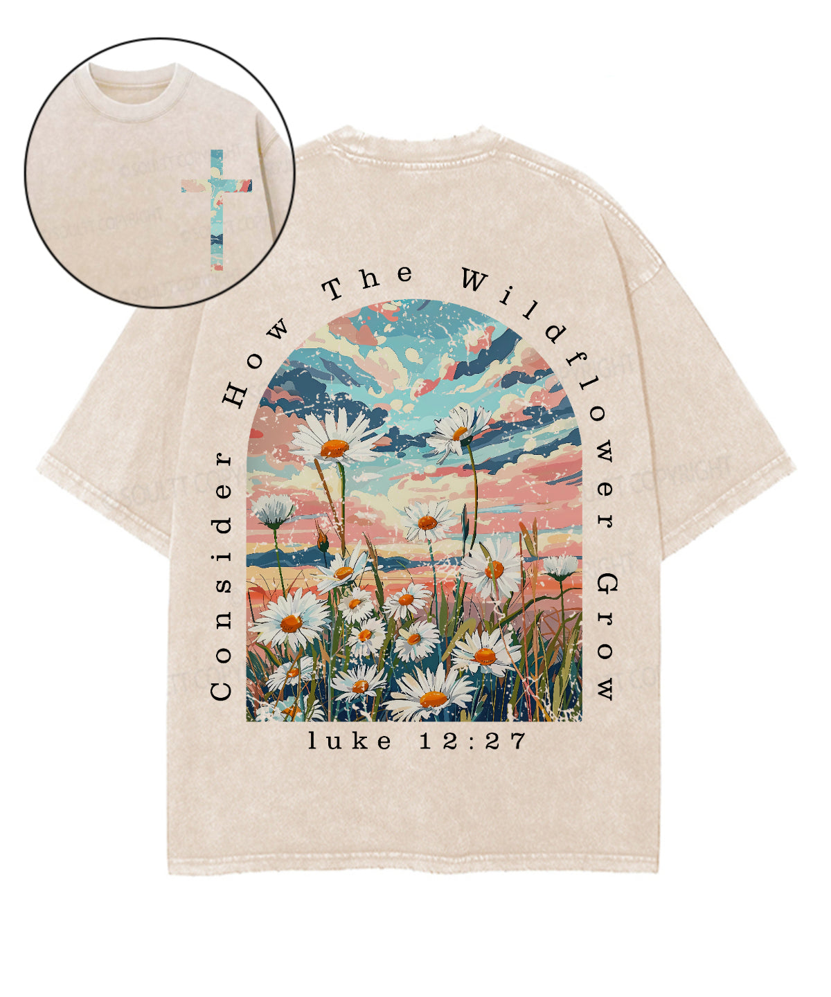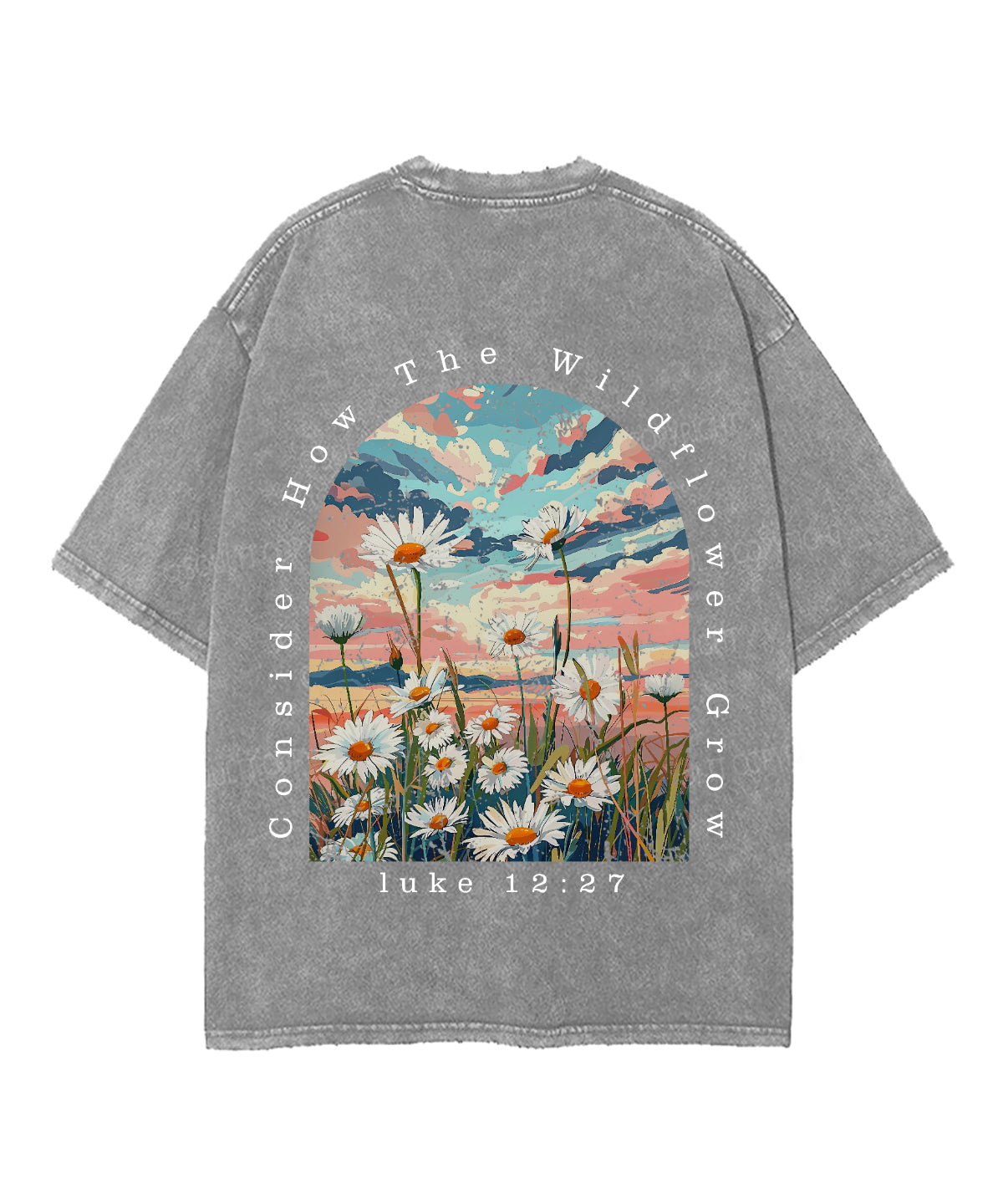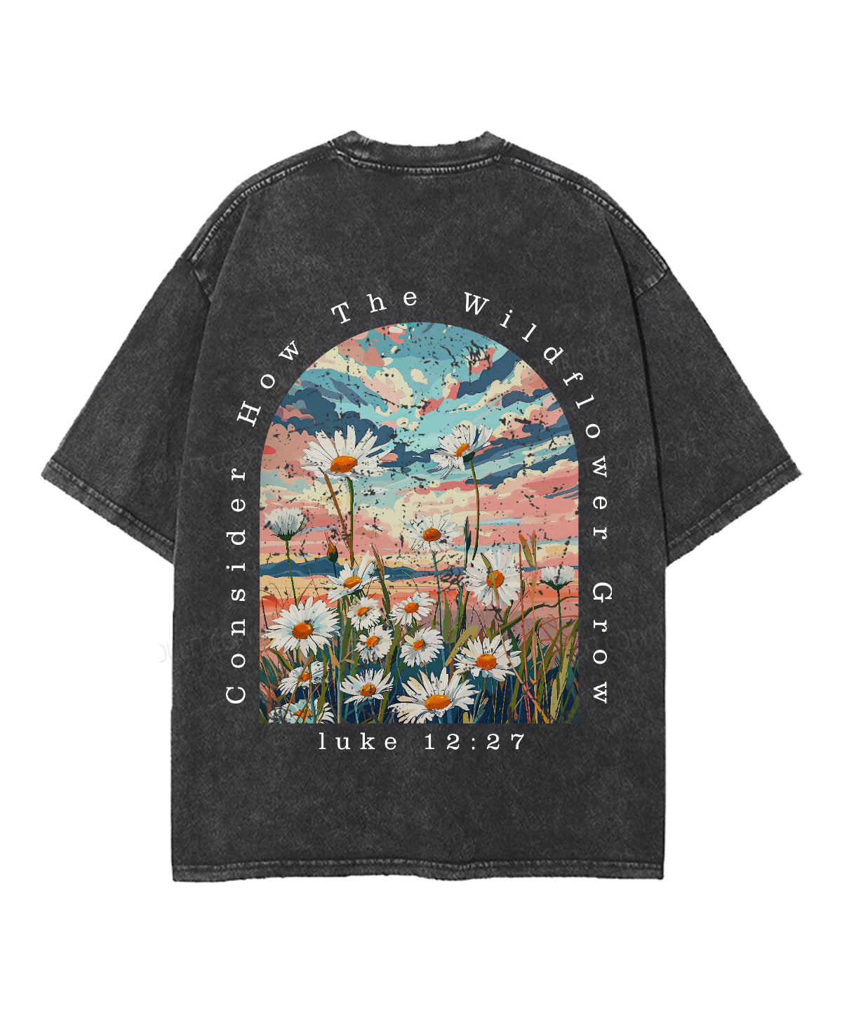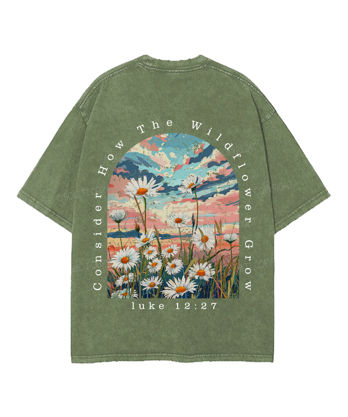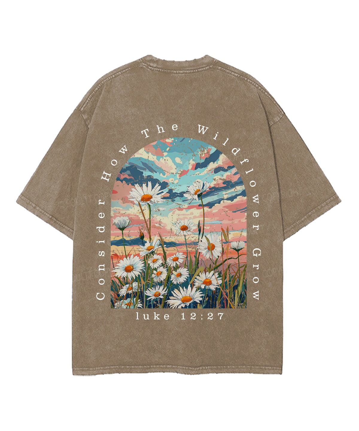 Consider How the Wildflower Grow Consider How the Wildflower Grow Unisex Washed Christian T-shirt
