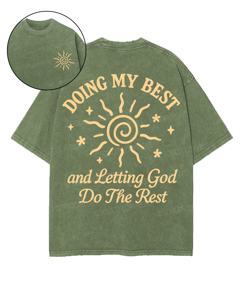 Doing My Best And Leatting God Double Sided Unisex Washed Christian T-shirt