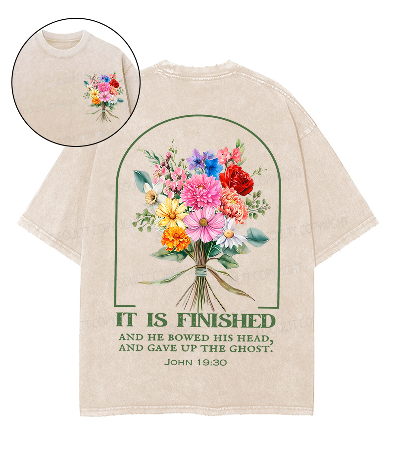 It Is Finished Double Sided Unisex Washed Christian T-shirt