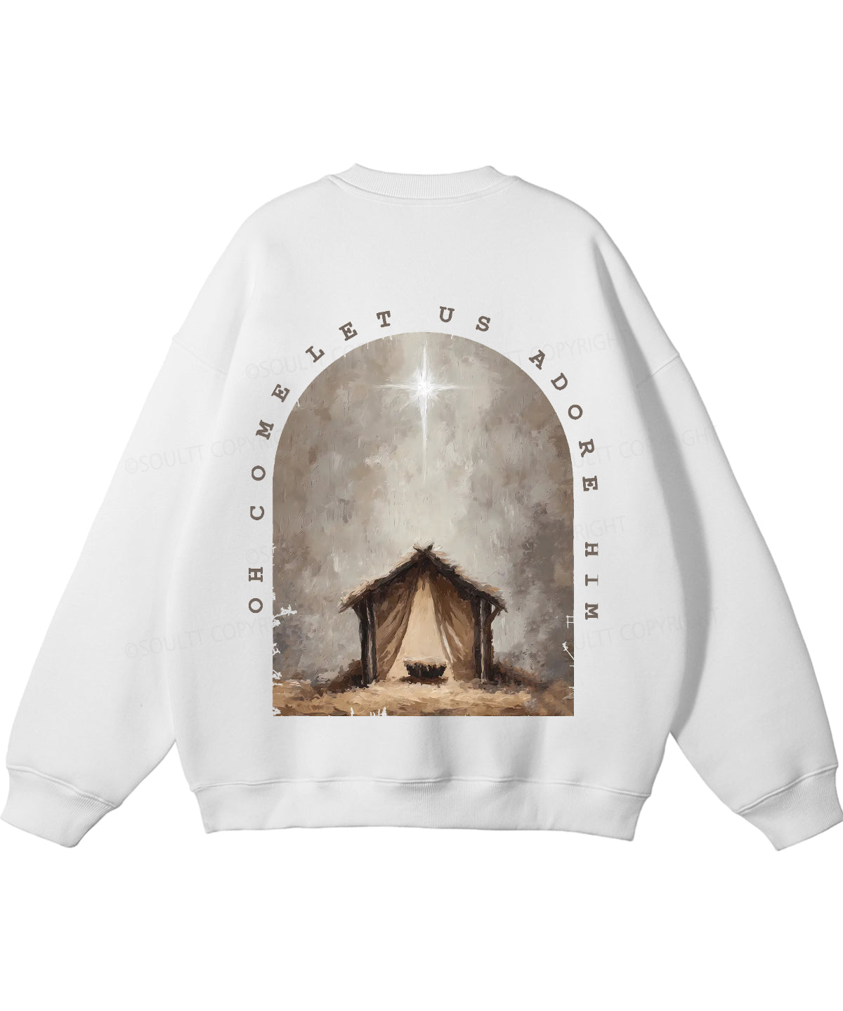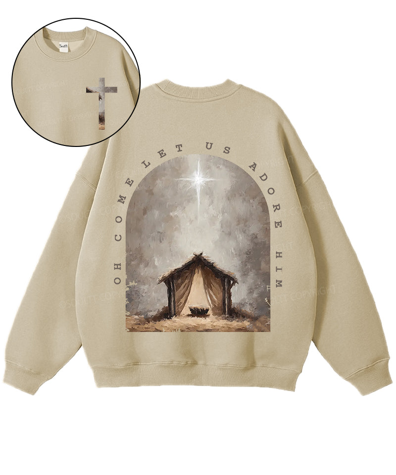 Oh Come Let Us Adore Him Double Sided Christian Sweatshirt