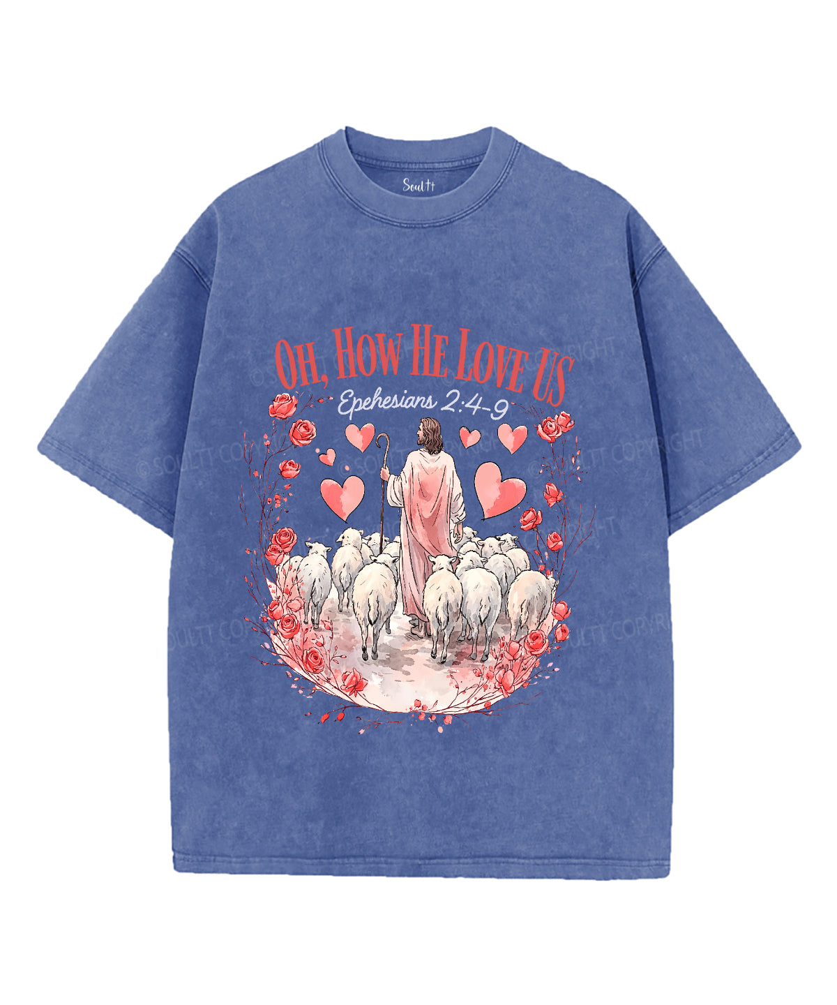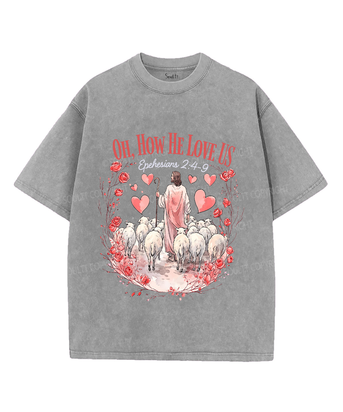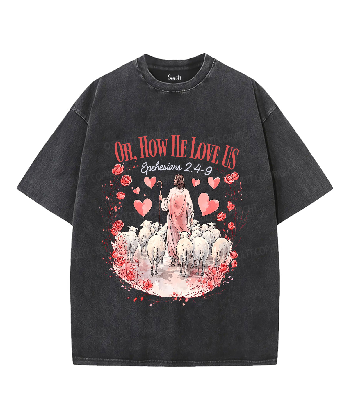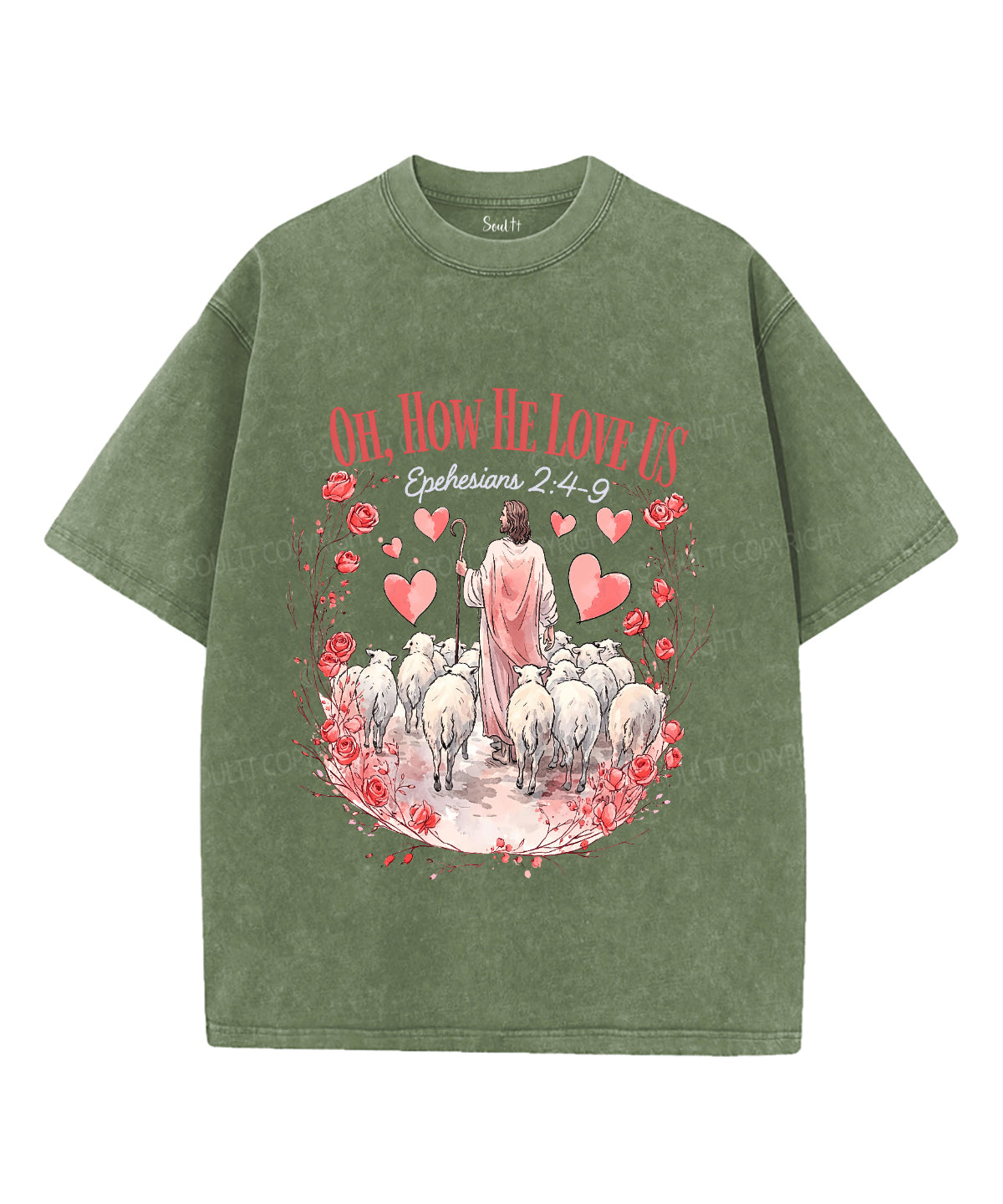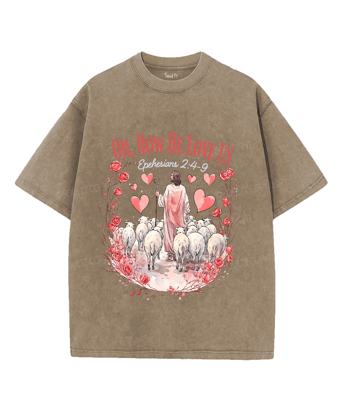 Oh How He Loves Us Unisex Washed Christian T-shirt