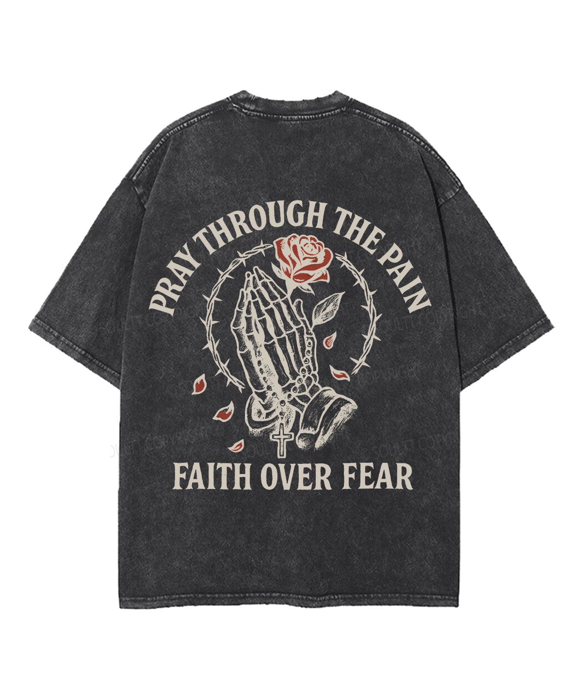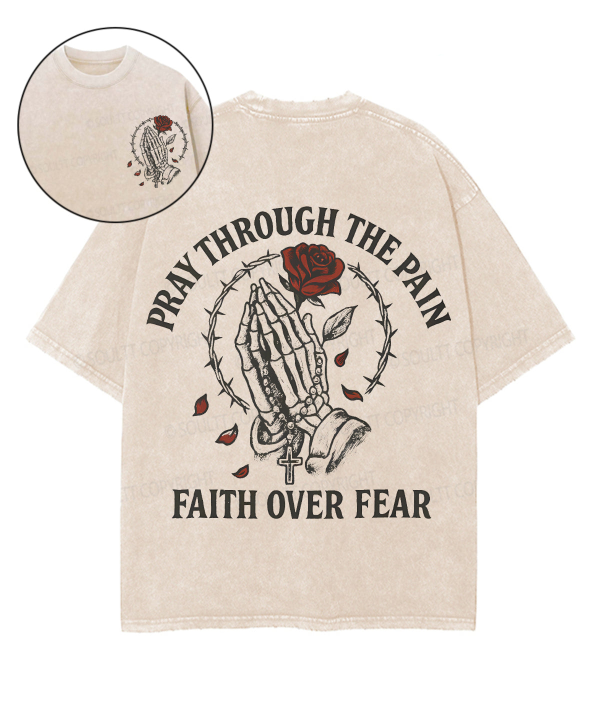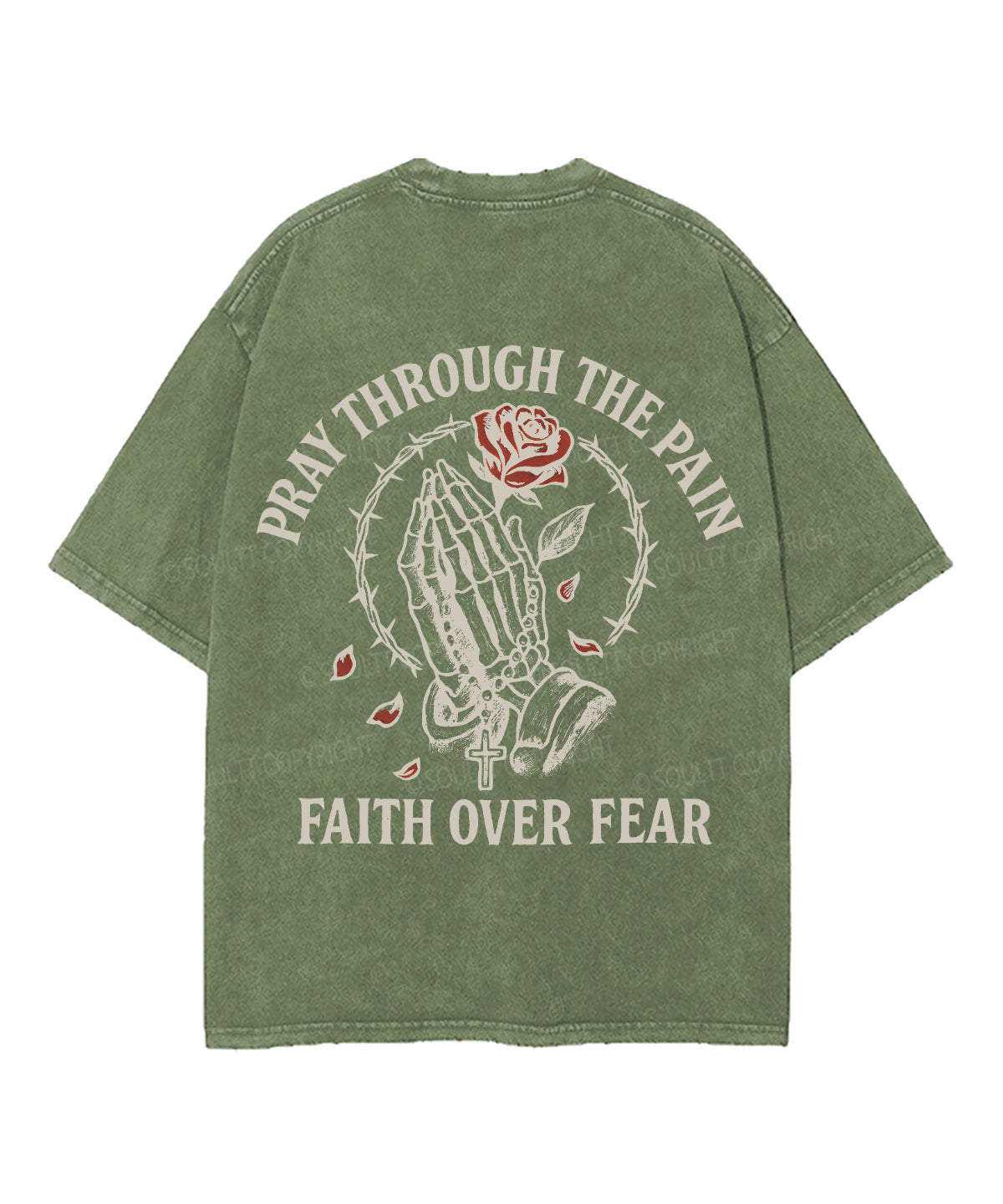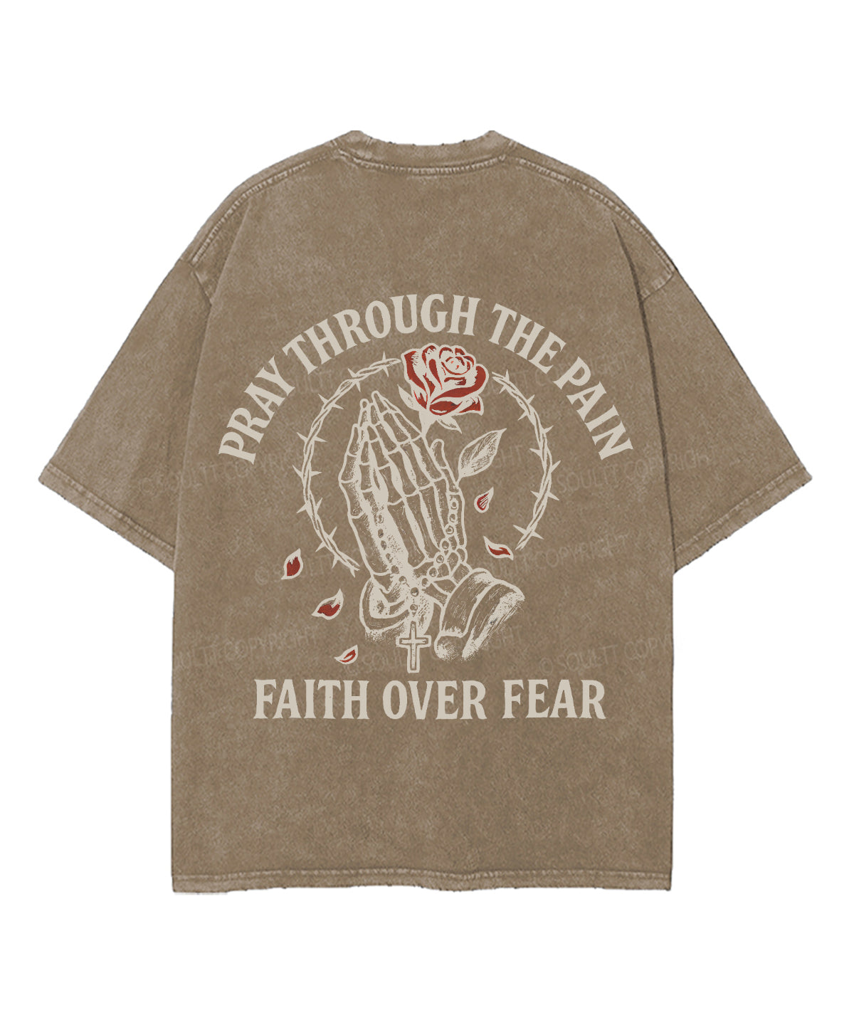 Pray Through the Pain Double Sided Unisex Washed Christian T-shirt
