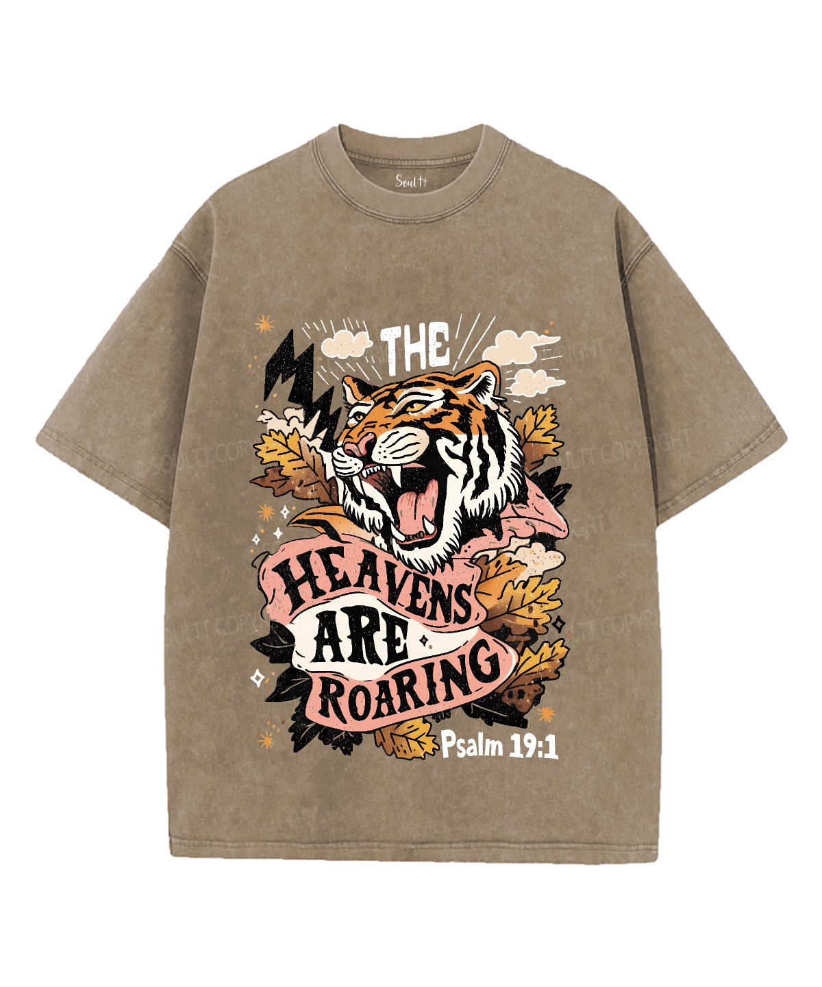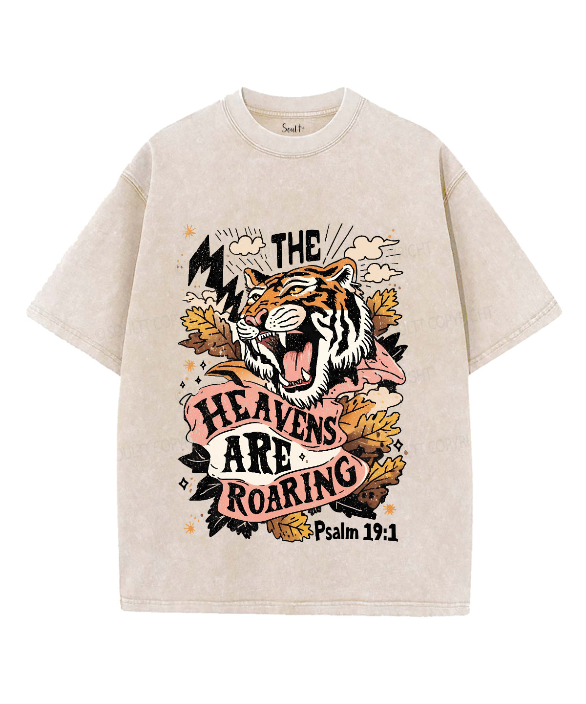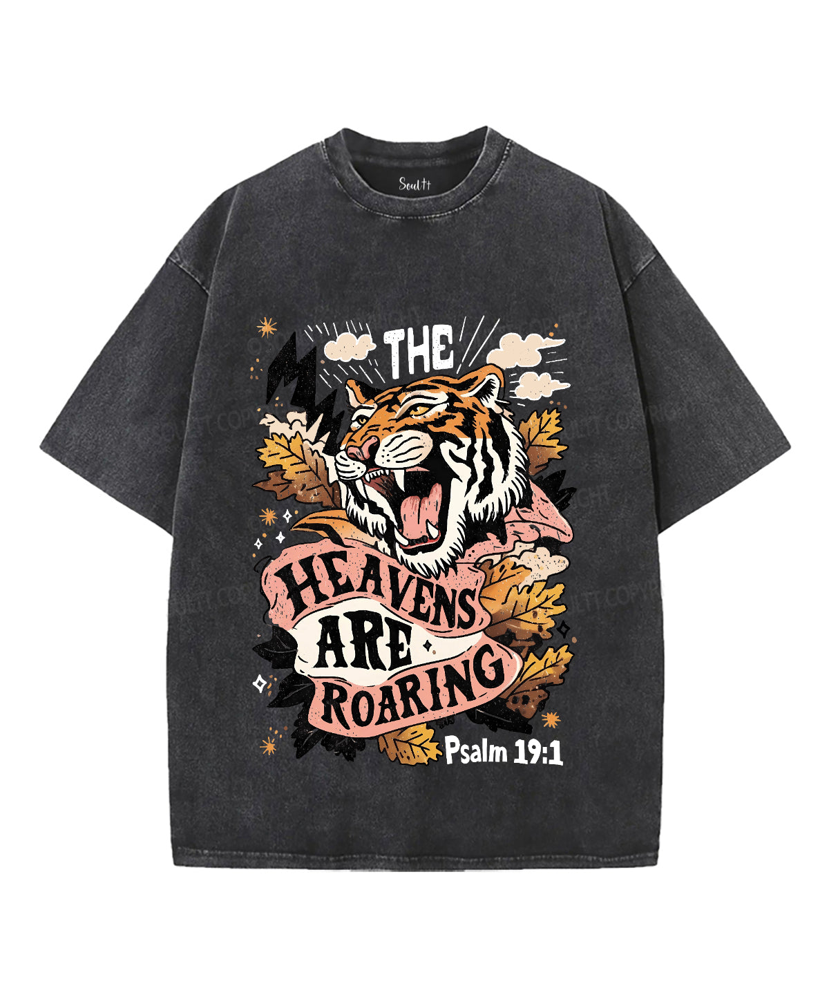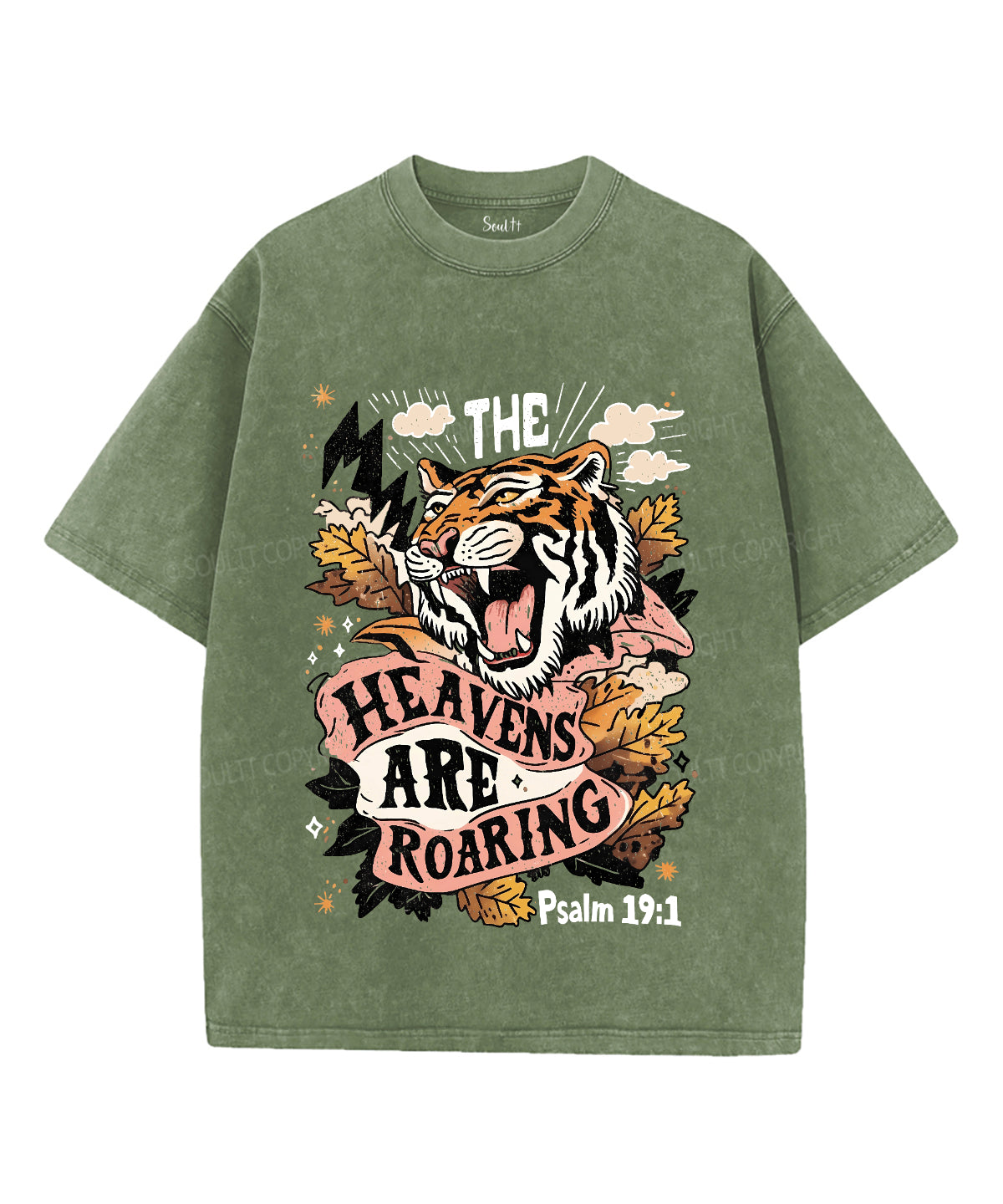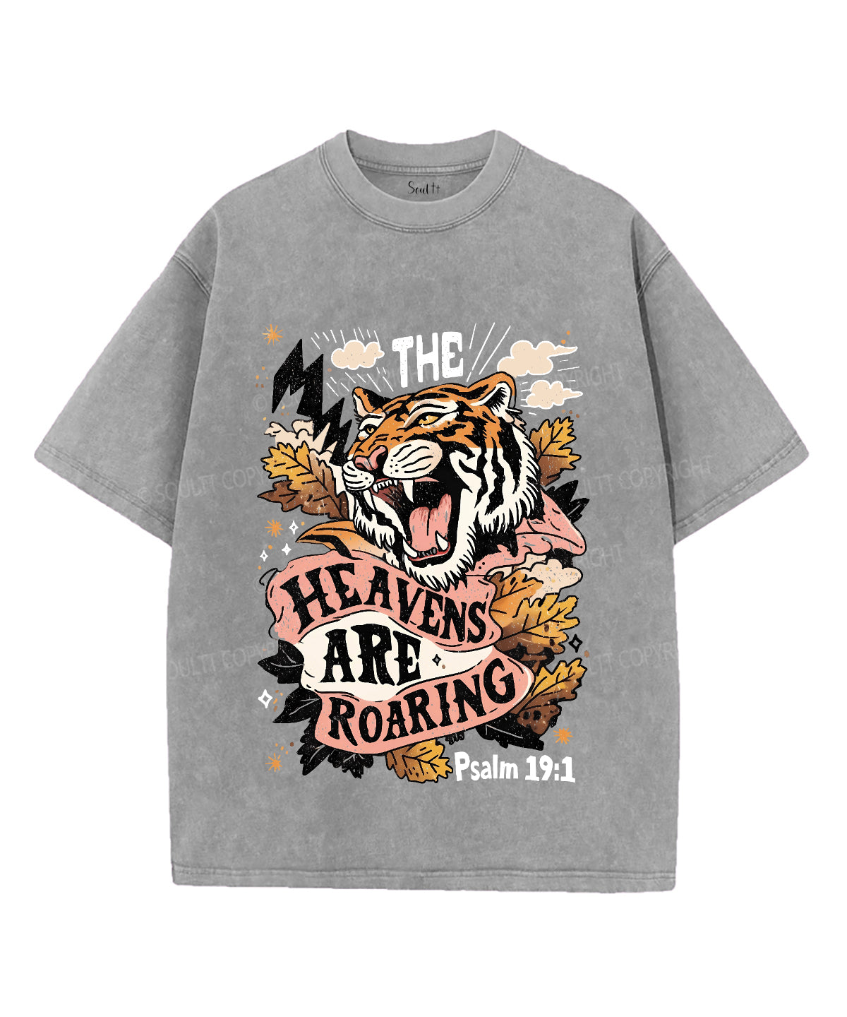 The Heavens are Roaring Unisex Washed Christian T-shirt