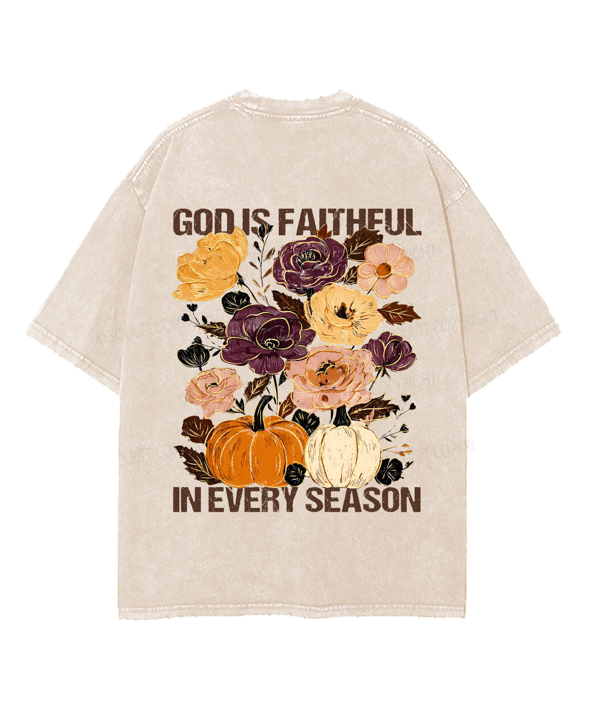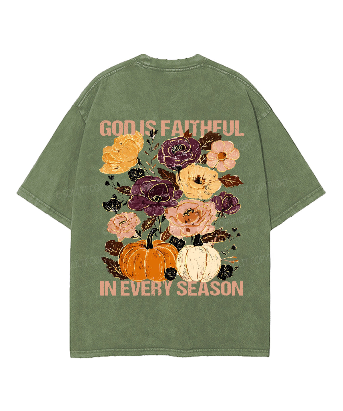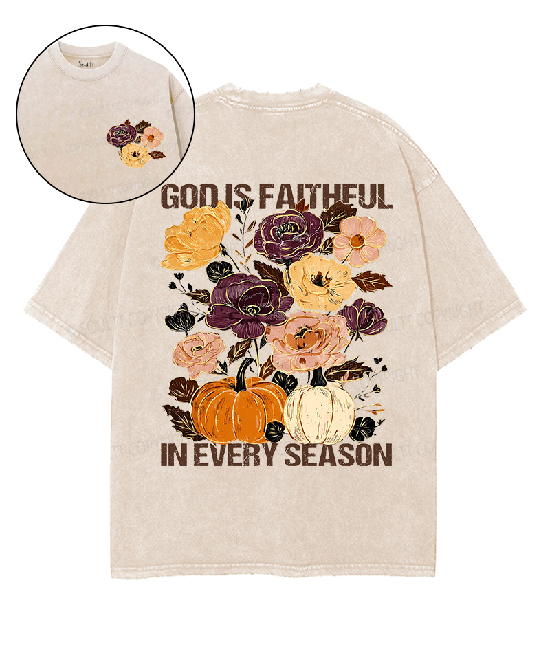God Is Faithful In Every Season Double Sided Unisex Washed Christian T-shirt
