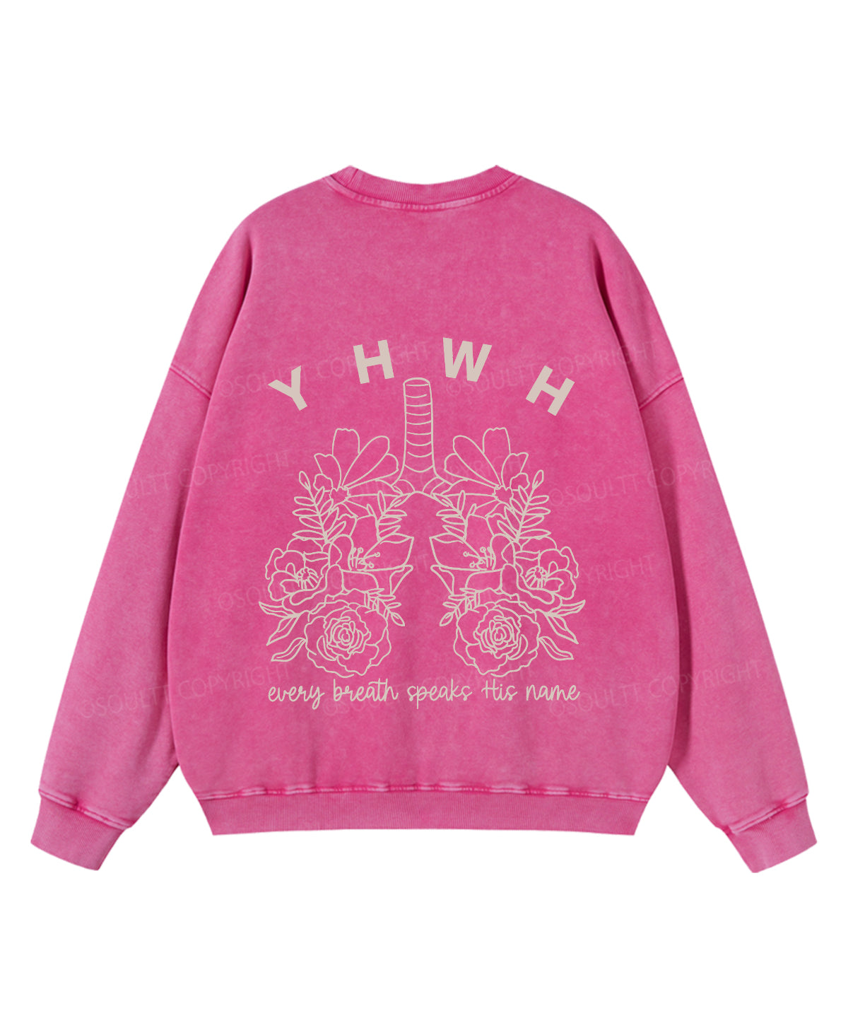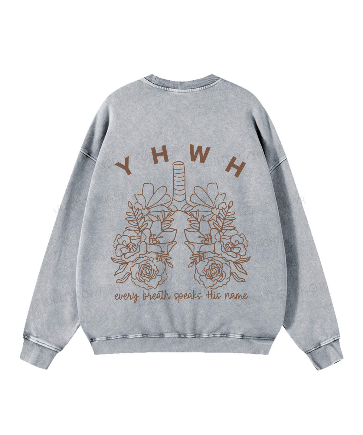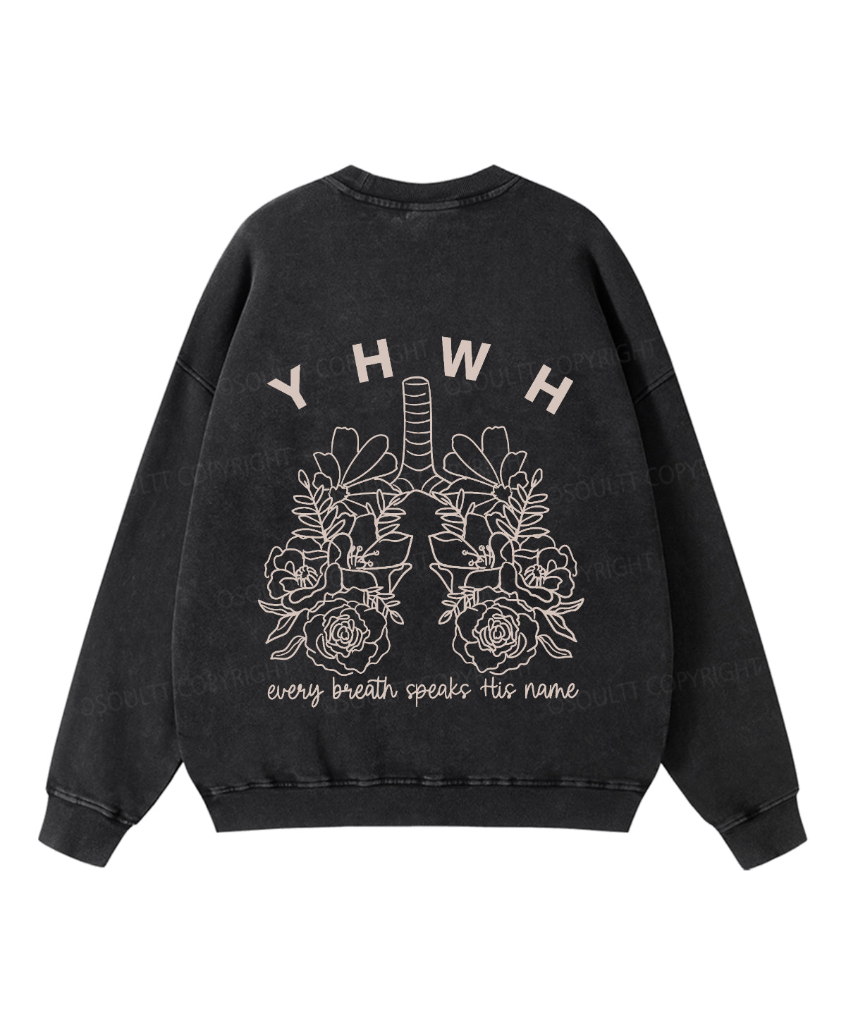 Every Breath Speaks His Name Double Sided Washed Christian Sweatshirt
