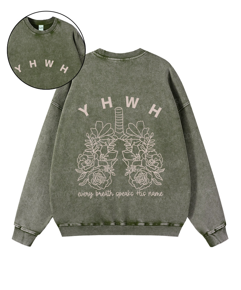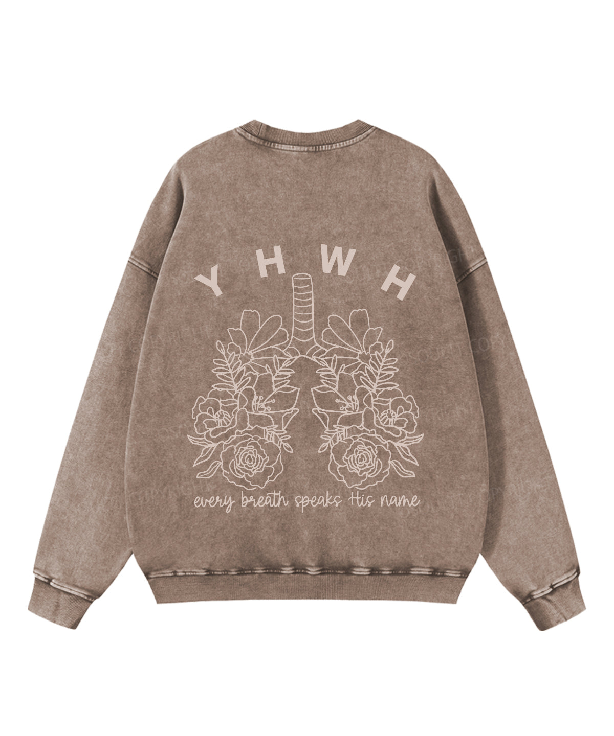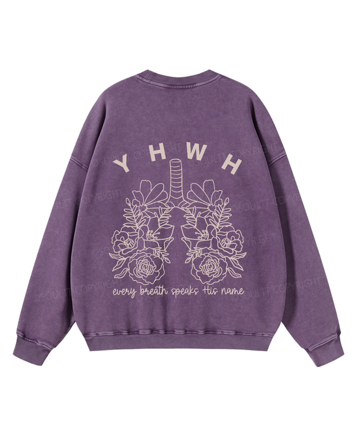 Every Breath Speaks His Name Double Sided Washed Christian Sweatshirt