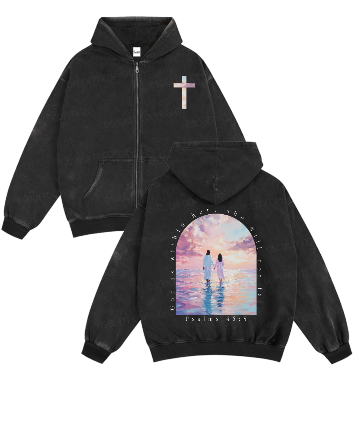 God Is Within Her Double Sided Washed Christian Zip-Up Hoodie