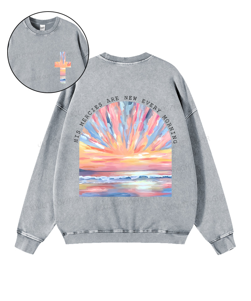 His Mercies Are New Every Morning Double Sided Washed Christian Sweatshirt