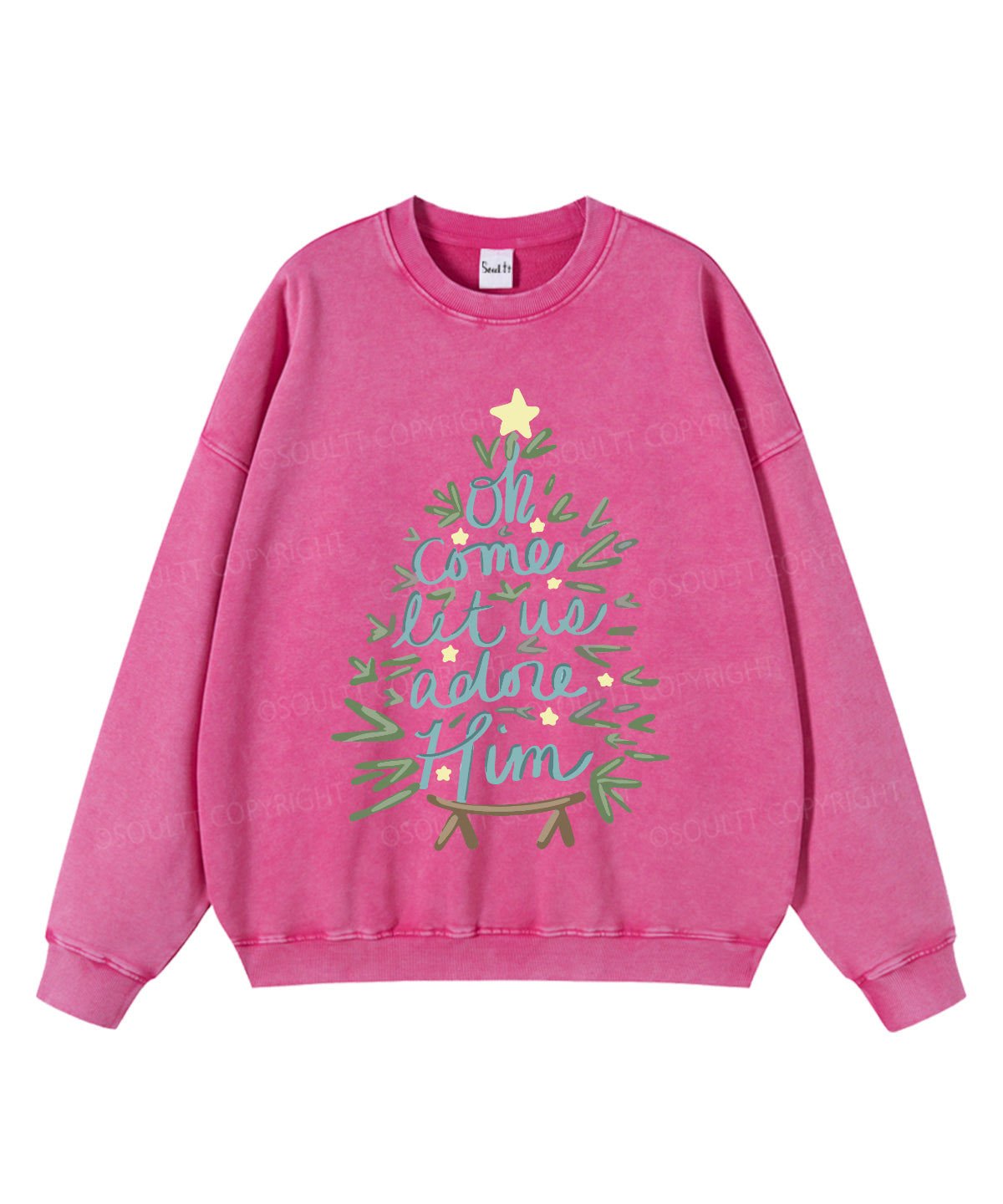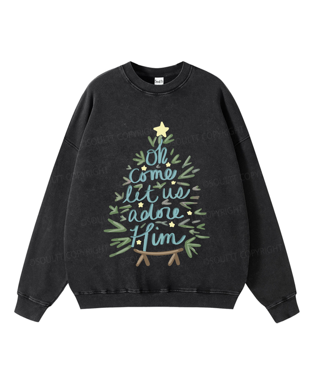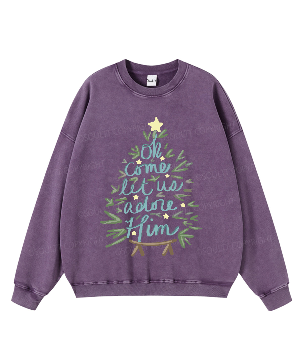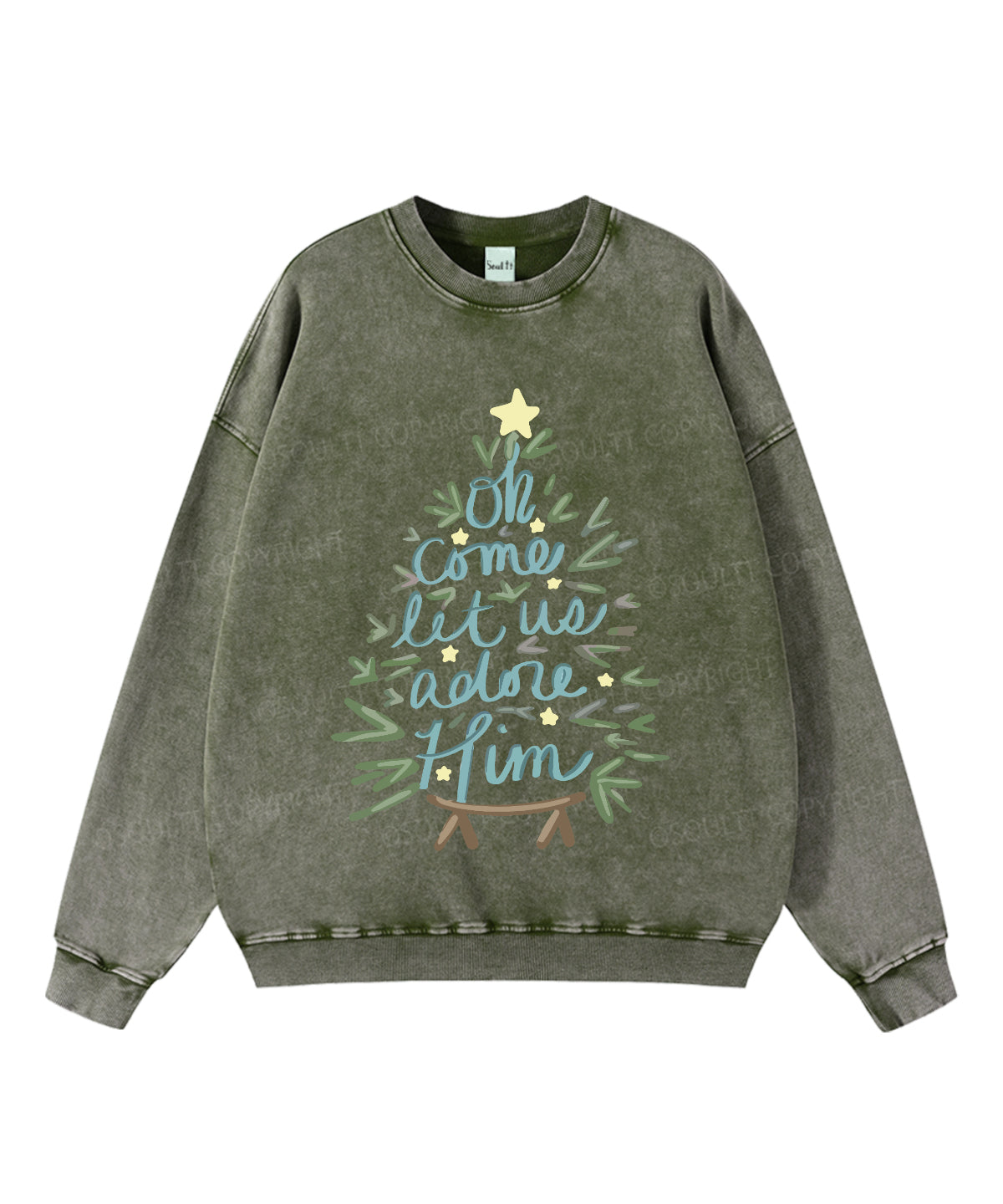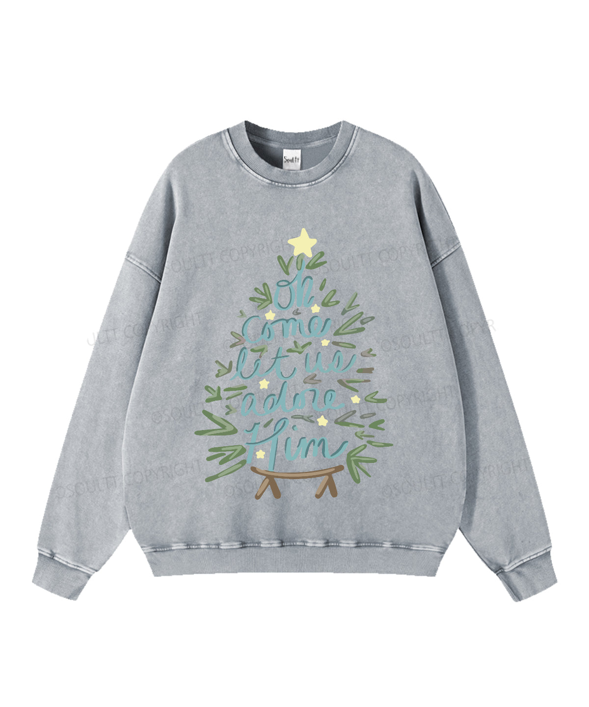 Oh Come Let Us Adore Him Washed Christian Sweatshirt