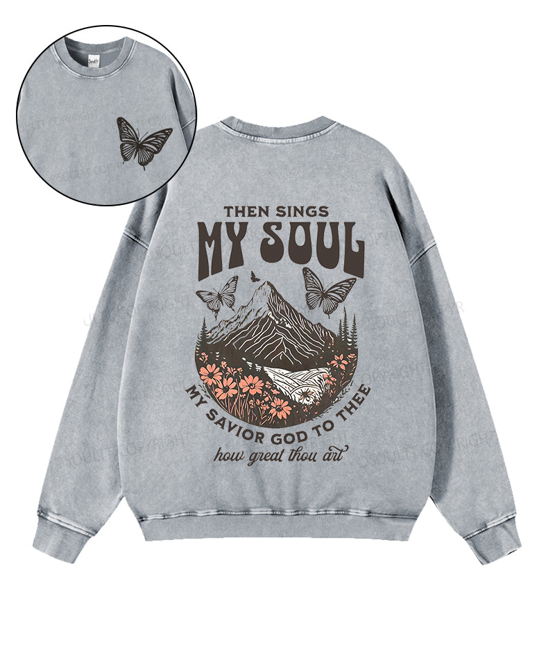 Then Sings My Soul Double Sided Washed Christian Sweatshirt