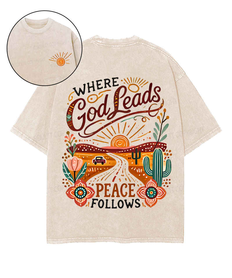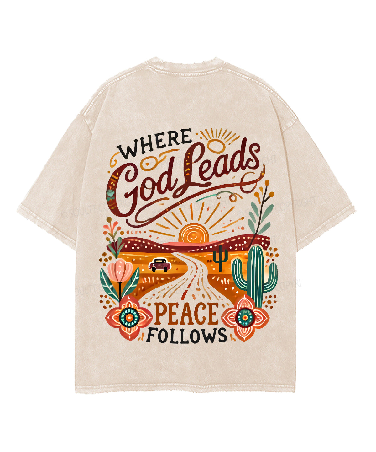 Where God Leads Peace Follows Double Sided Unisex Washed Christian T-shirt