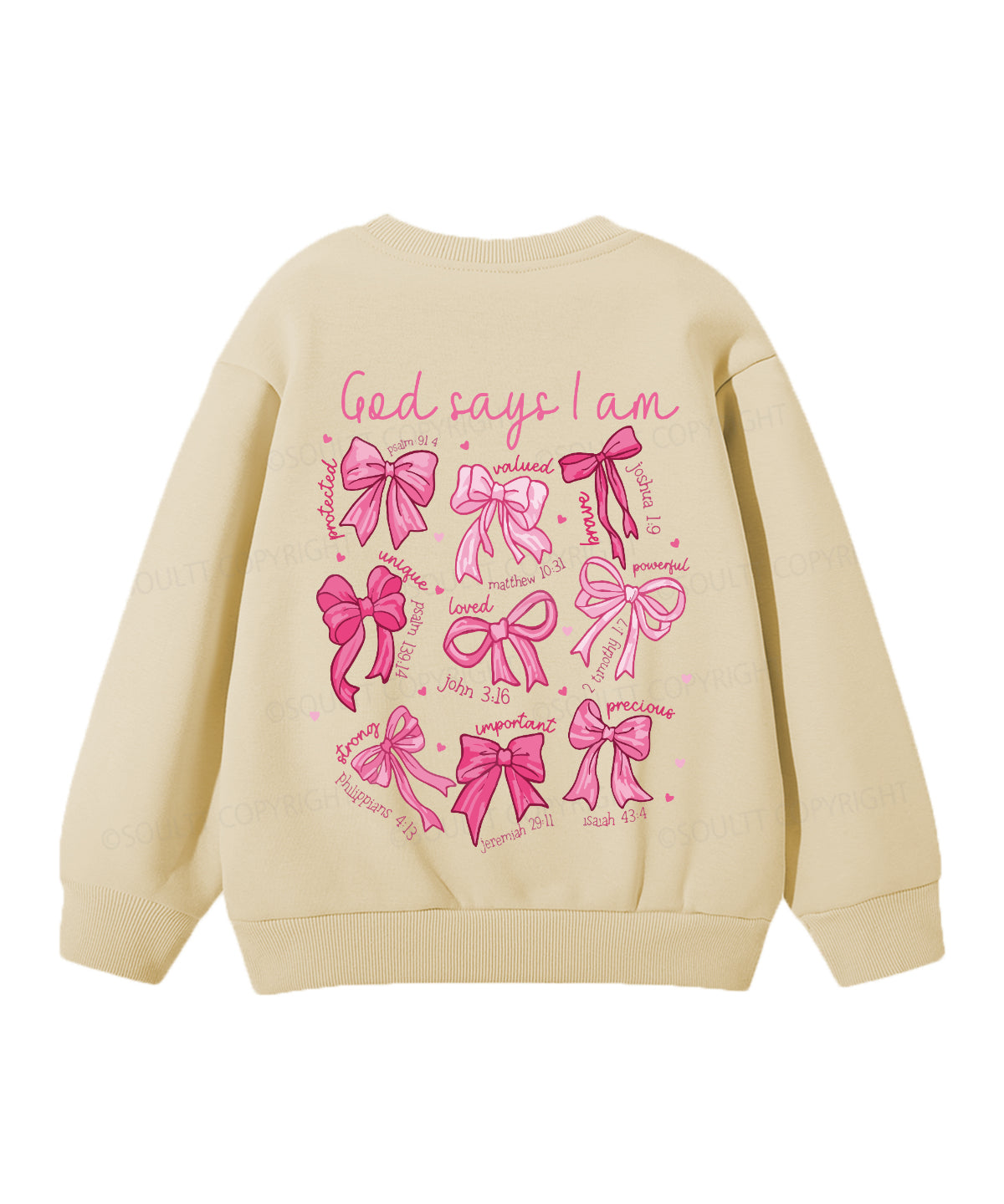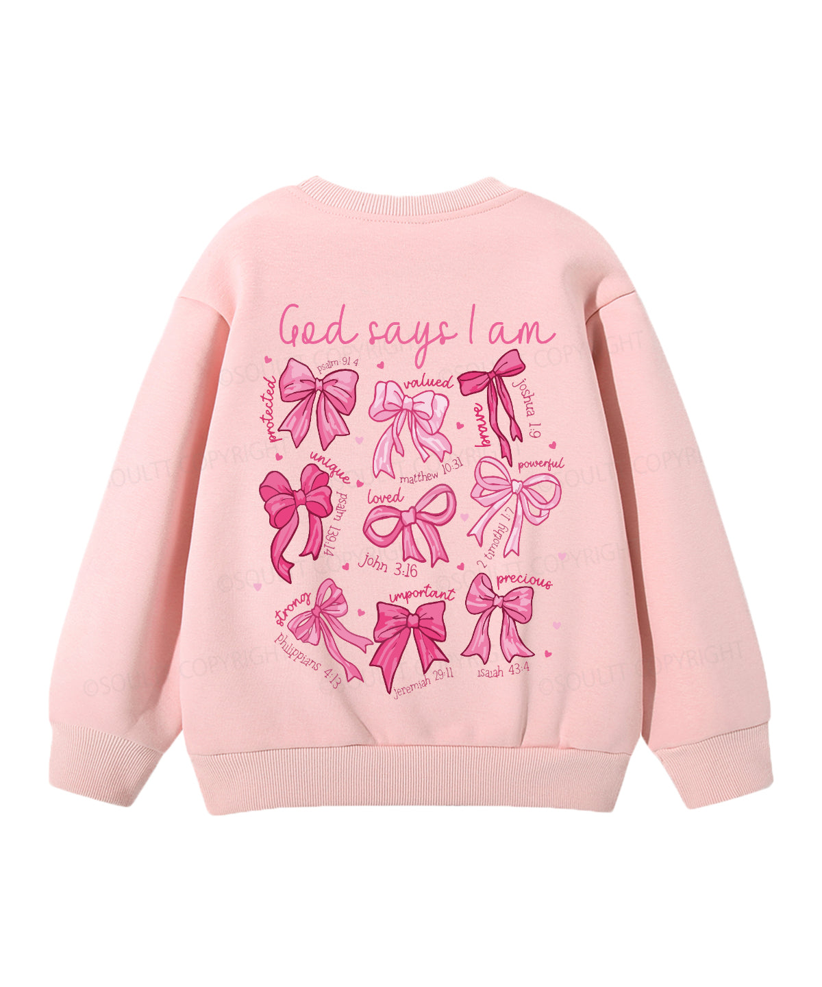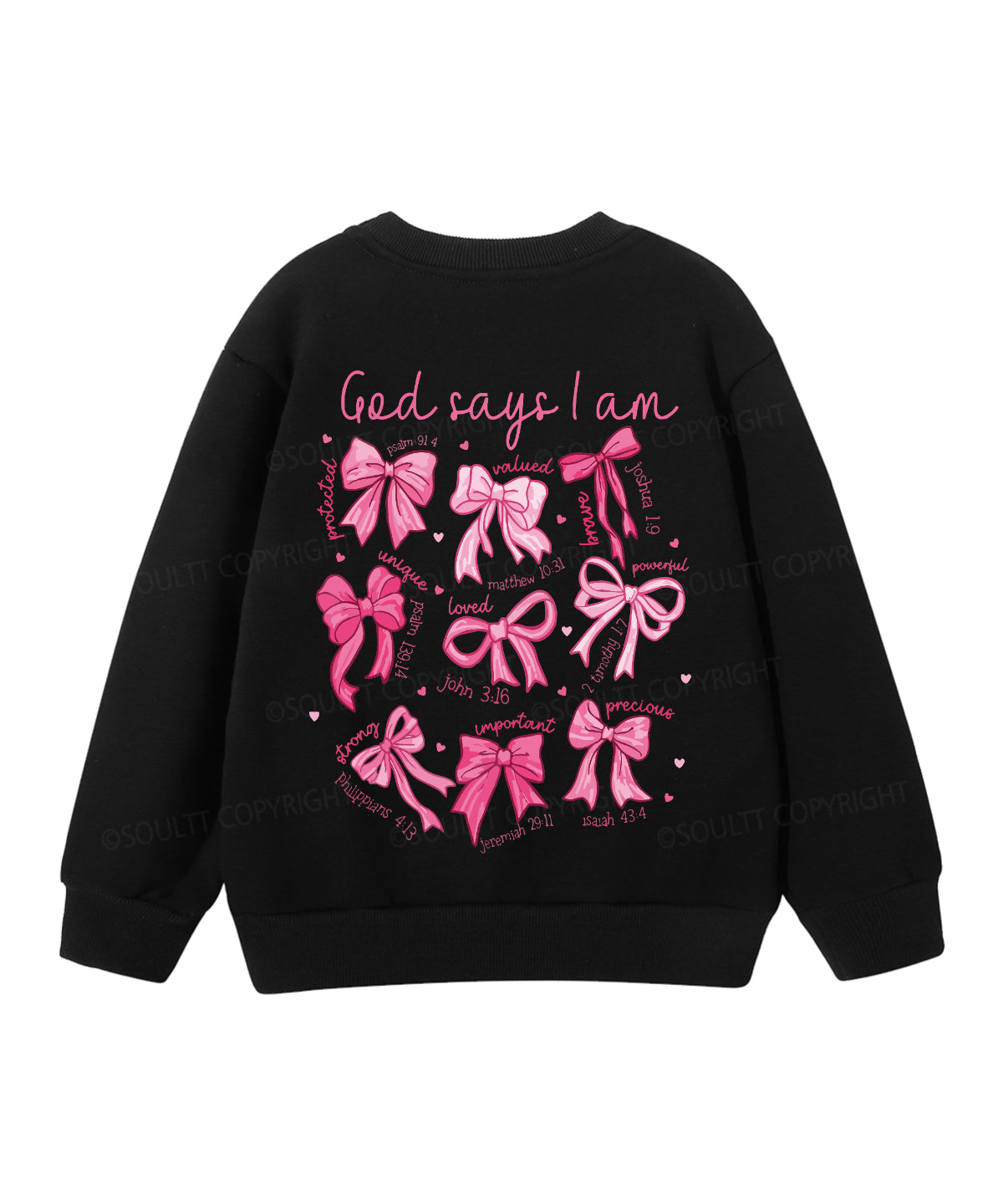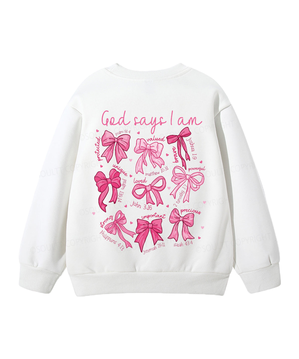 Kids God Says I Am Double Sided Christian Sweatshirt