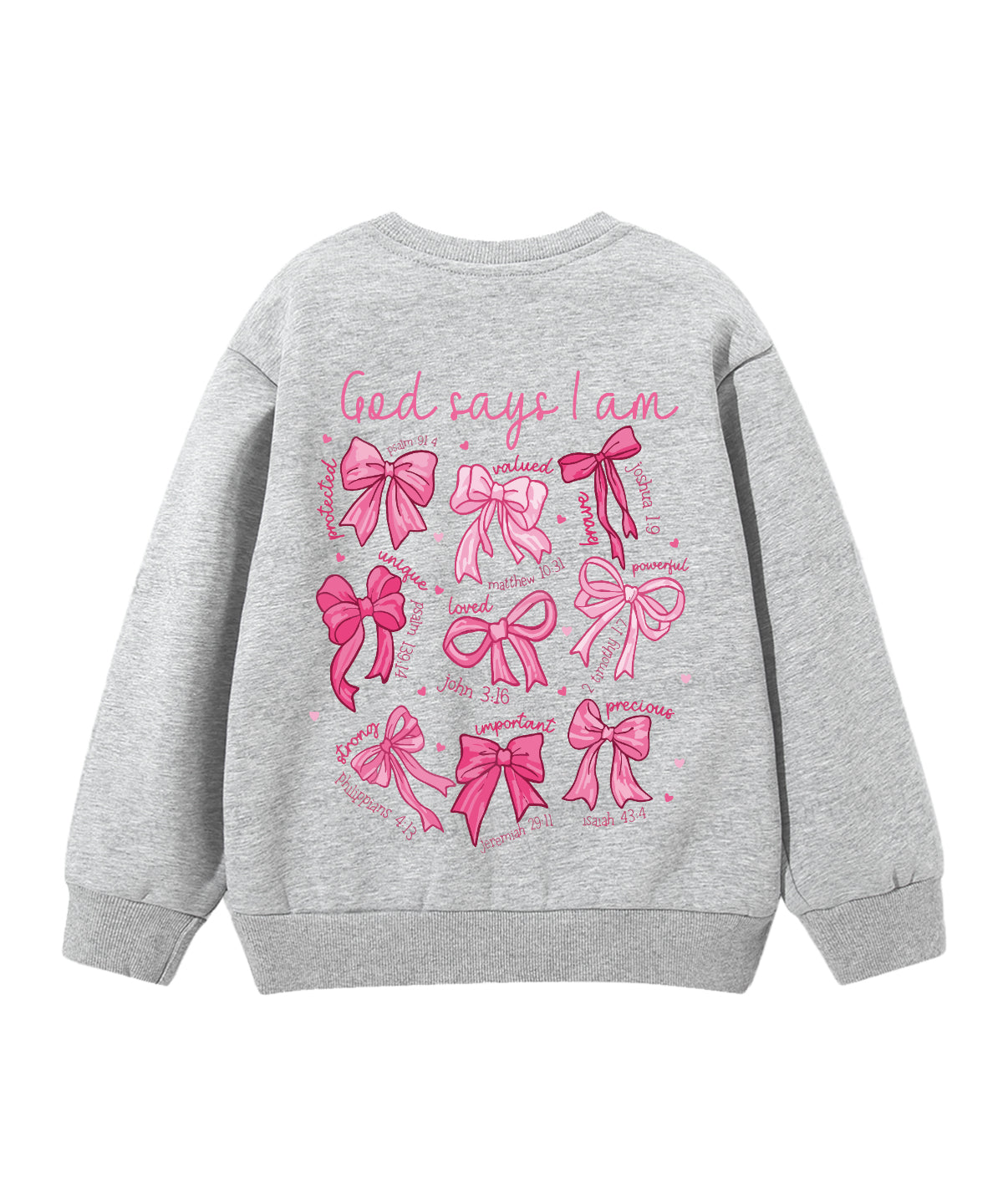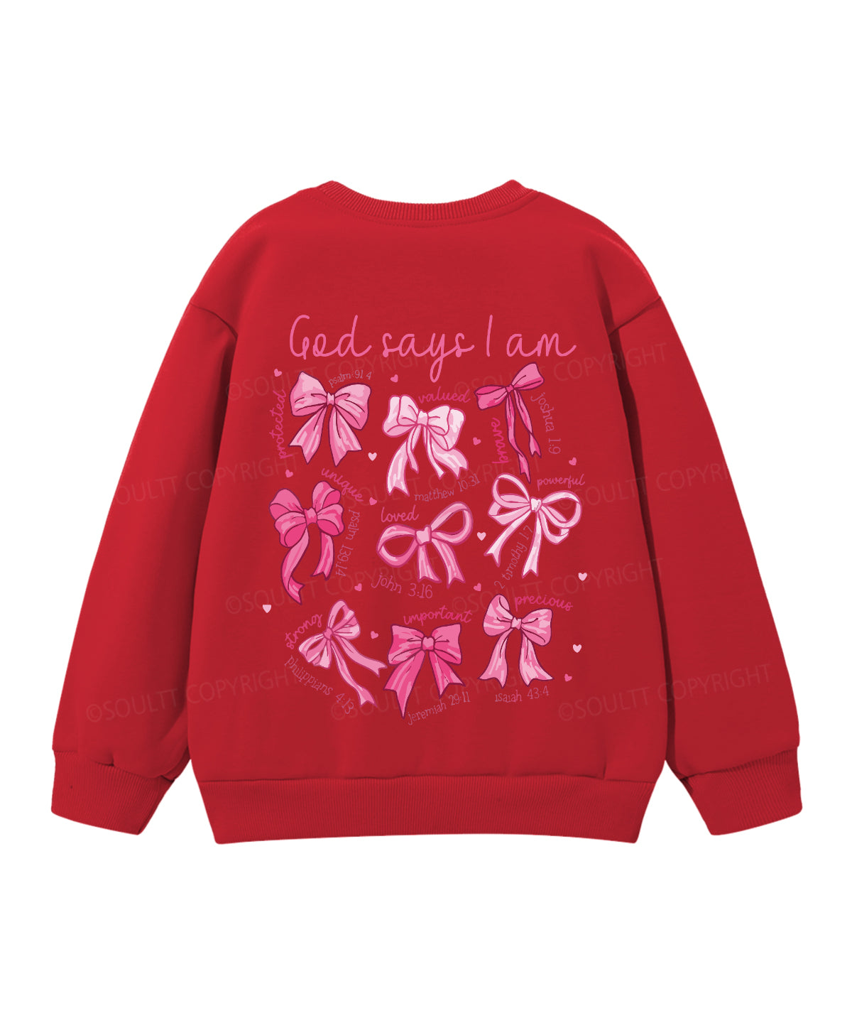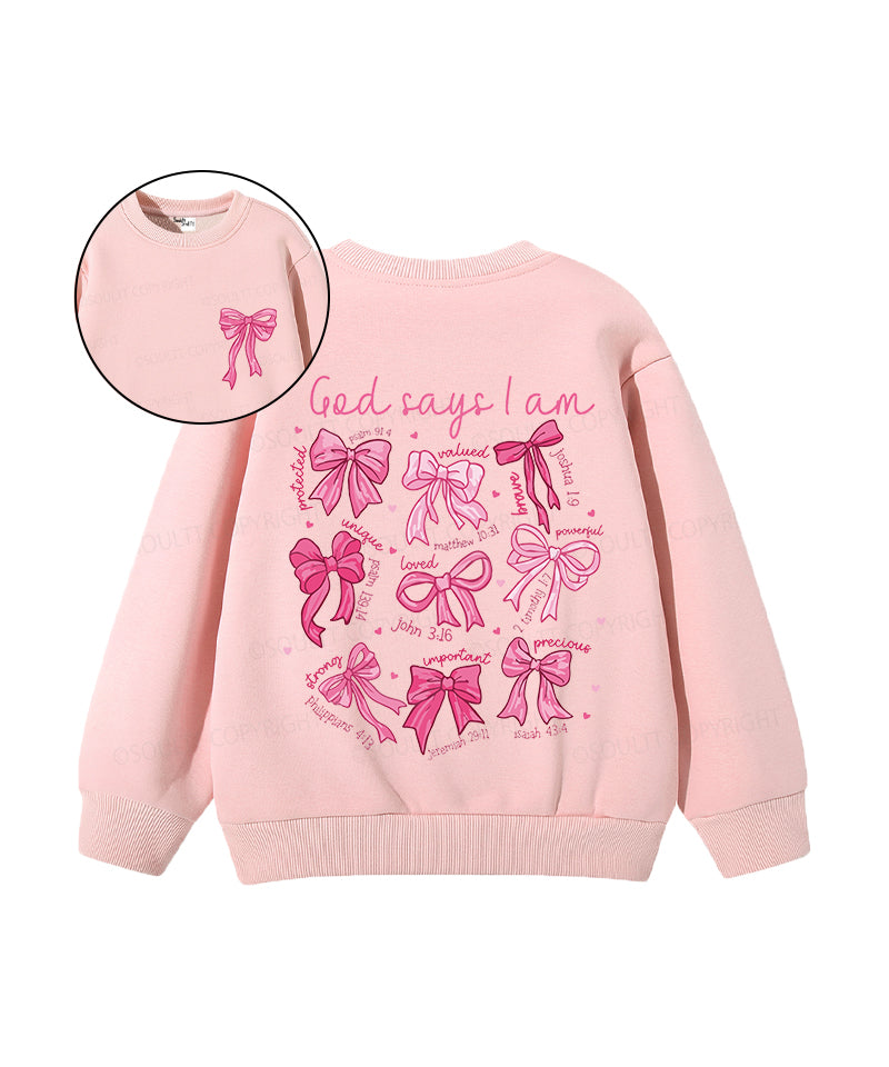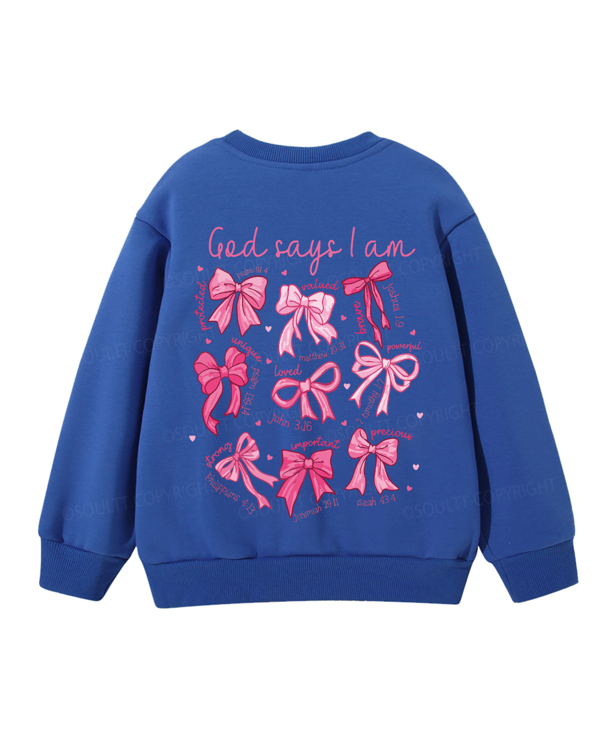 Kids God Says I Am Double Sided Christian Sweatshirt