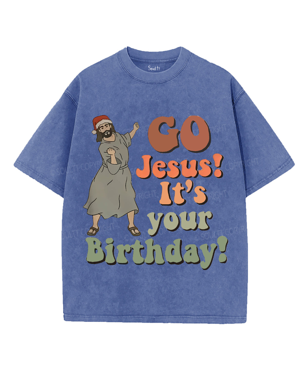 Go Jesus It's Your Birthday Unisex Washed Christian T-shirt