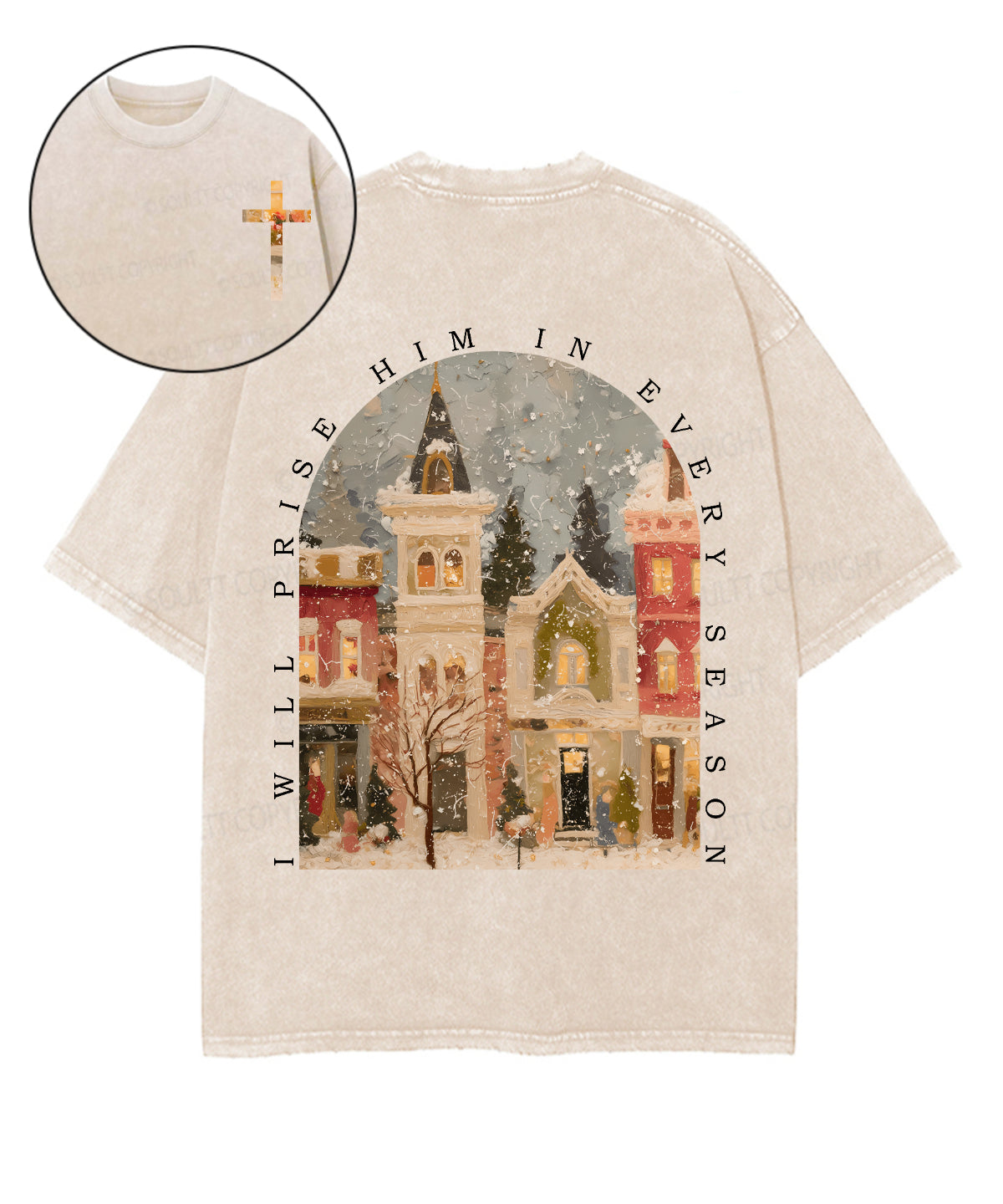 I Will Prise Him In Every Season Double Sided Unisex Washed Christian T-shirt