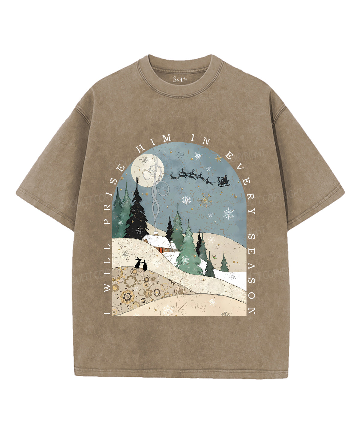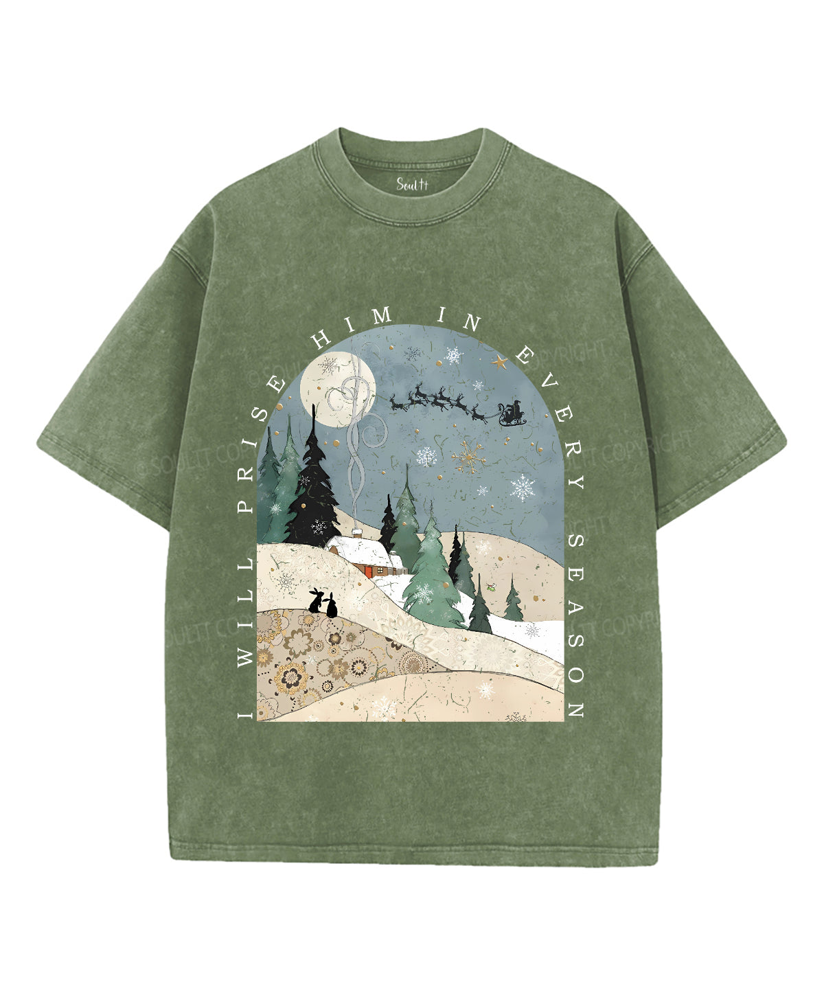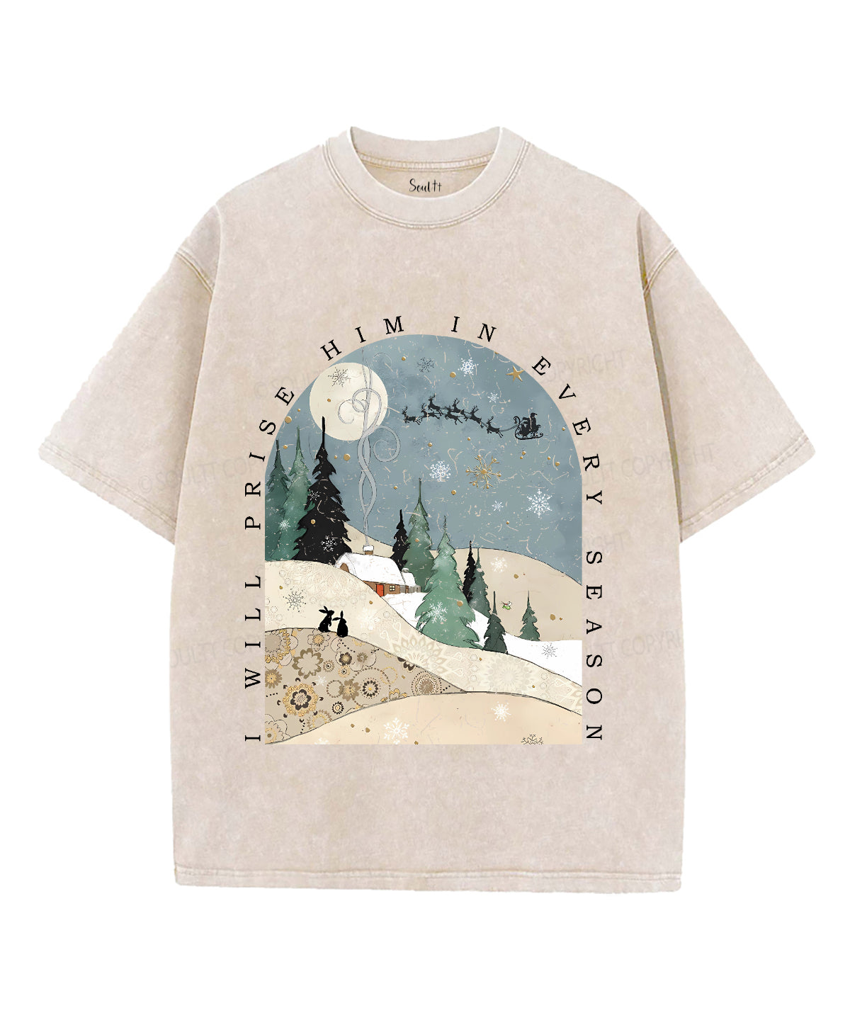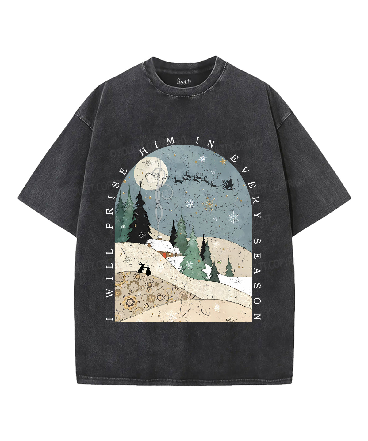 I Will Prise Him In Every Season Unisex Washed Christian T-shirt