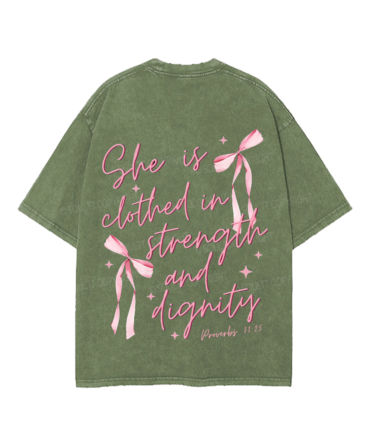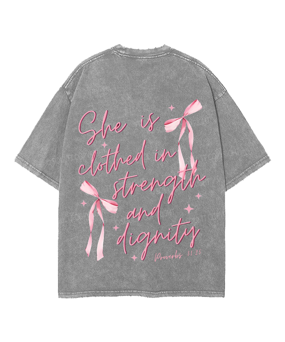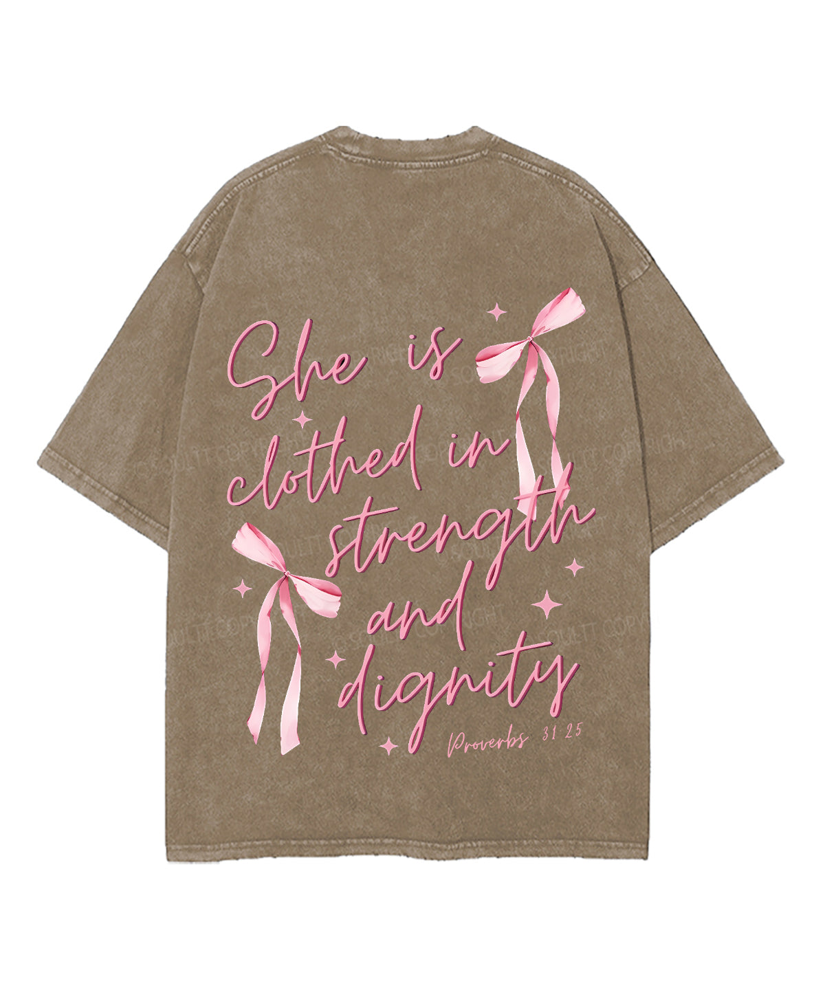 She Is Clothed With Strength And Dignity Double Sided Unisex Washed Christian T-shirt