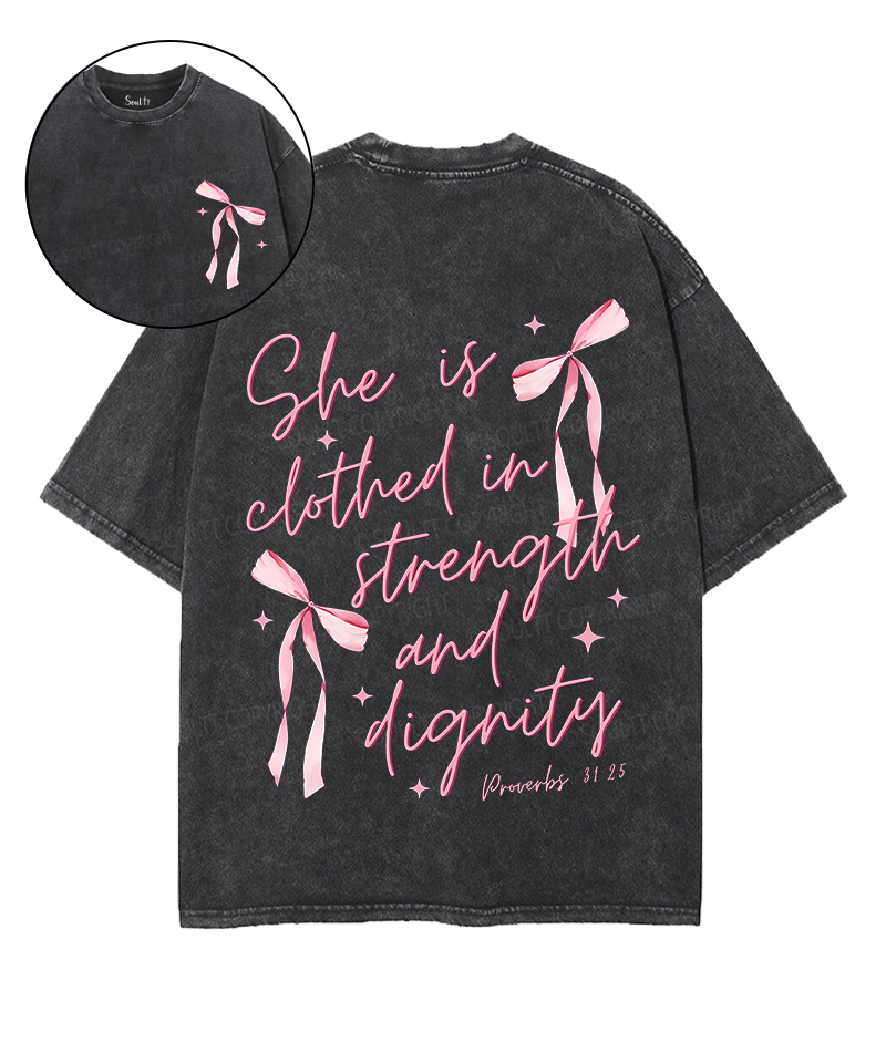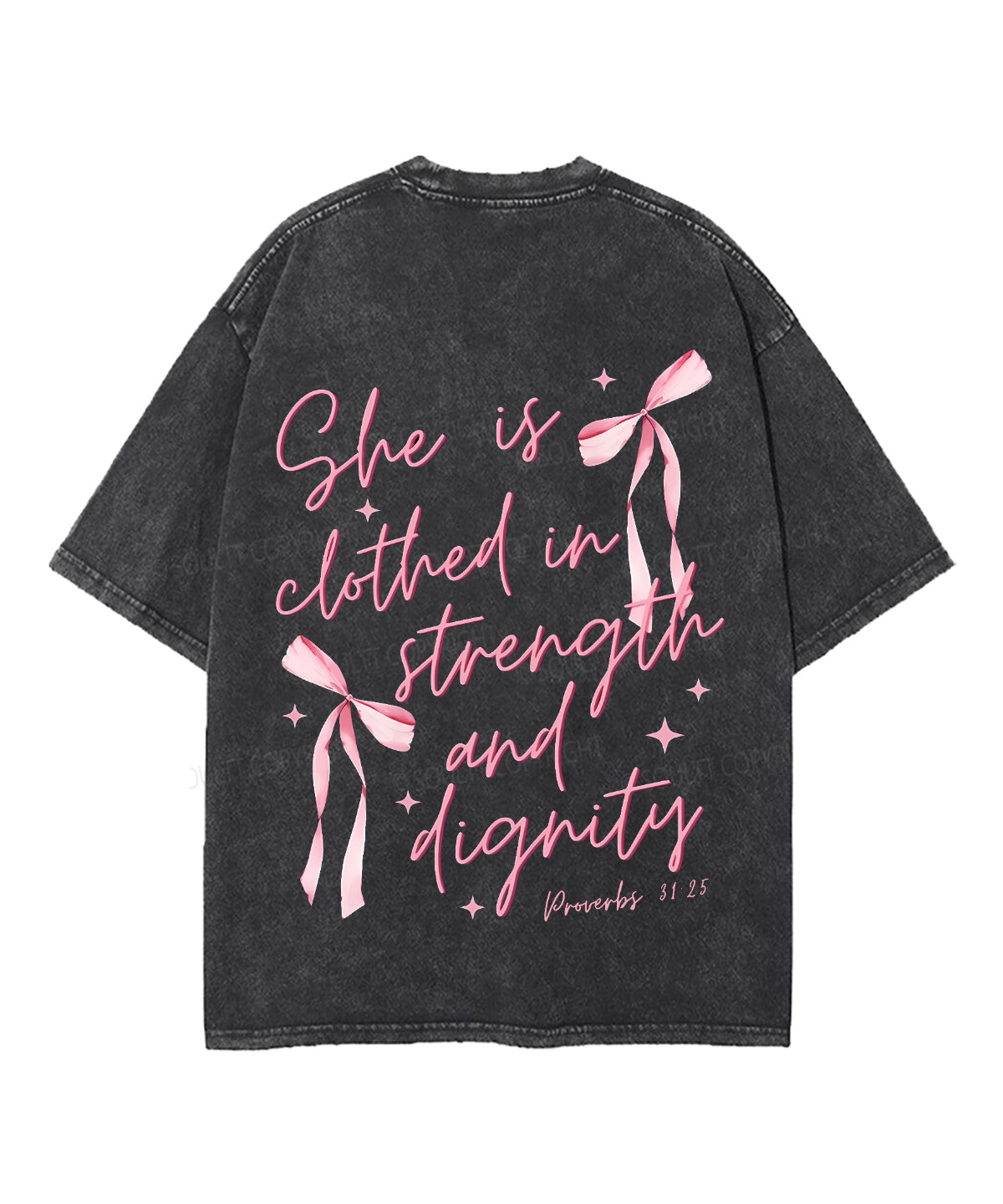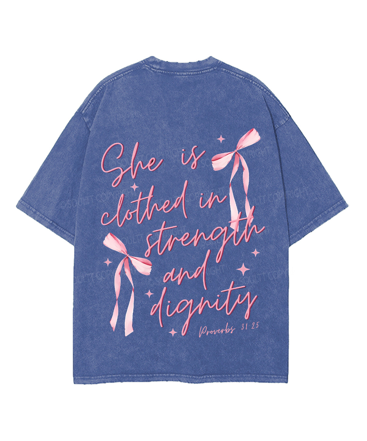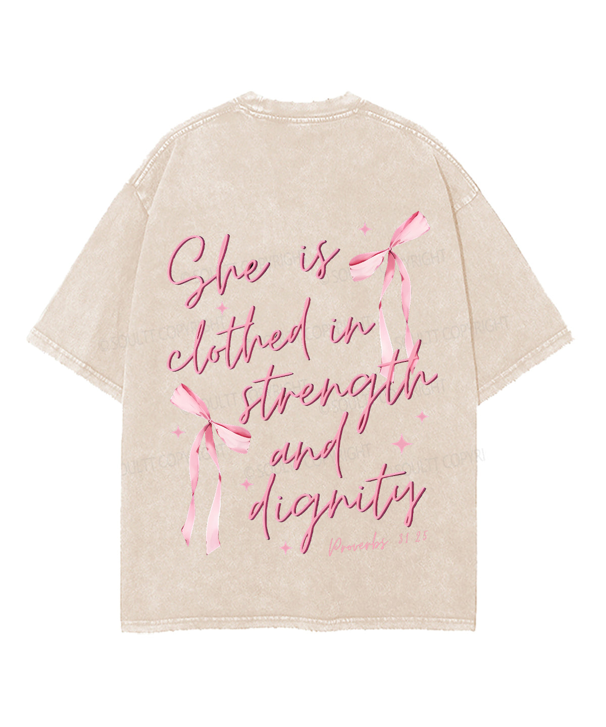 She Is Clothed With Strength And Dignity Double Sided Unisex Washed Christian T-shirt