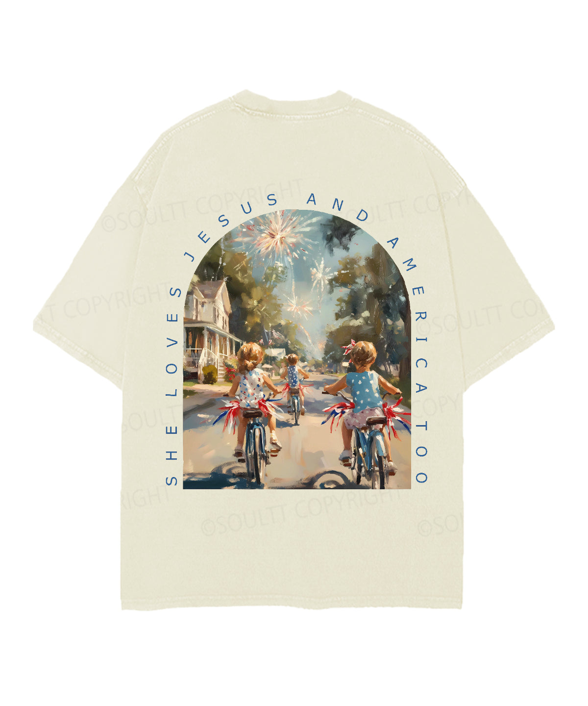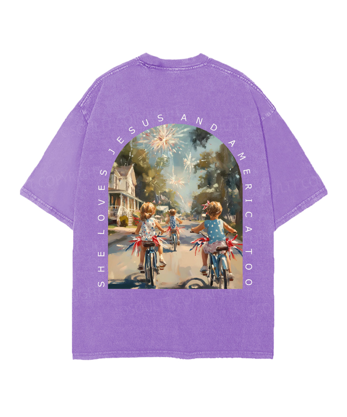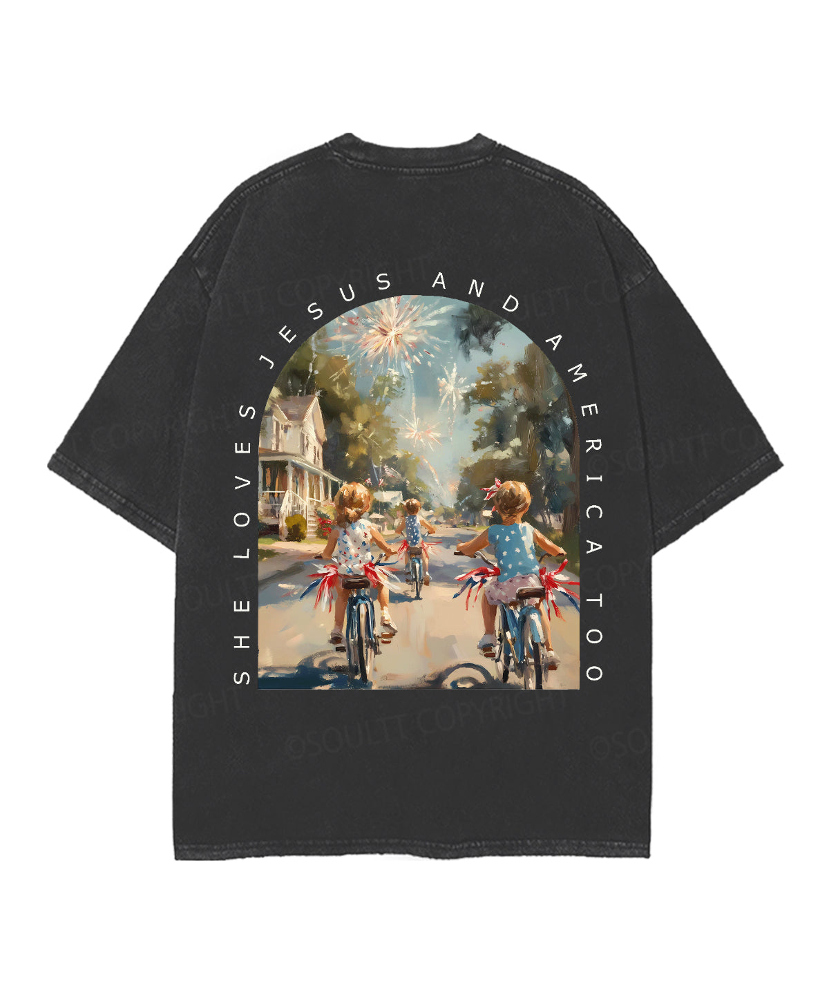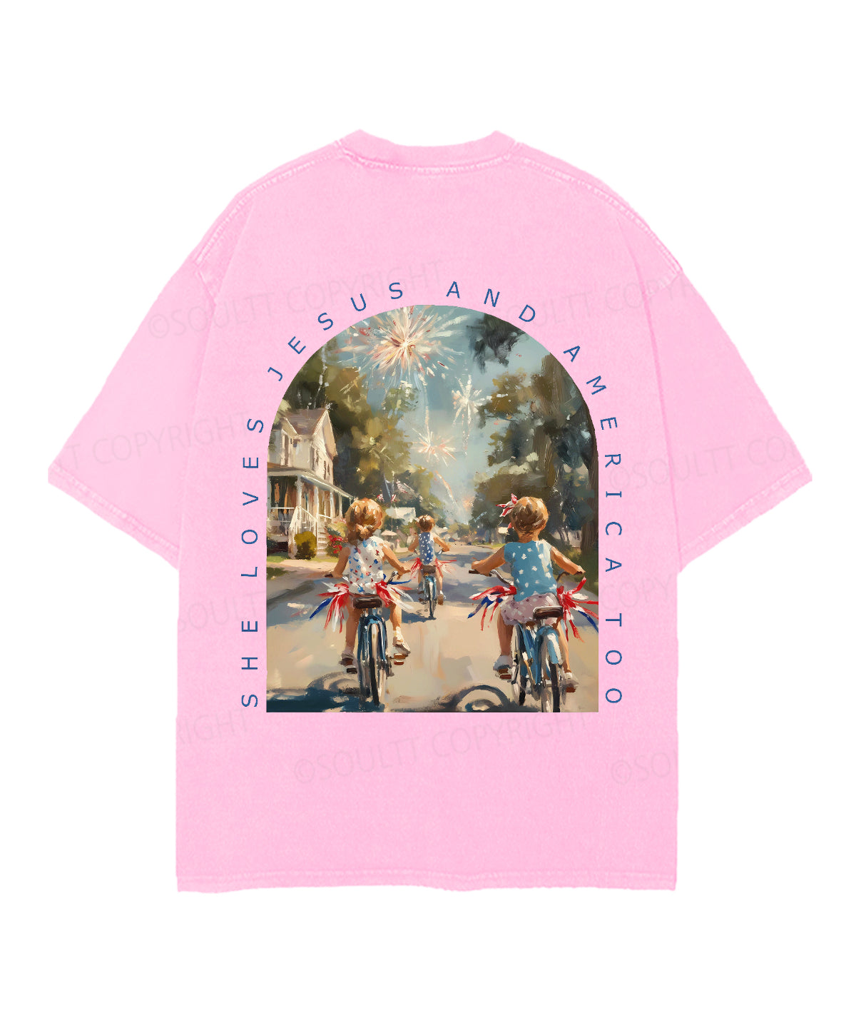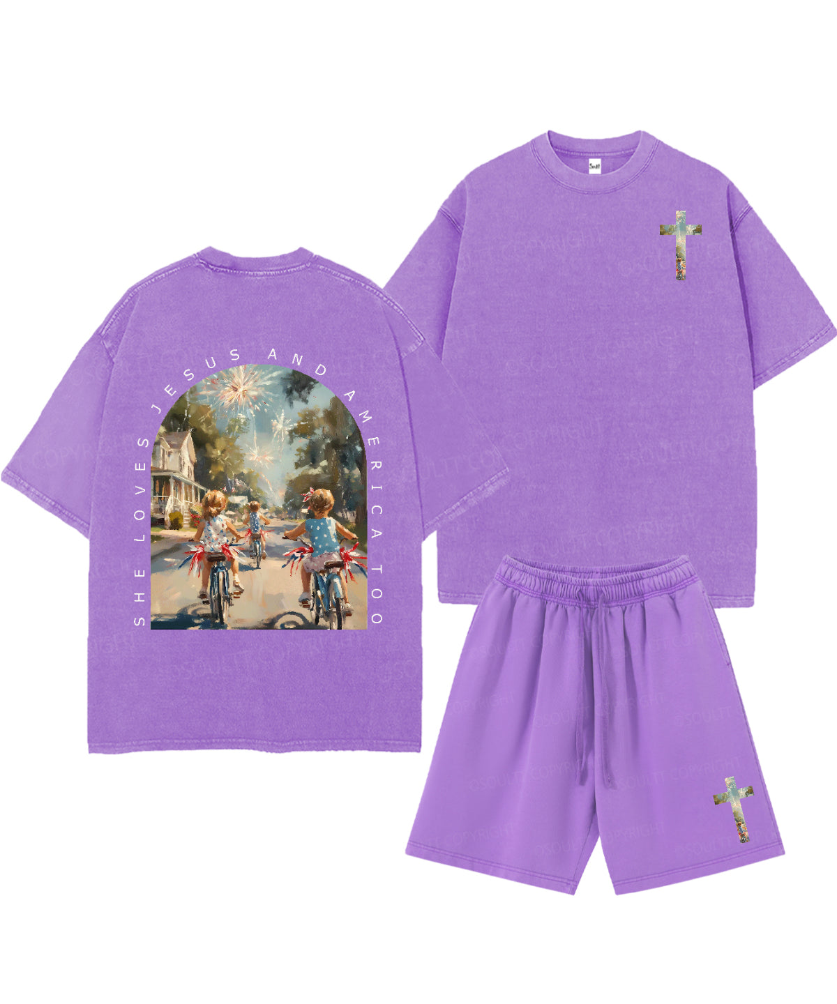 She Loves Jesus And America Too Double Sided Unisex Christian Washed T-Shirt & Shorts