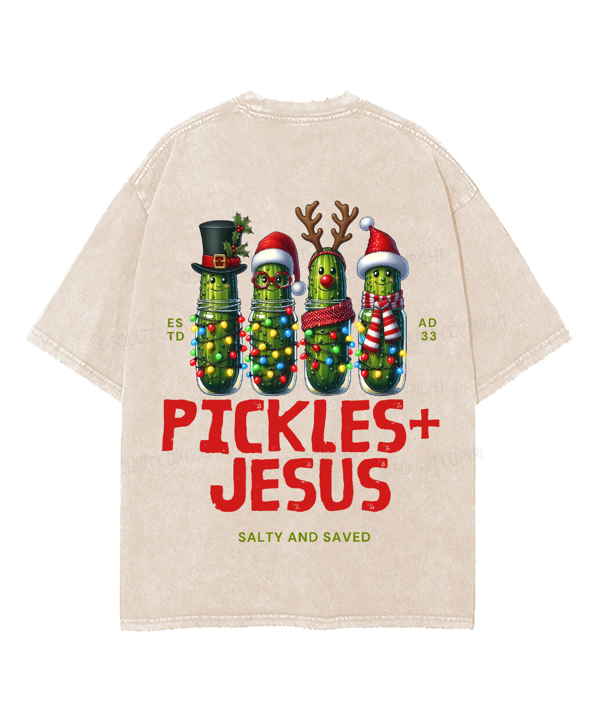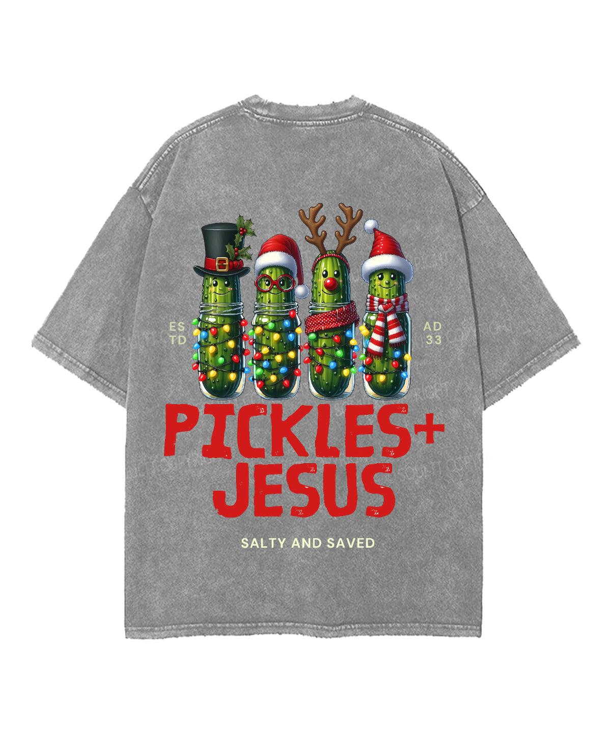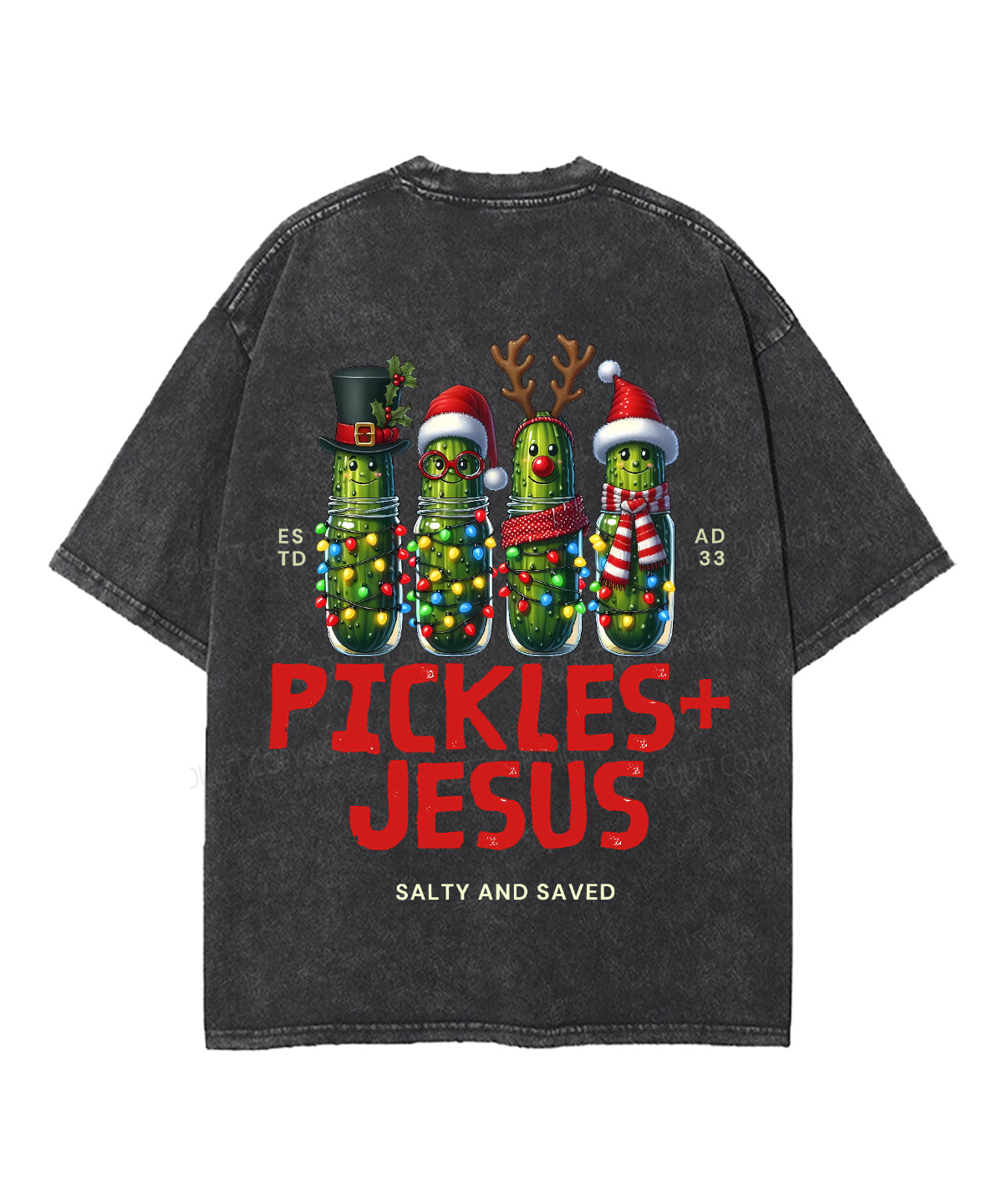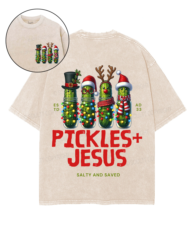 Christmas Pickles And Jesus Double Sided Unisex Washed Christian T-shirt