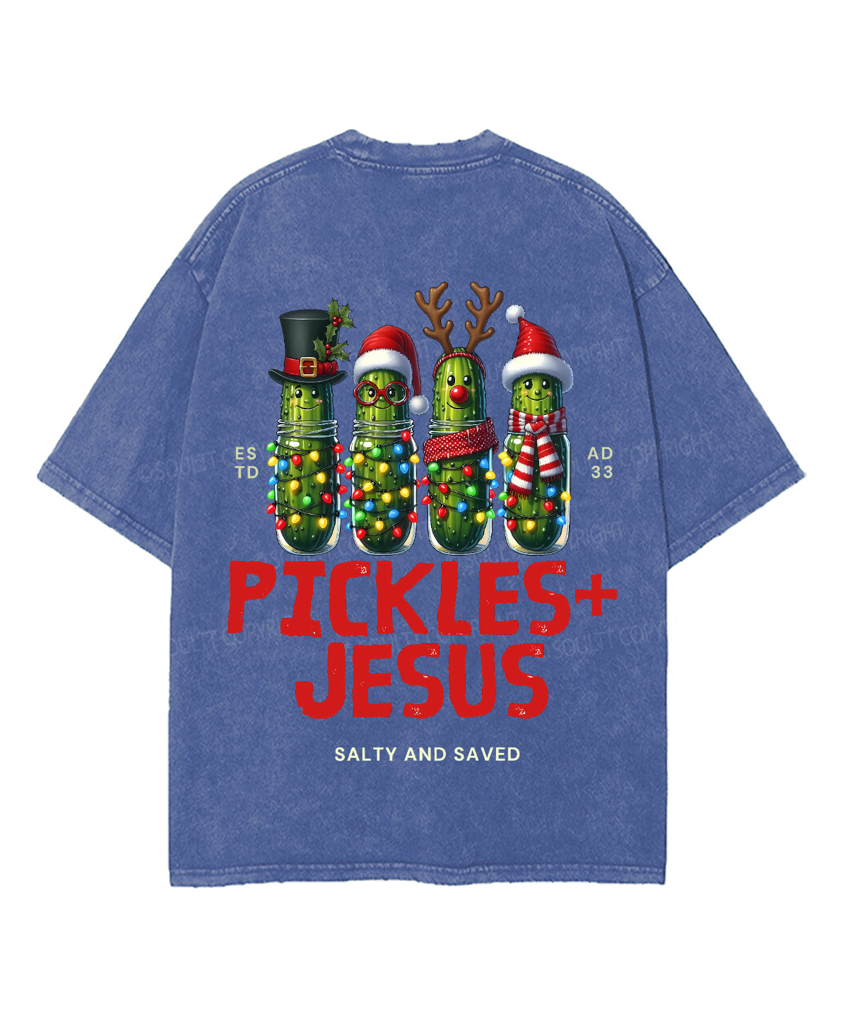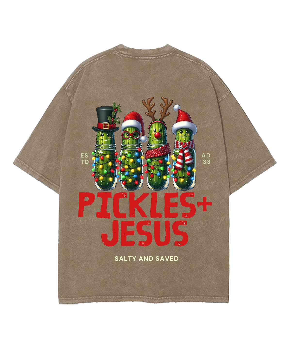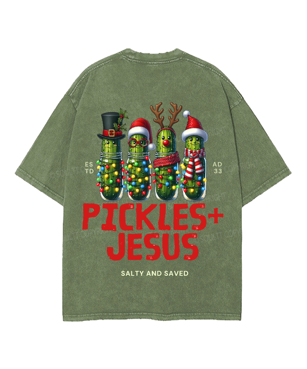 Christmas Pickles And Jesus Double Sided Unisex Washed Christian T-shirt
