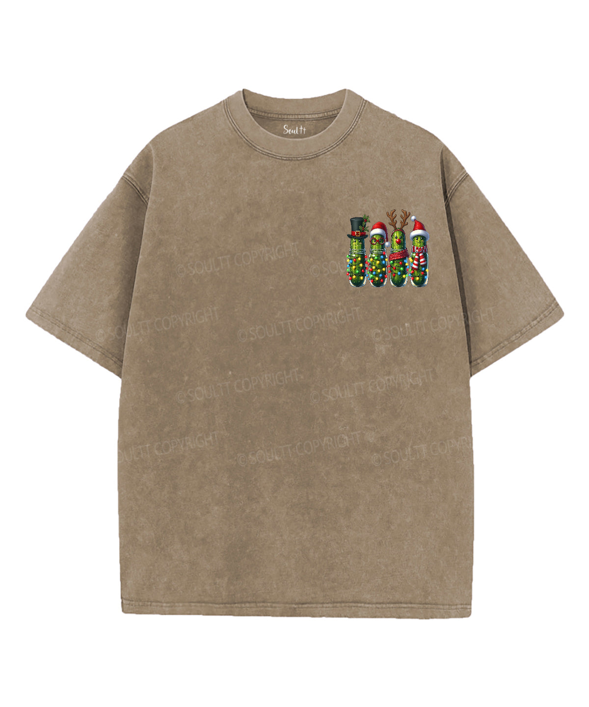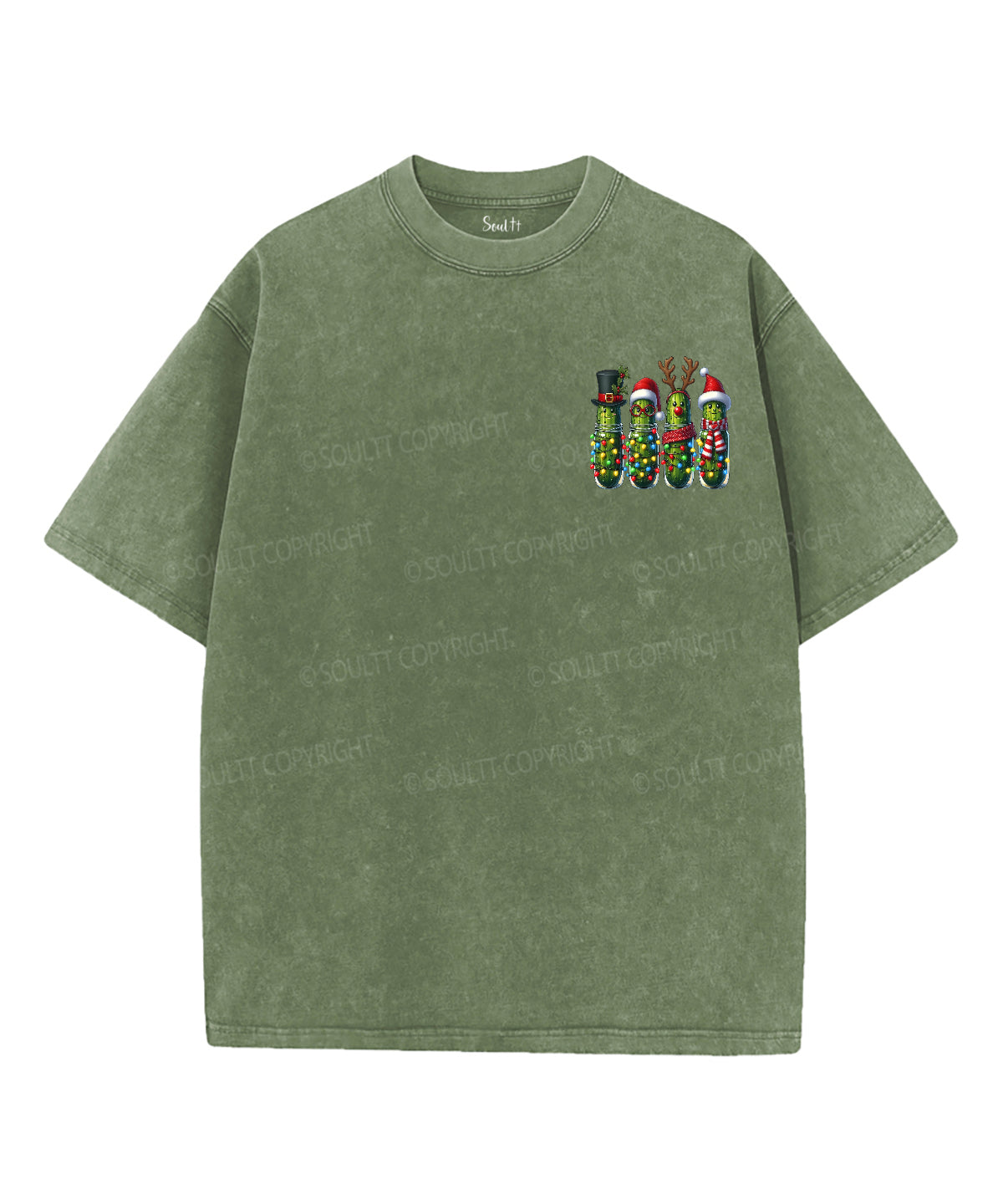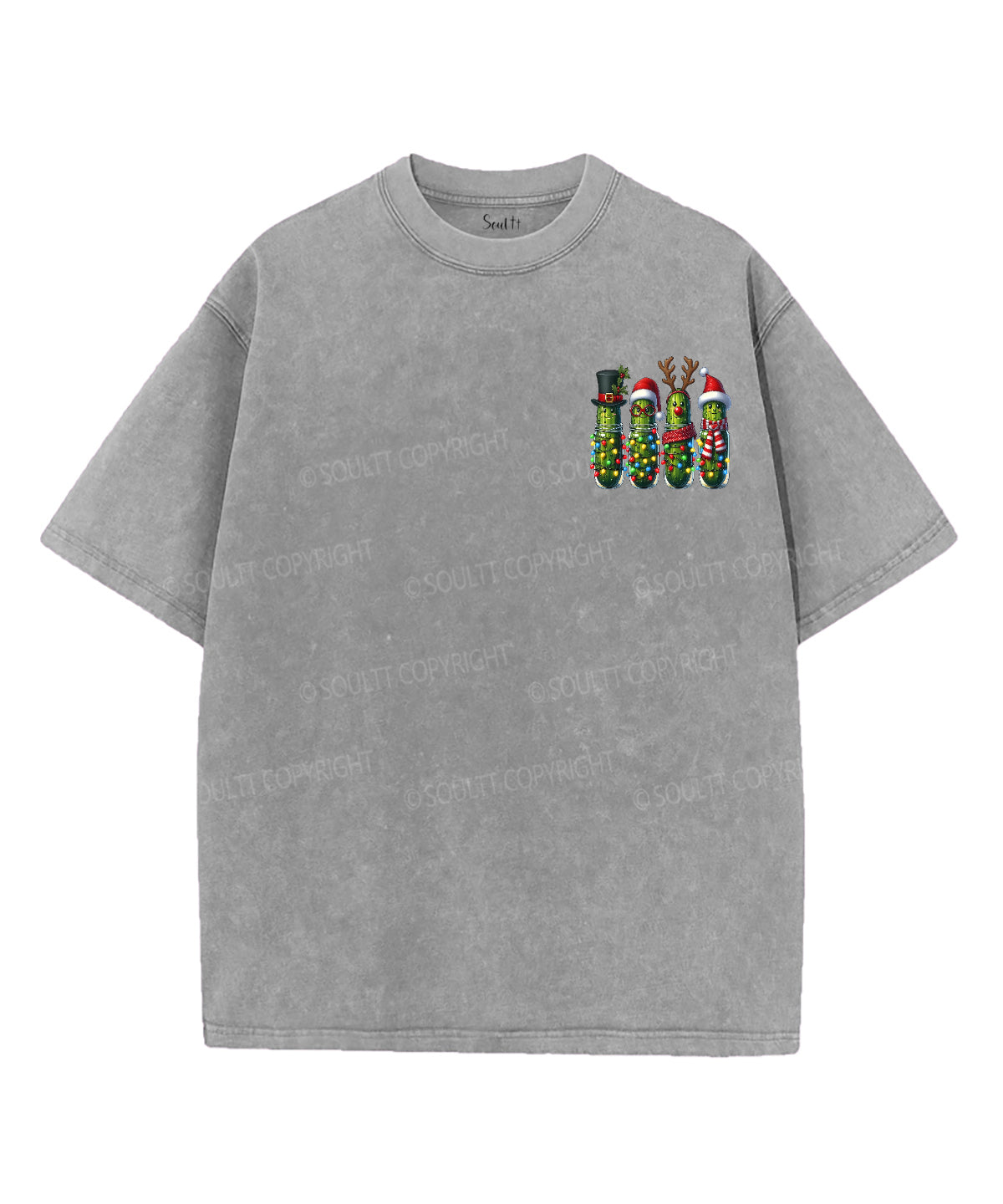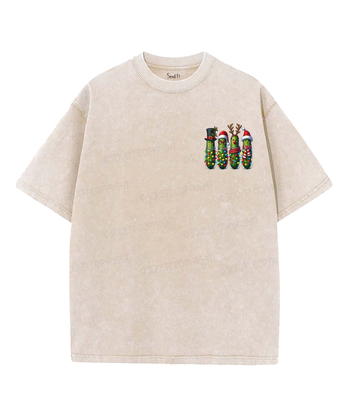 Christmas Pickles And Jesus Double Sided Unisex Washed Christian T-shirt