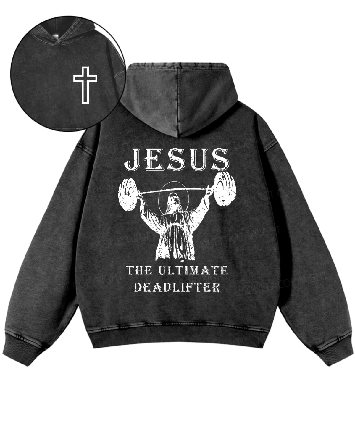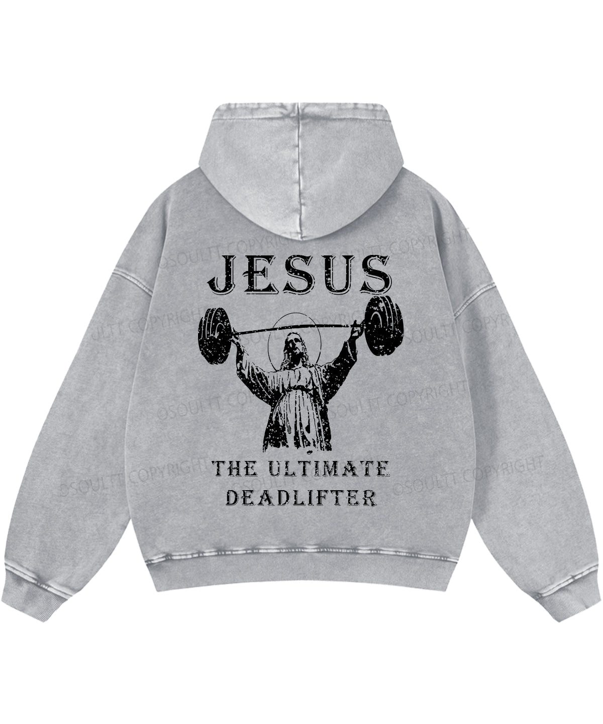 Jesus The Ultimate Deadlifter Double Sided Washed Christian Hoodie
