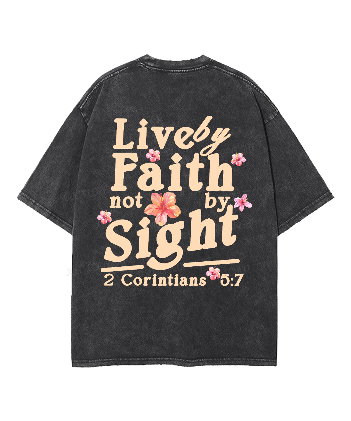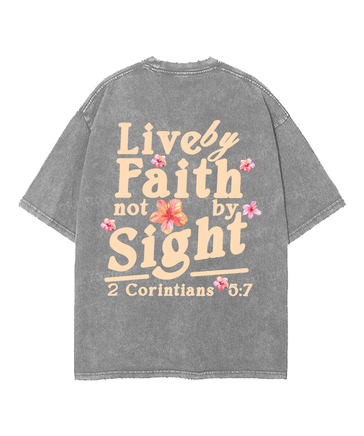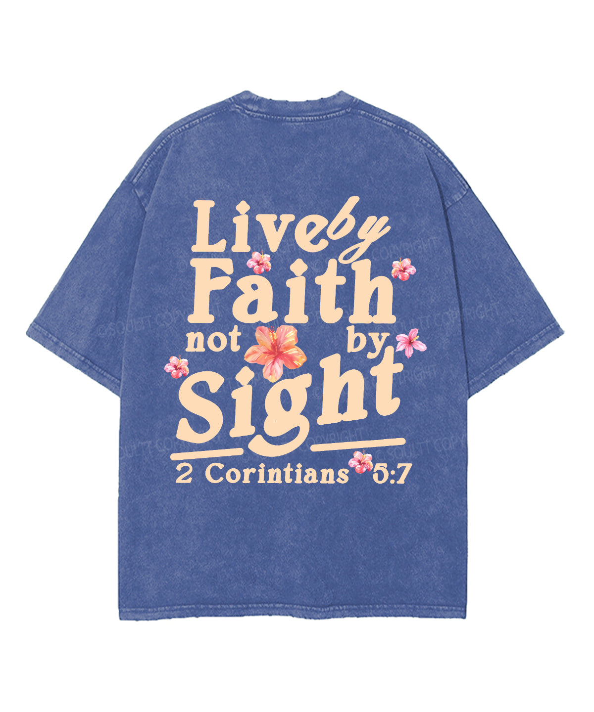 Live By Faith Not By Sight Double Sided Unisex Washed Christian T-shirt