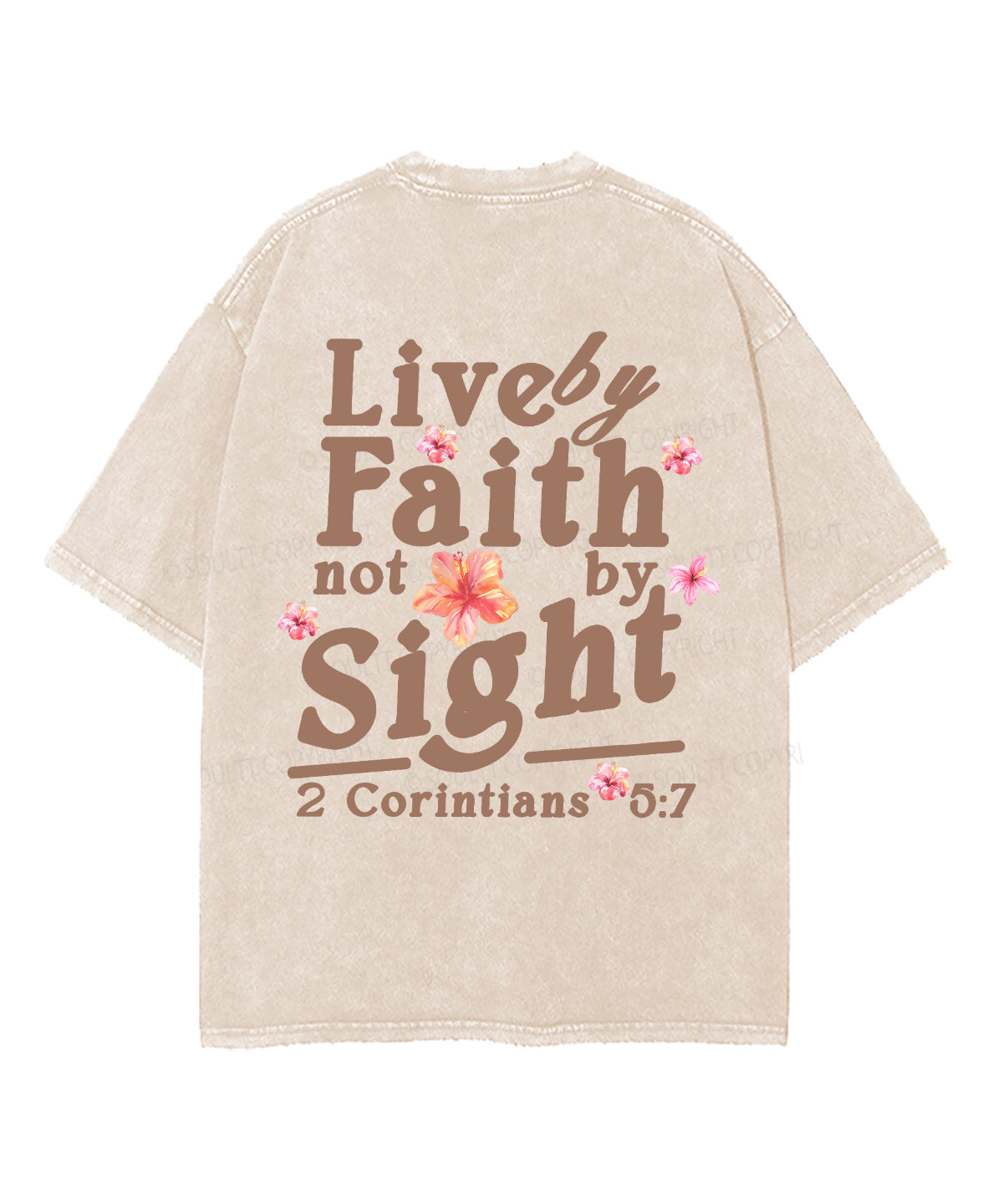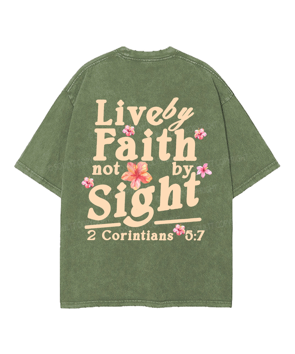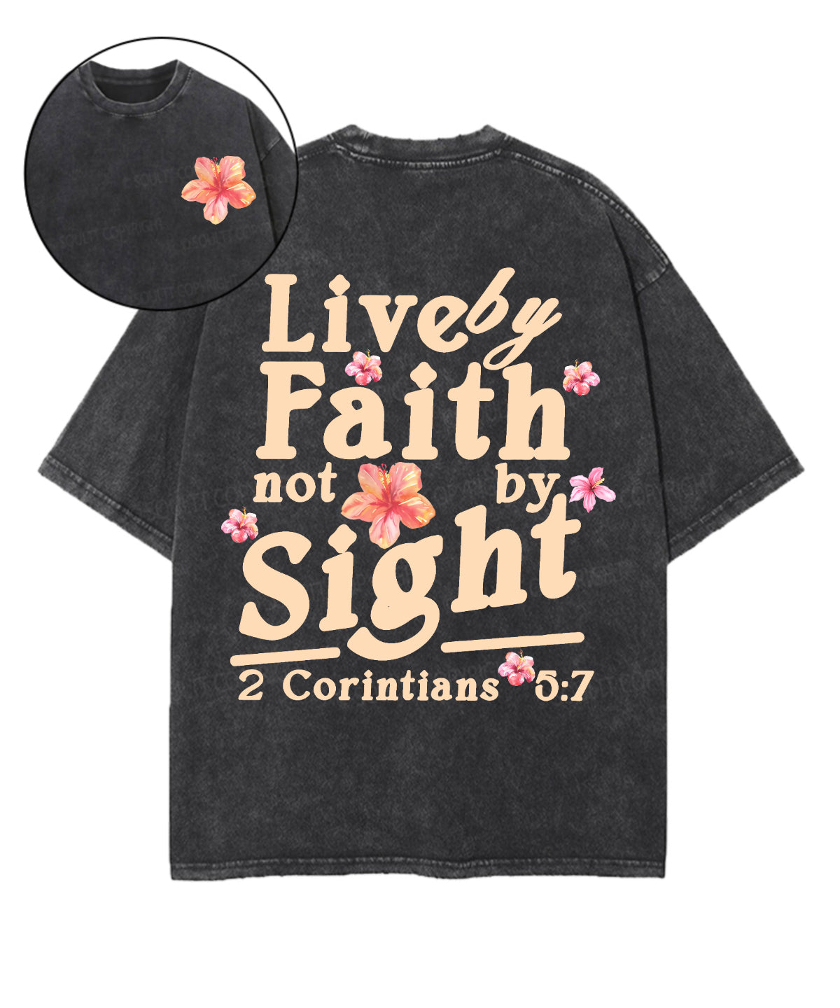 Live By Faith Not By Sight Double Sided Unisex Washed Christian T-shirt
