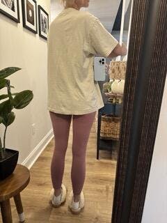 Absolutely love these t-shirts! For reference, I’m 5'9", 145 lbs, a size 6 dress, and a 34C bra. I now own eight shirts from this company, and they are a 10/10 recommendation from me! A note on sizing: if you’re between sizes, definitely go with the smaller one. I first ordered mediums because I wanted it to be slightly oversized, but it ended up being very oversized. I reordered several in a size small in different designs, and the small still fits comfortably loose. The cream shirt is a size medium. The black shirt is a size small.