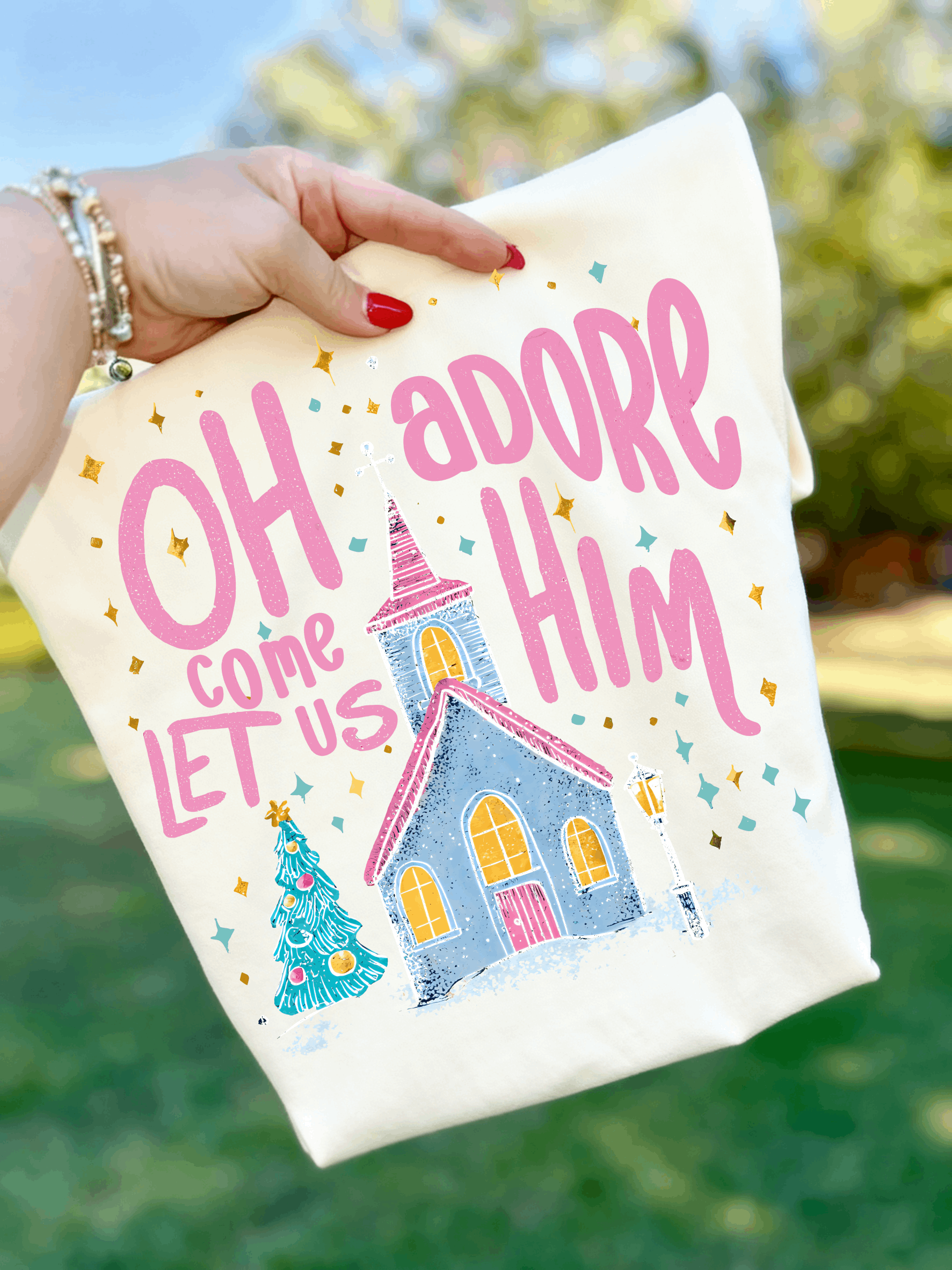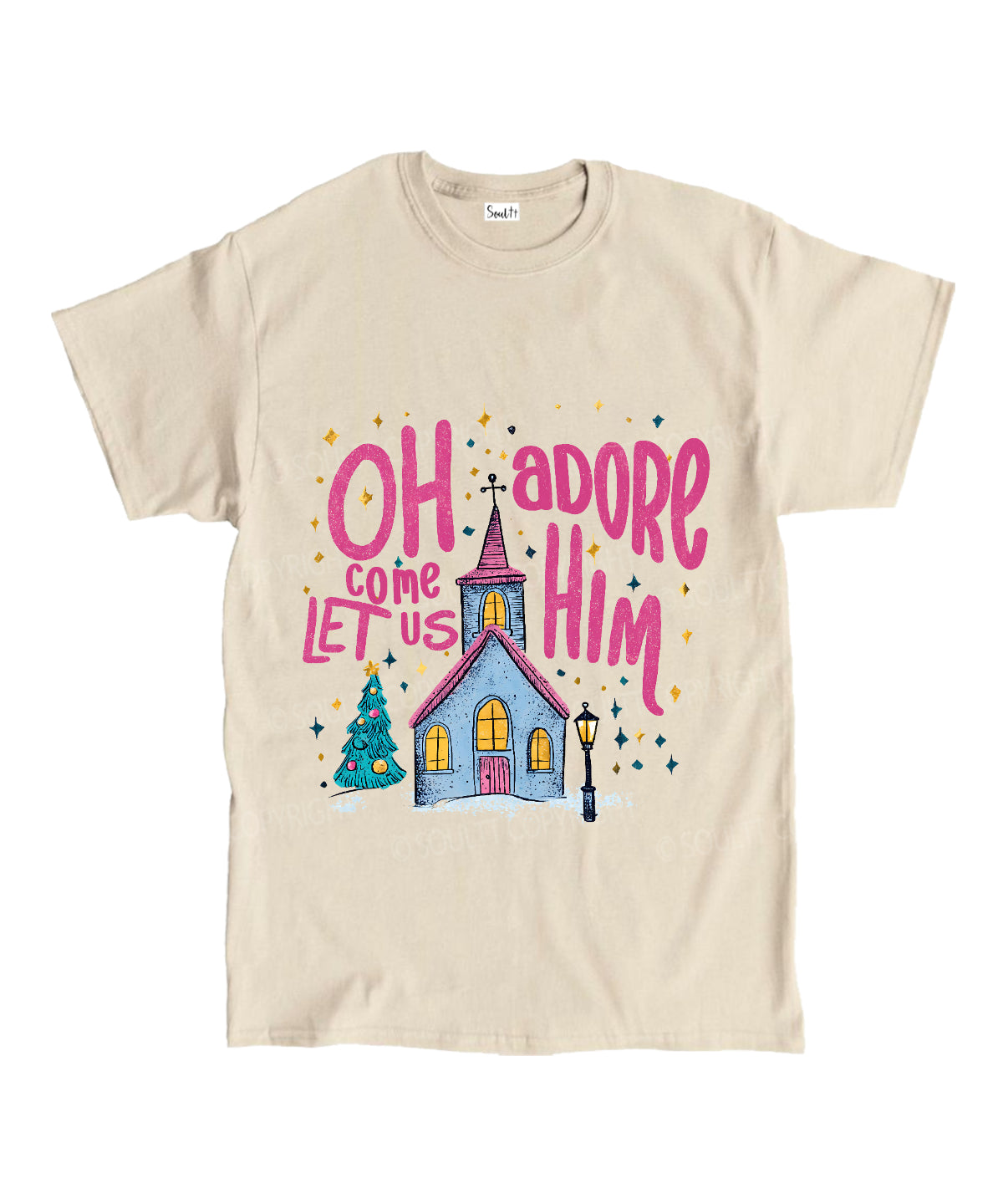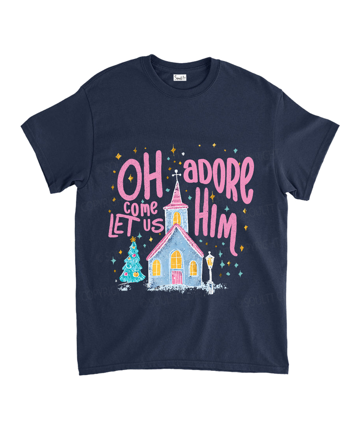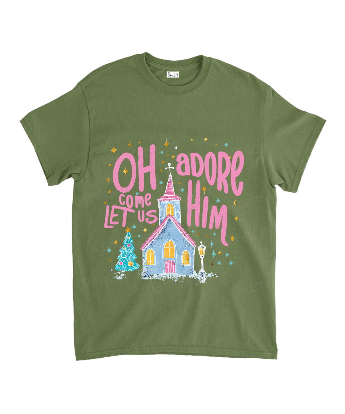 Oh Come Let Us Adore Him Unisex Cotton Christian T-Shirt