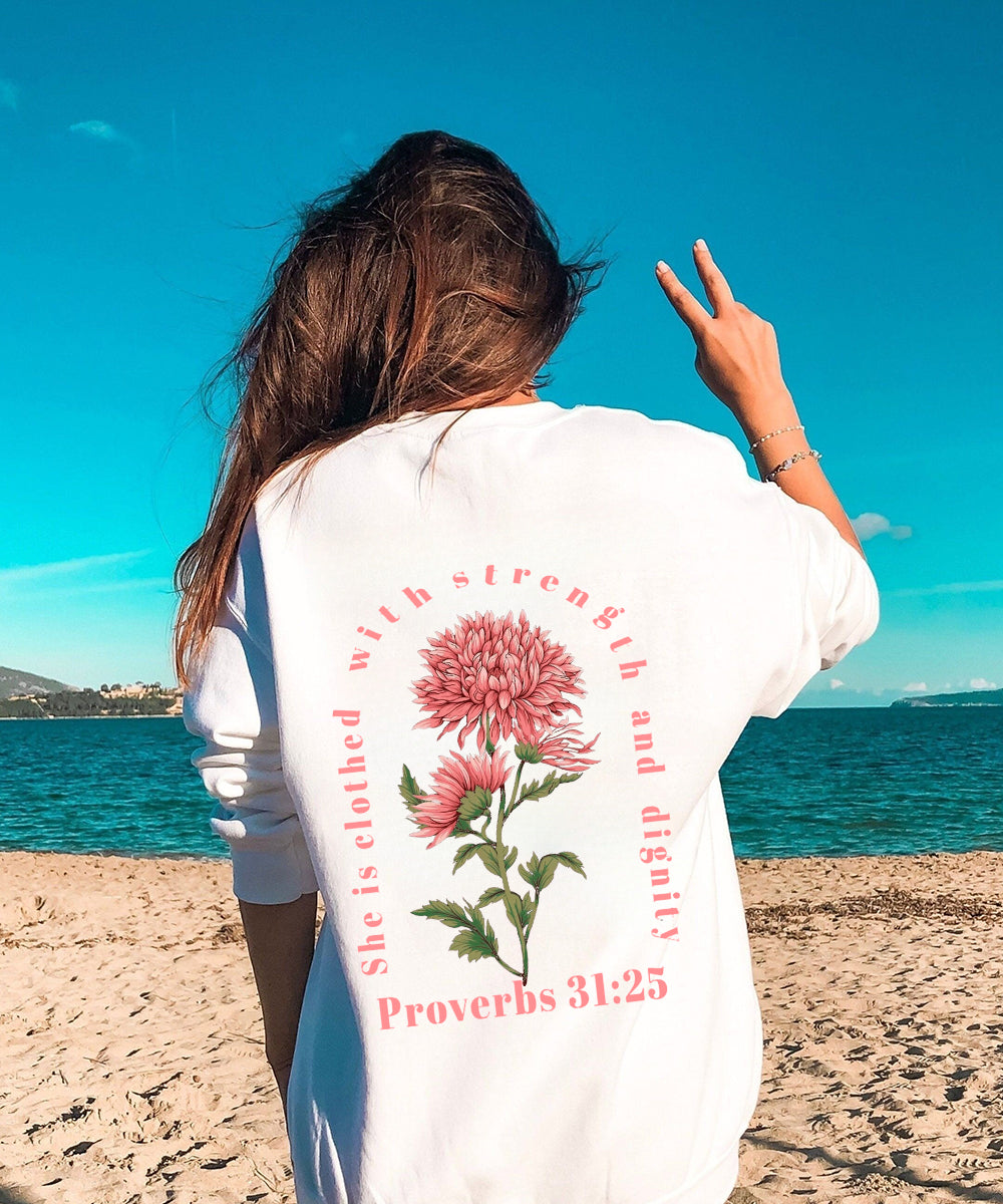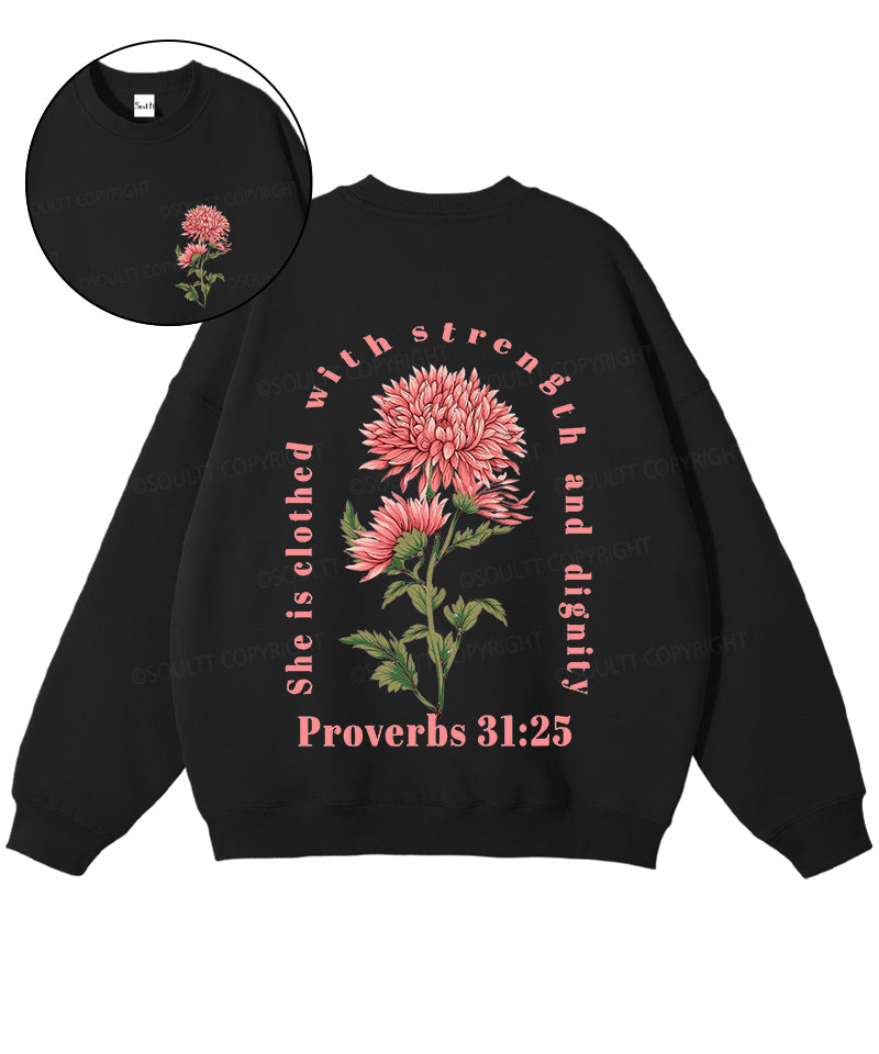 She Is Clothed With Strength Double Sided Christian Sweatshirt