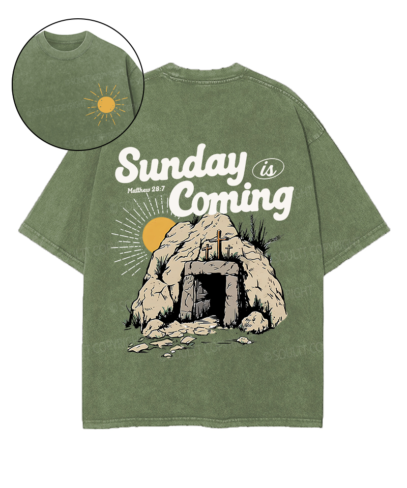 Sunday is Coming Double Sided Unisex Washed Christian T-shirt