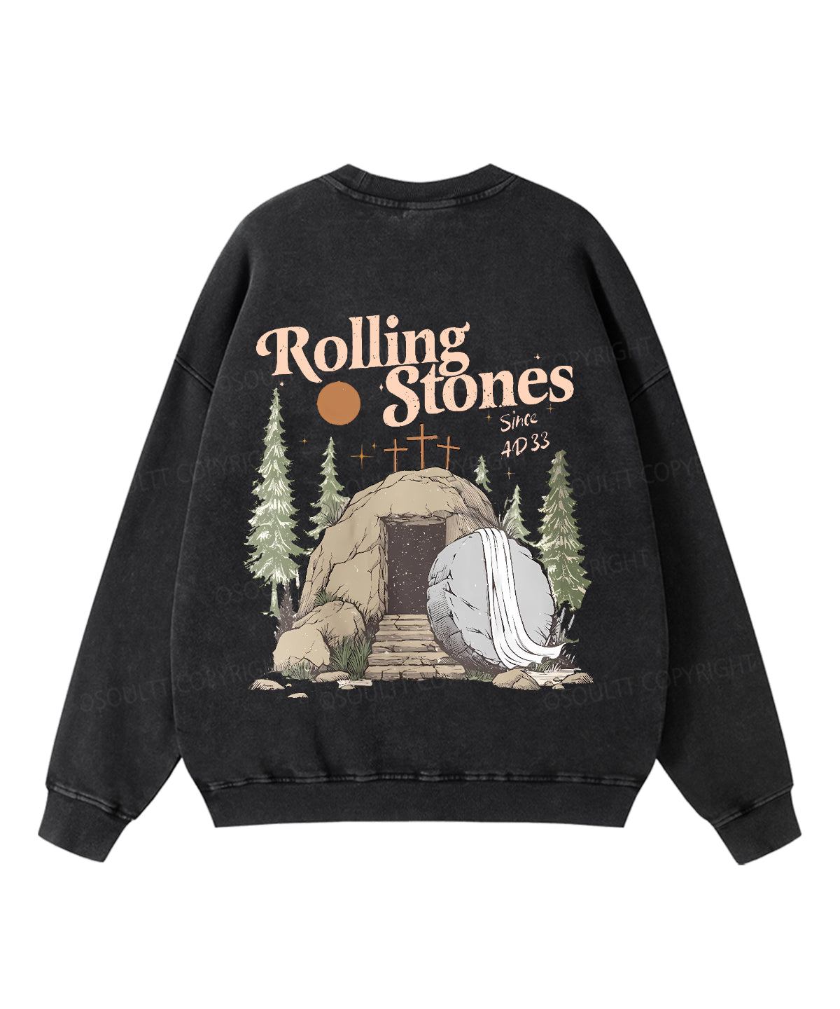 The Stone was Rolled Away He is Alive Double Sided Unisex Washed Christian Sweatshirt