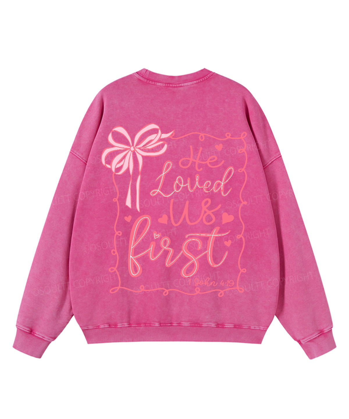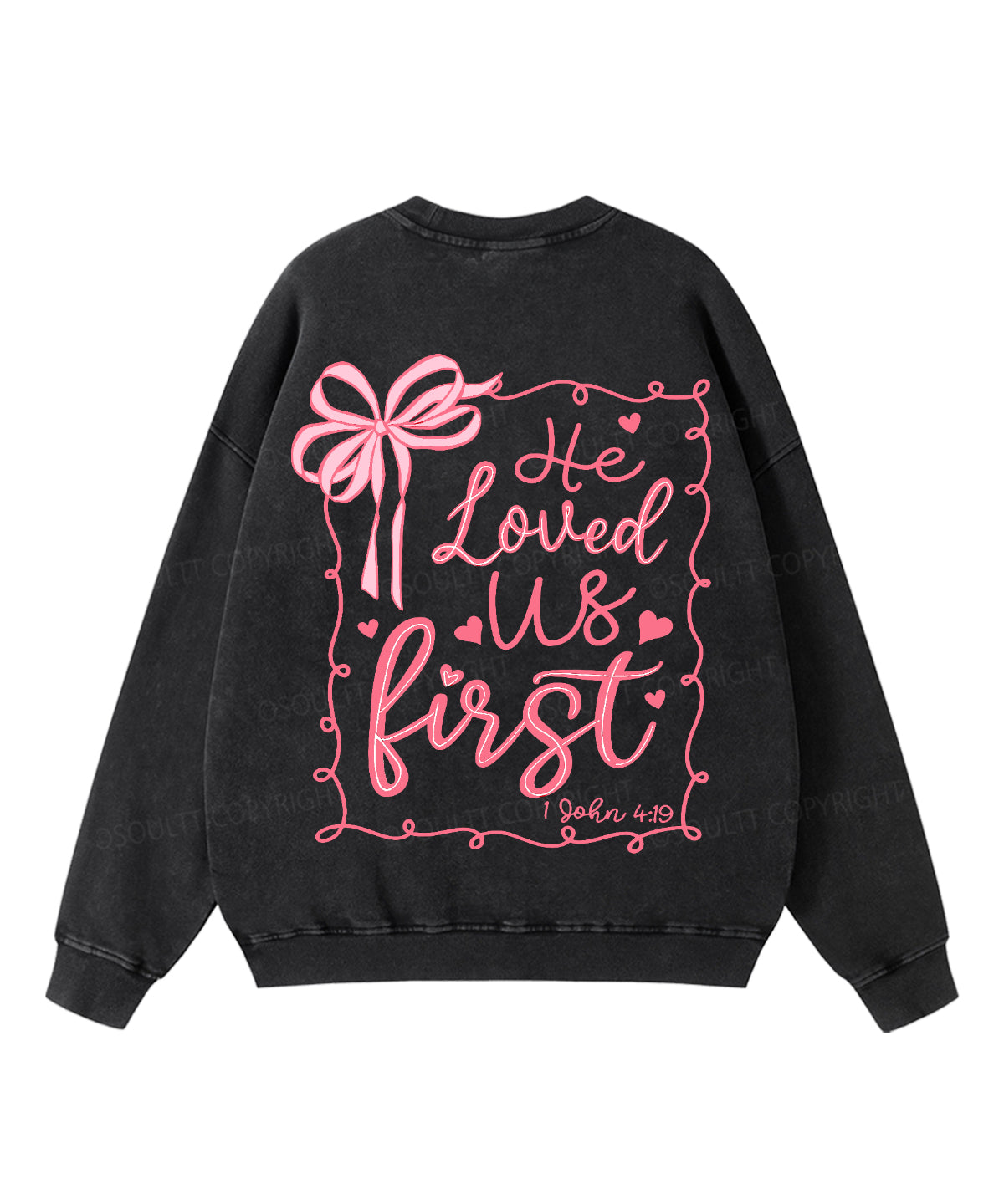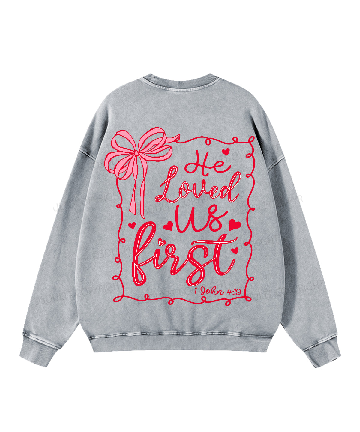 He Loved Us First Double Sided Unisex Washed Christian Sweatshirt