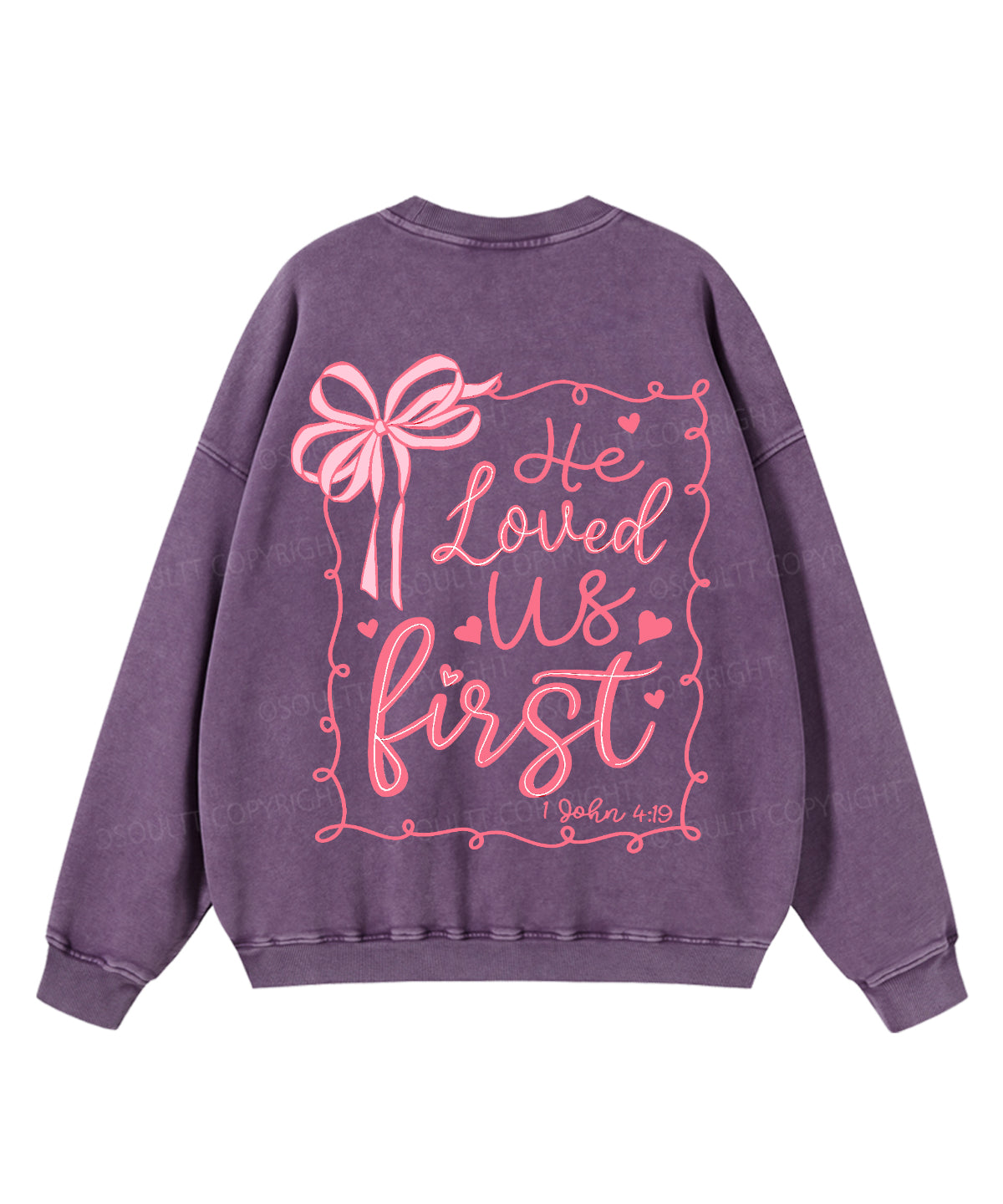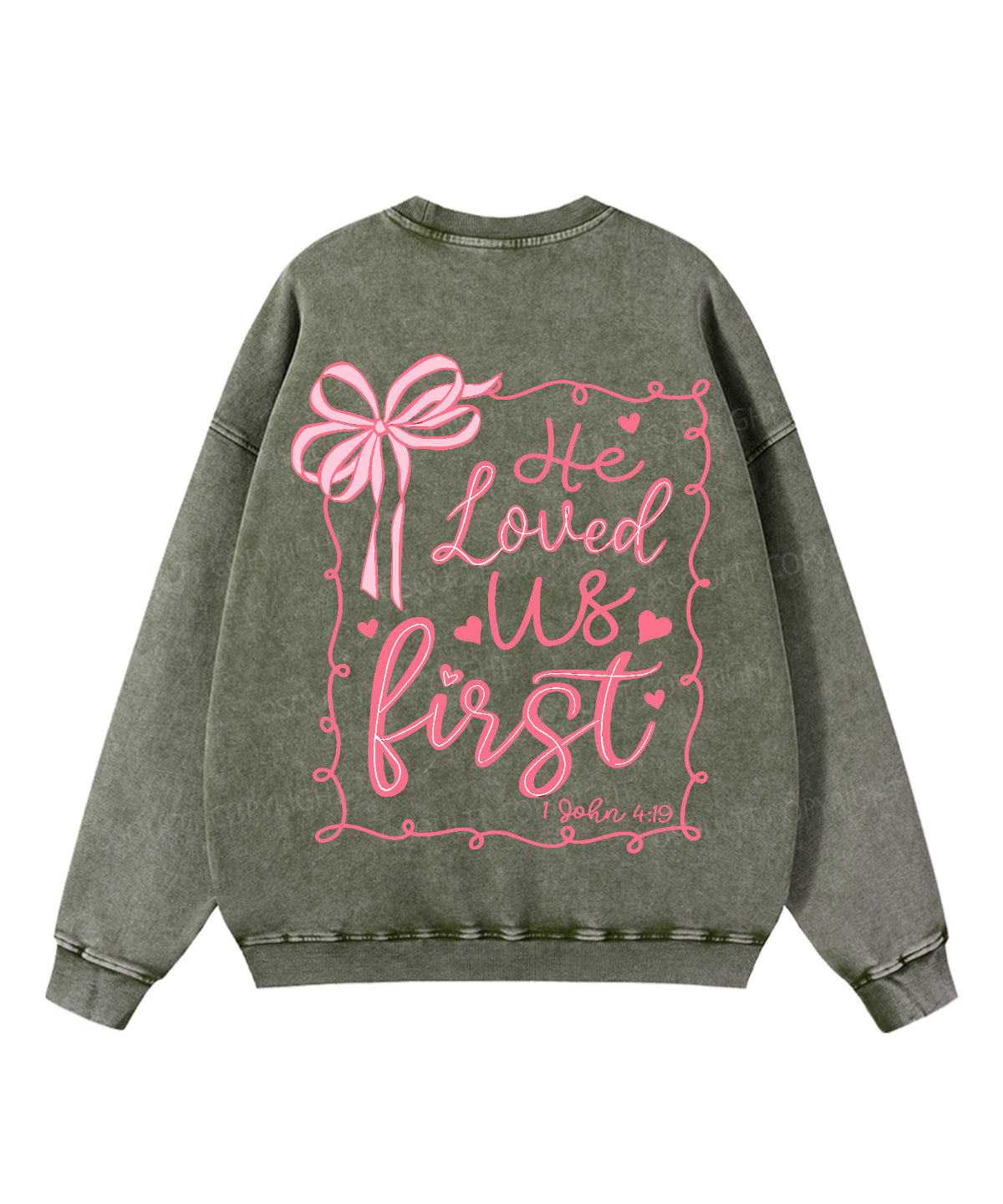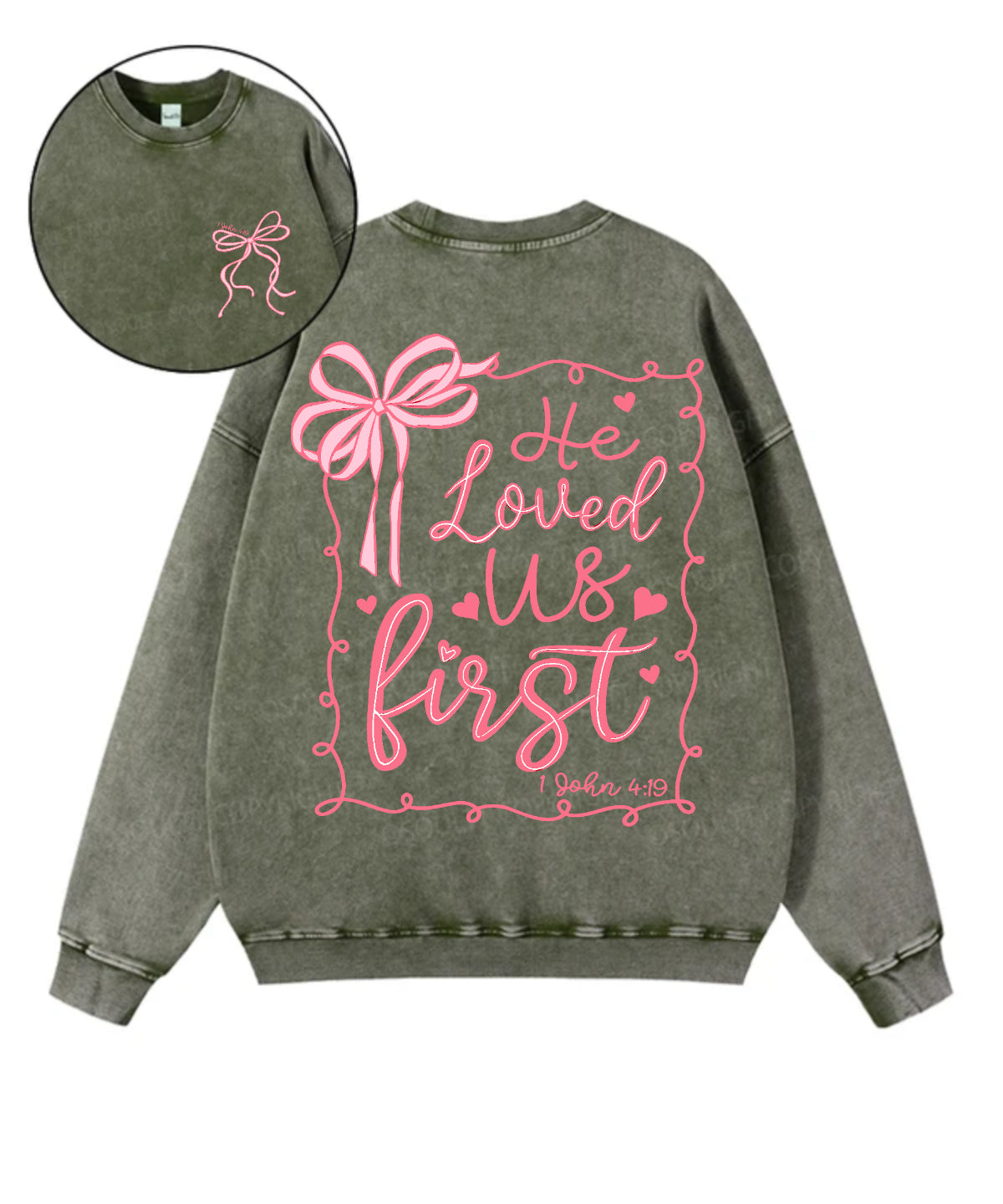 He Loved Us First Double Sided Unisex Washed Christian Sweatshirt