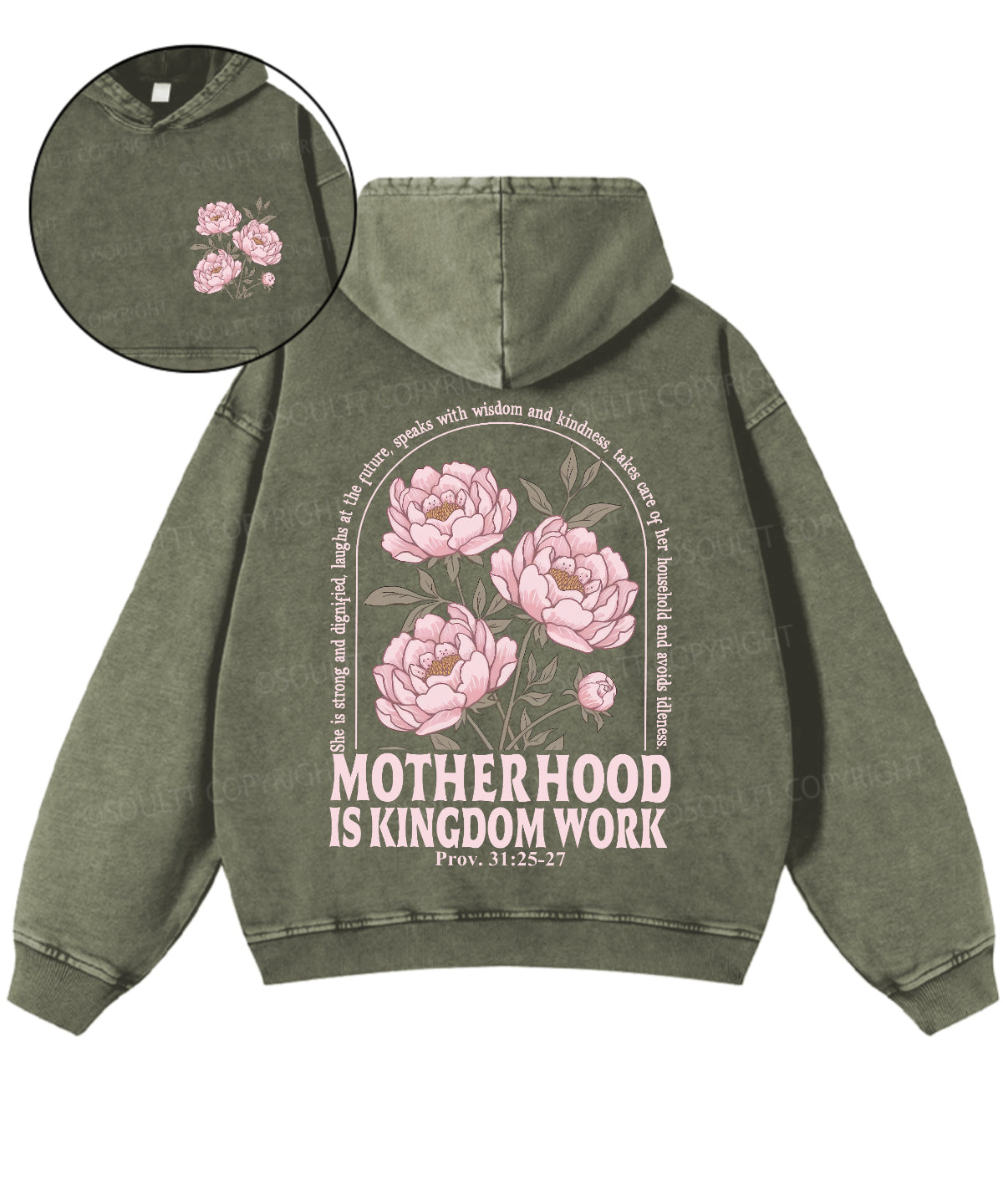 Motherhood Is Kingdom Work Double Sided Washed Christian Hoodie