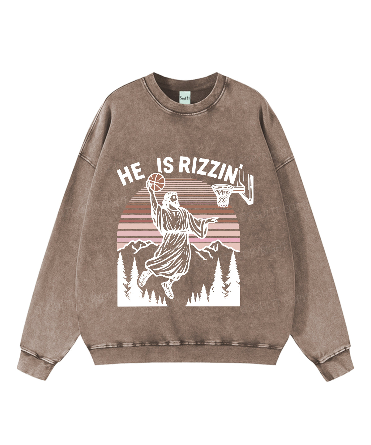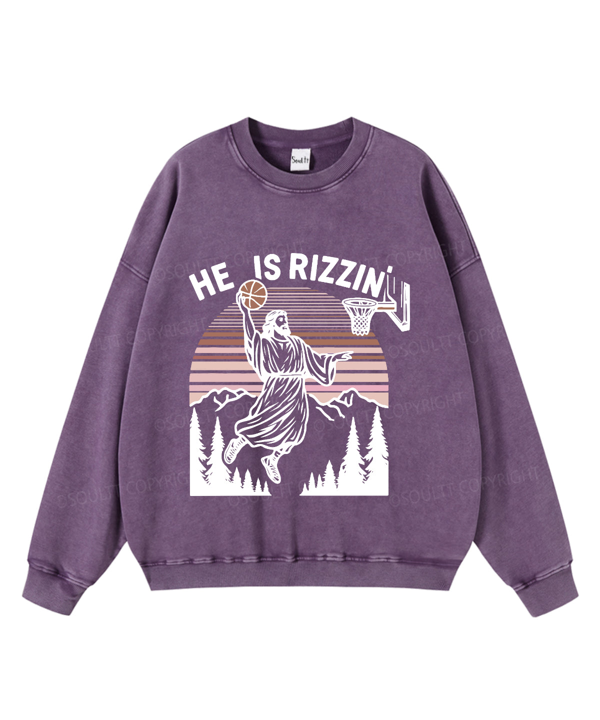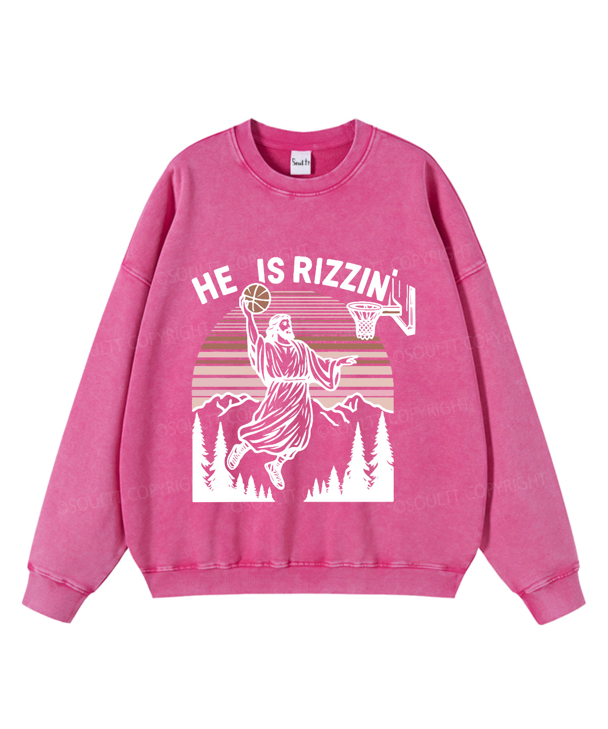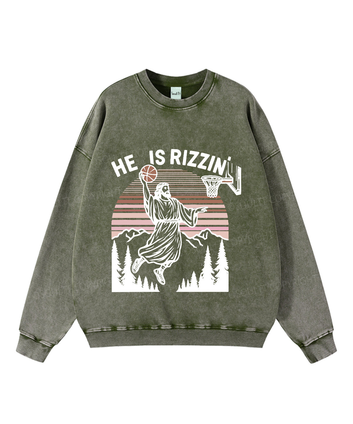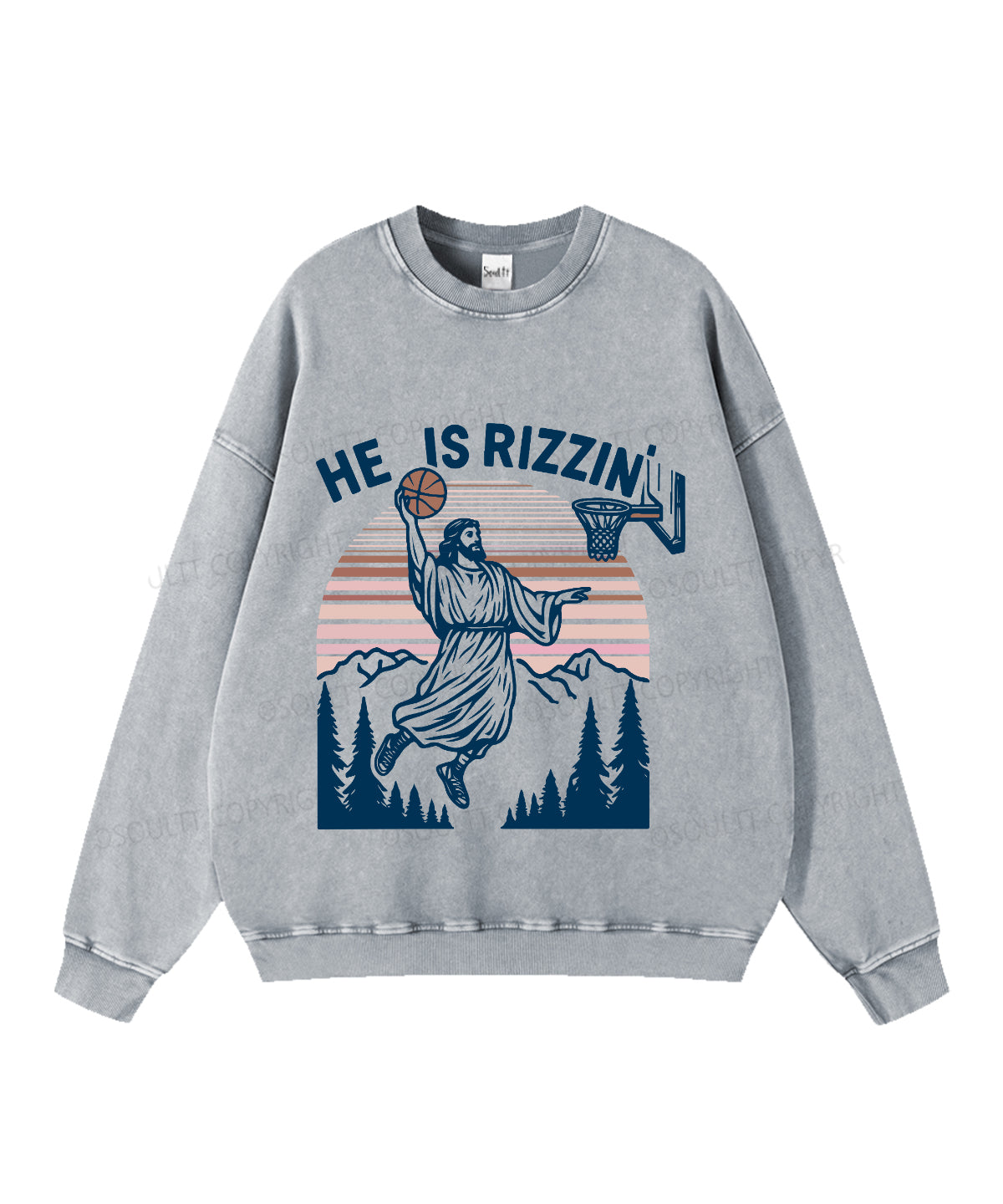 He Is Rizzin' Washed Christian Sweatshirt