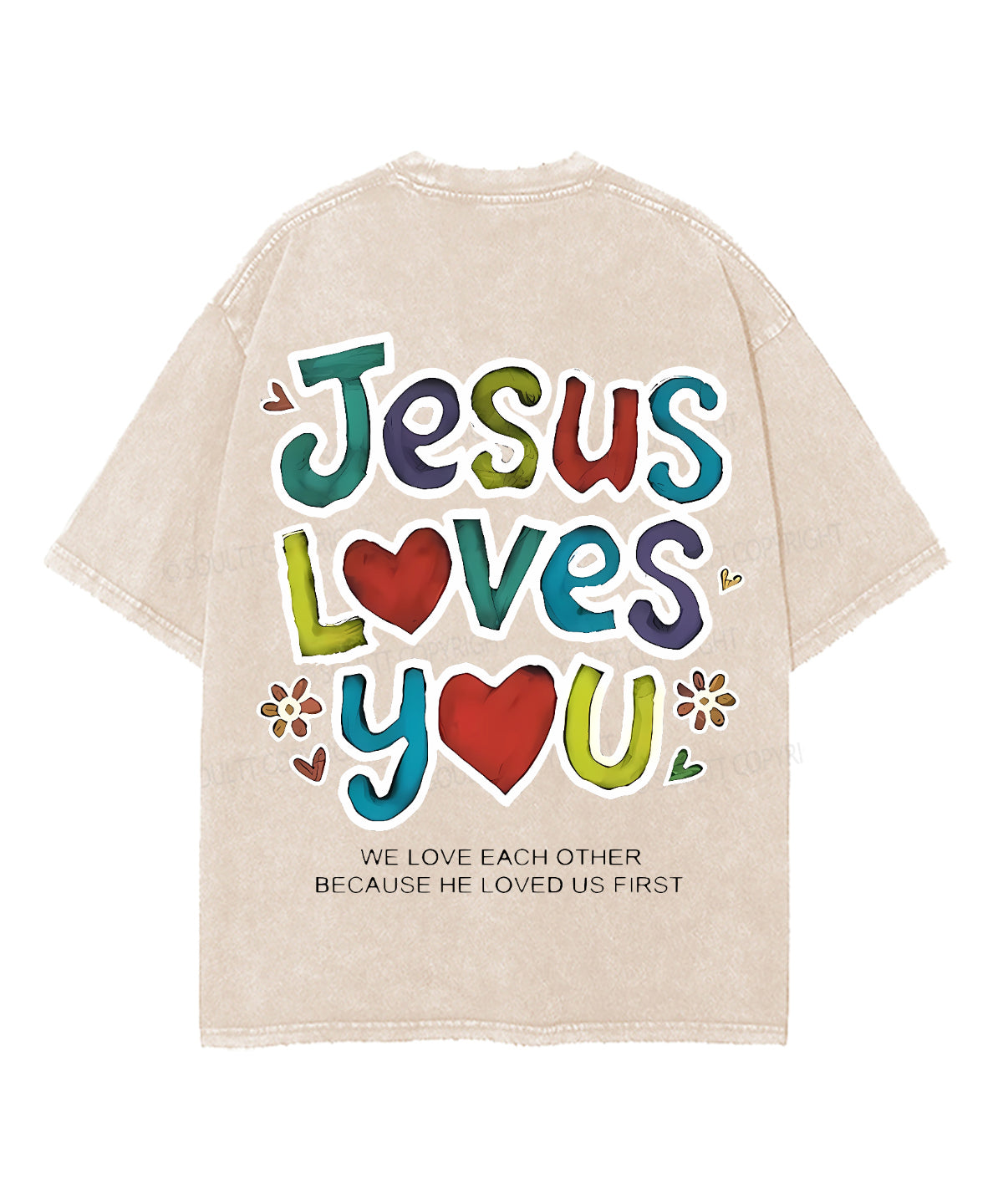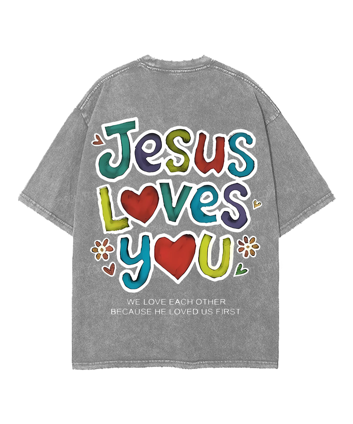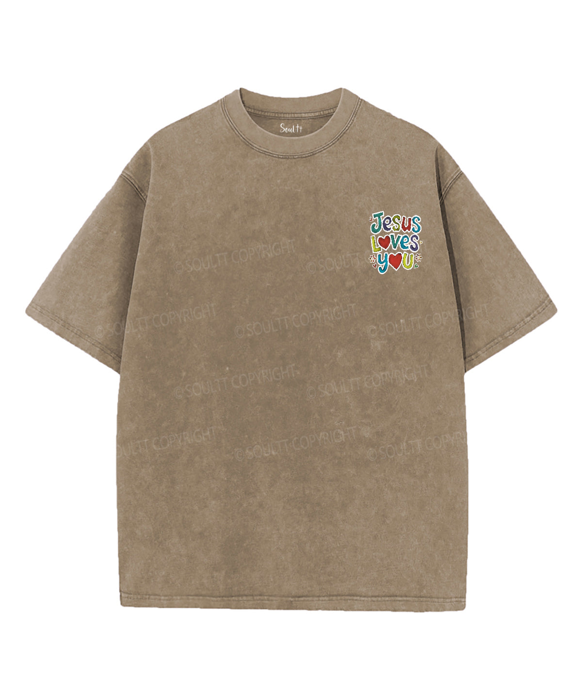 Jesus Loves You Double Sided Unisex Washed Christian T-shirt